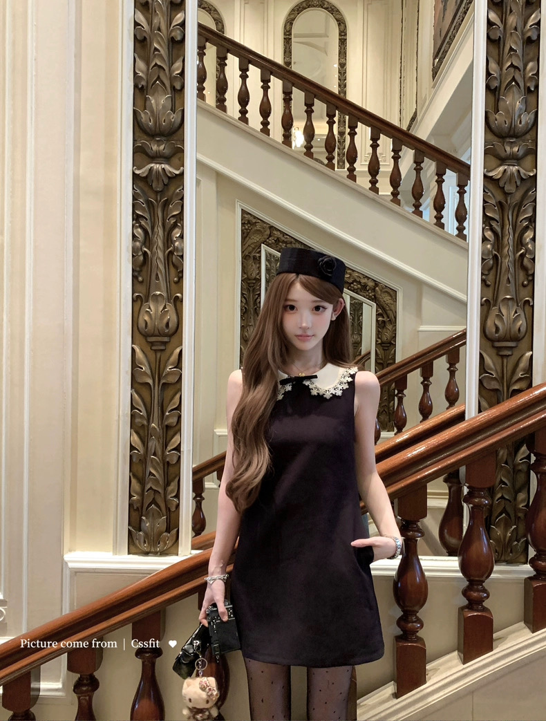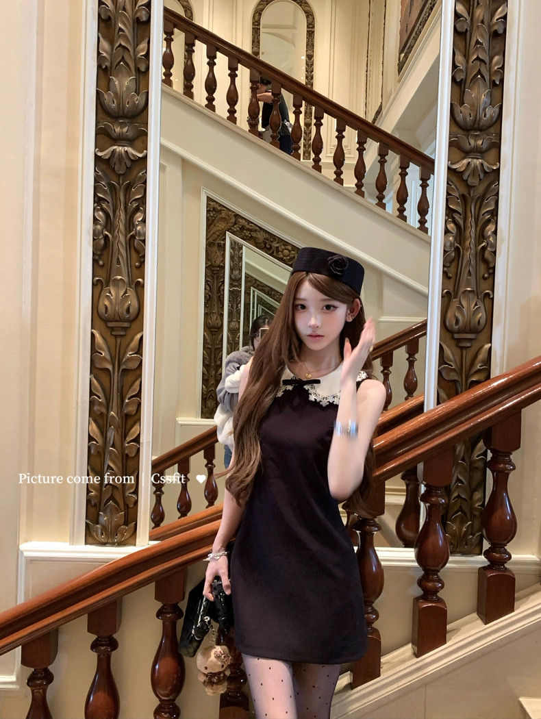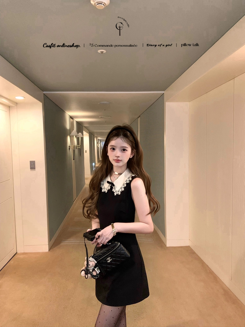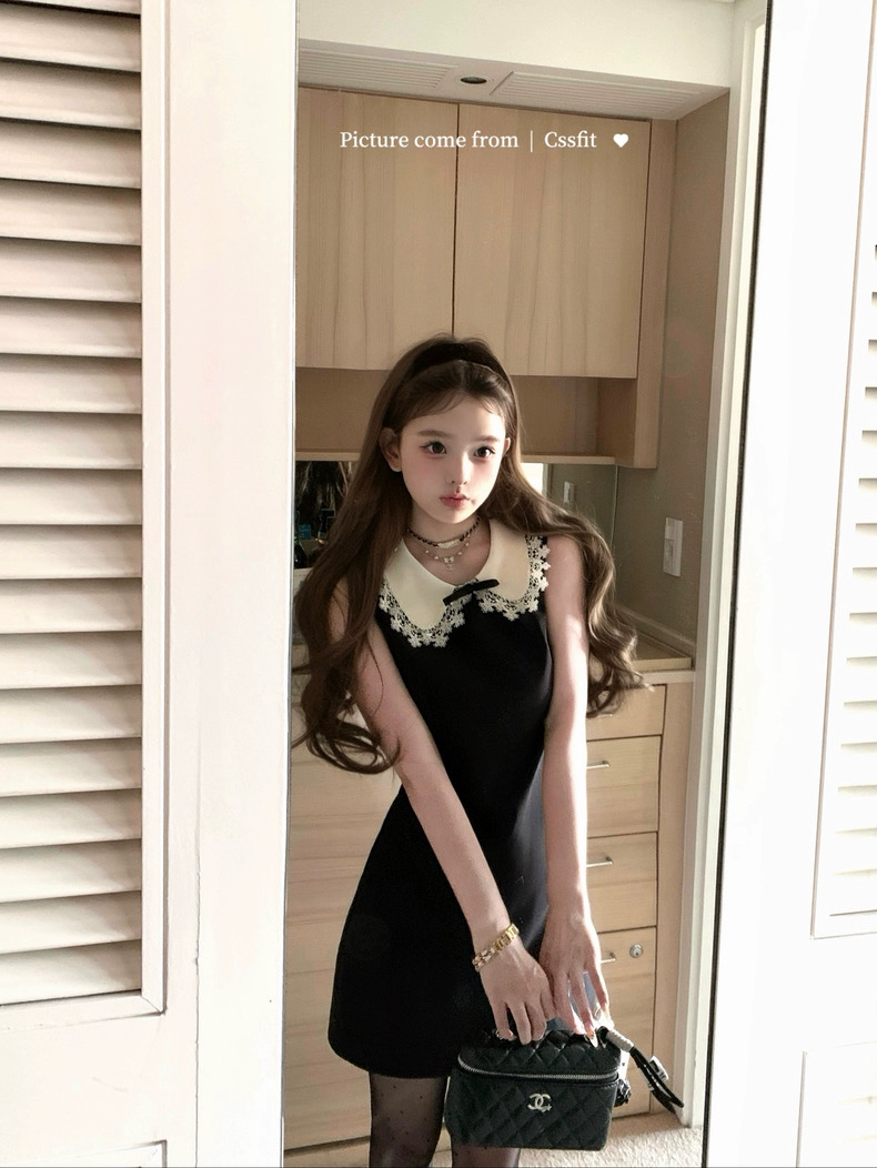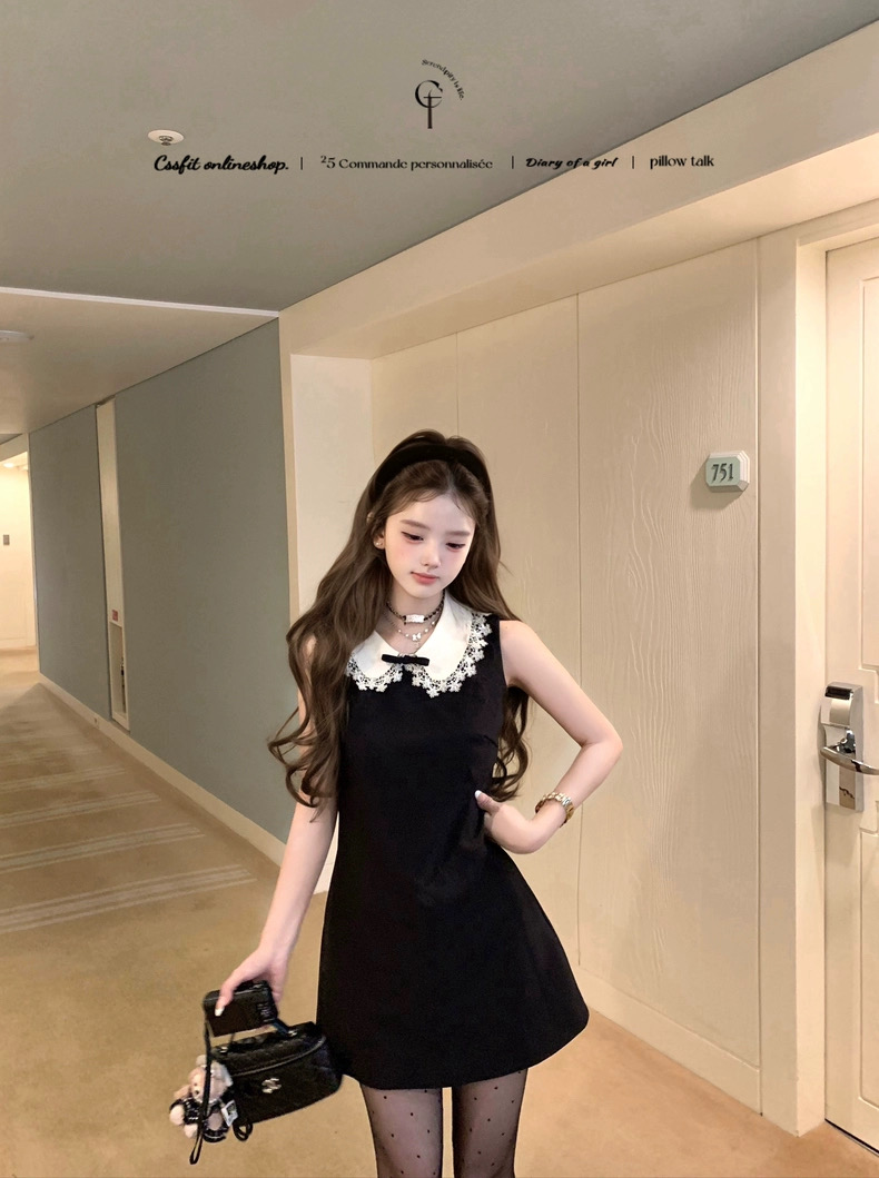 迟伞伞25/fw 爱德洛物语 节日氛围Jor*a蕾丝领无袖小黑裙气质短裙