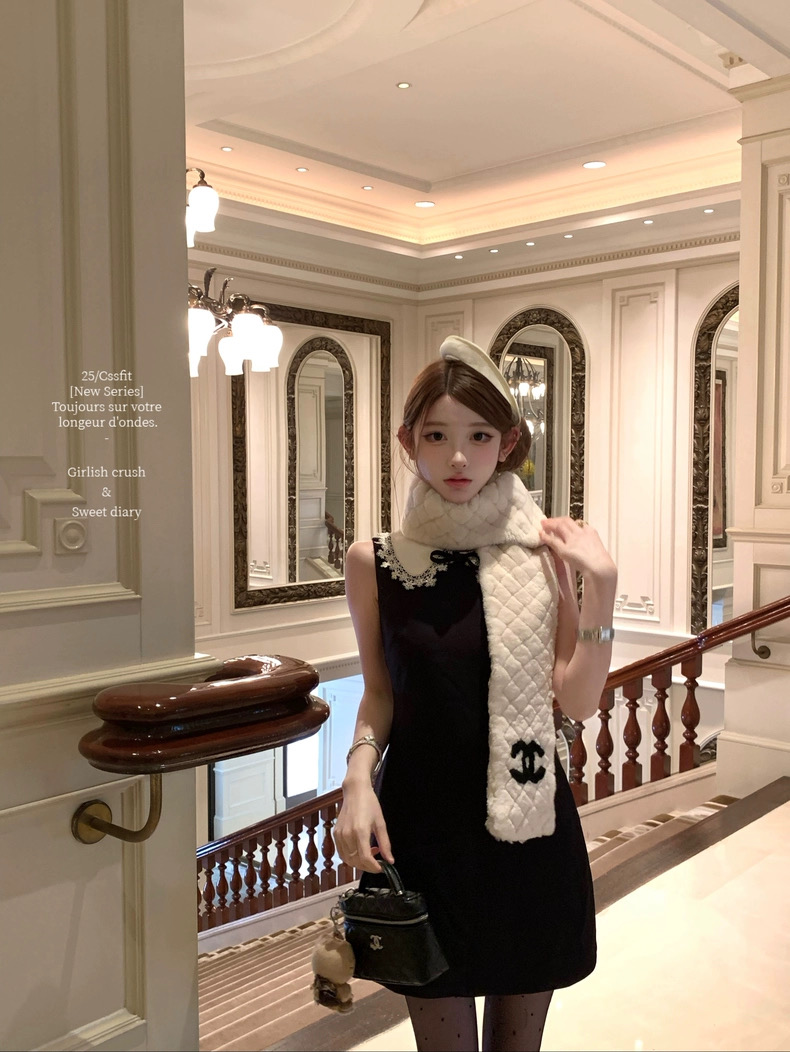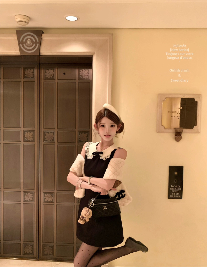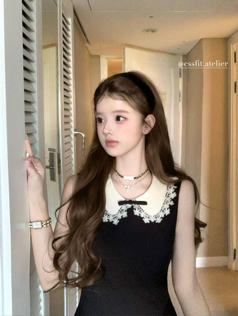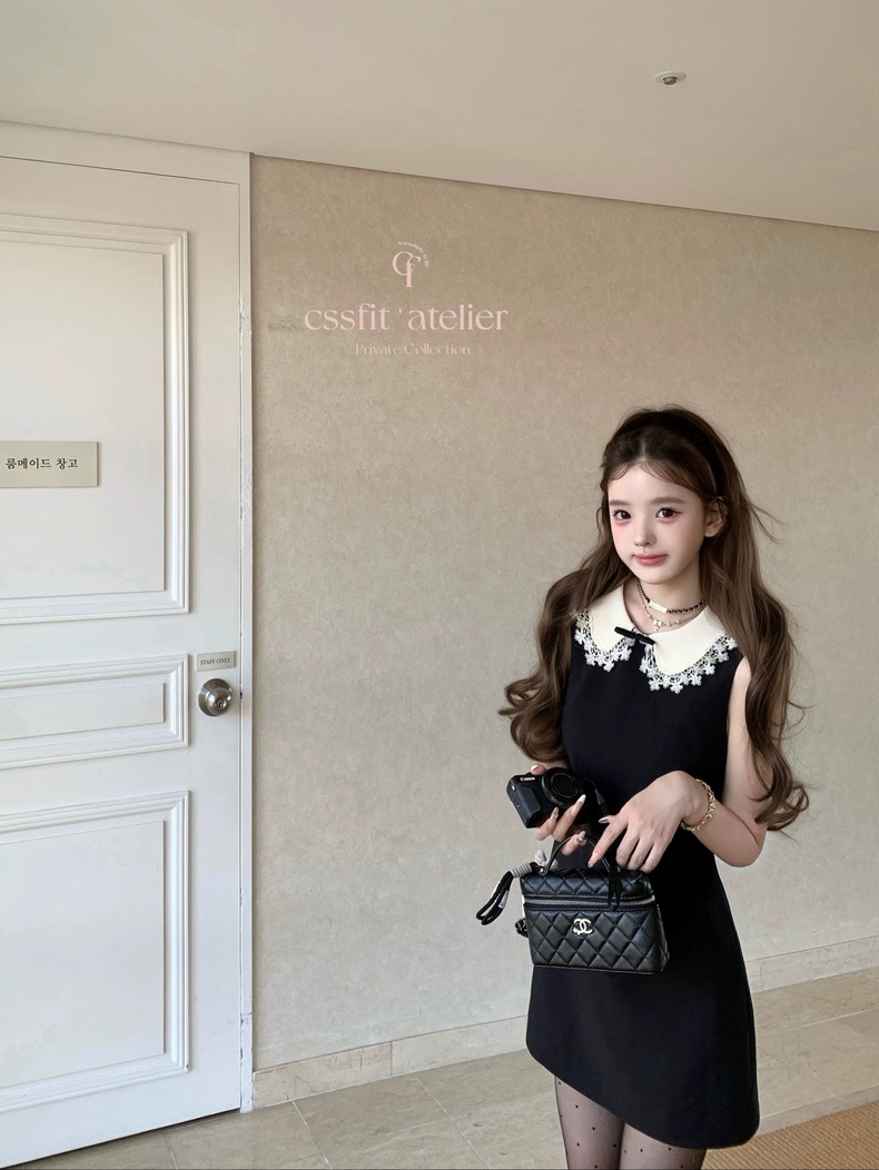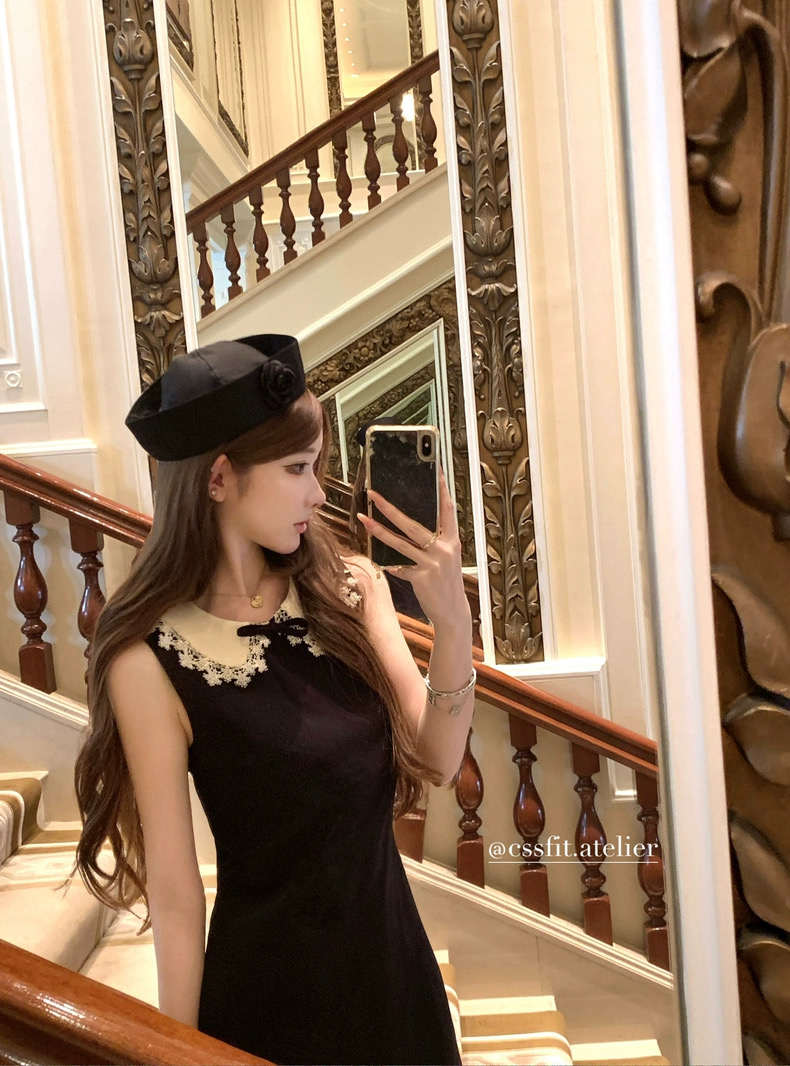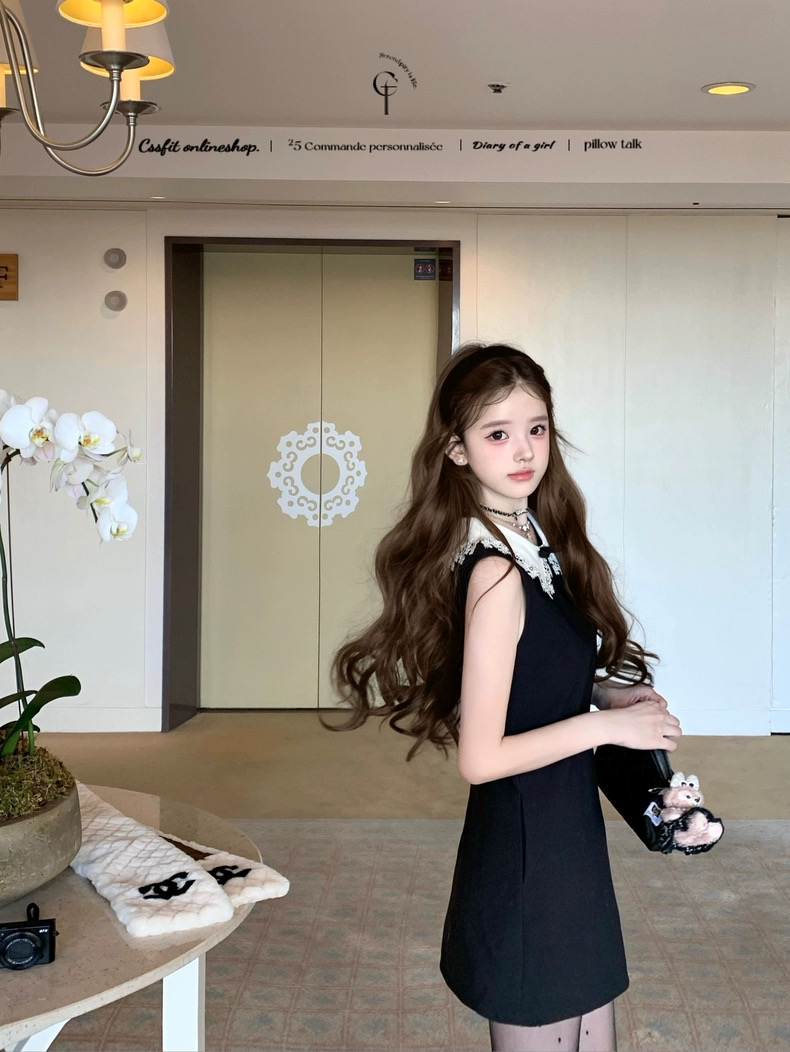 迟伞伞25/fw 爱德洛物语 节日氛围Jor*a蕾丝领无袖小黑裙气质短裙