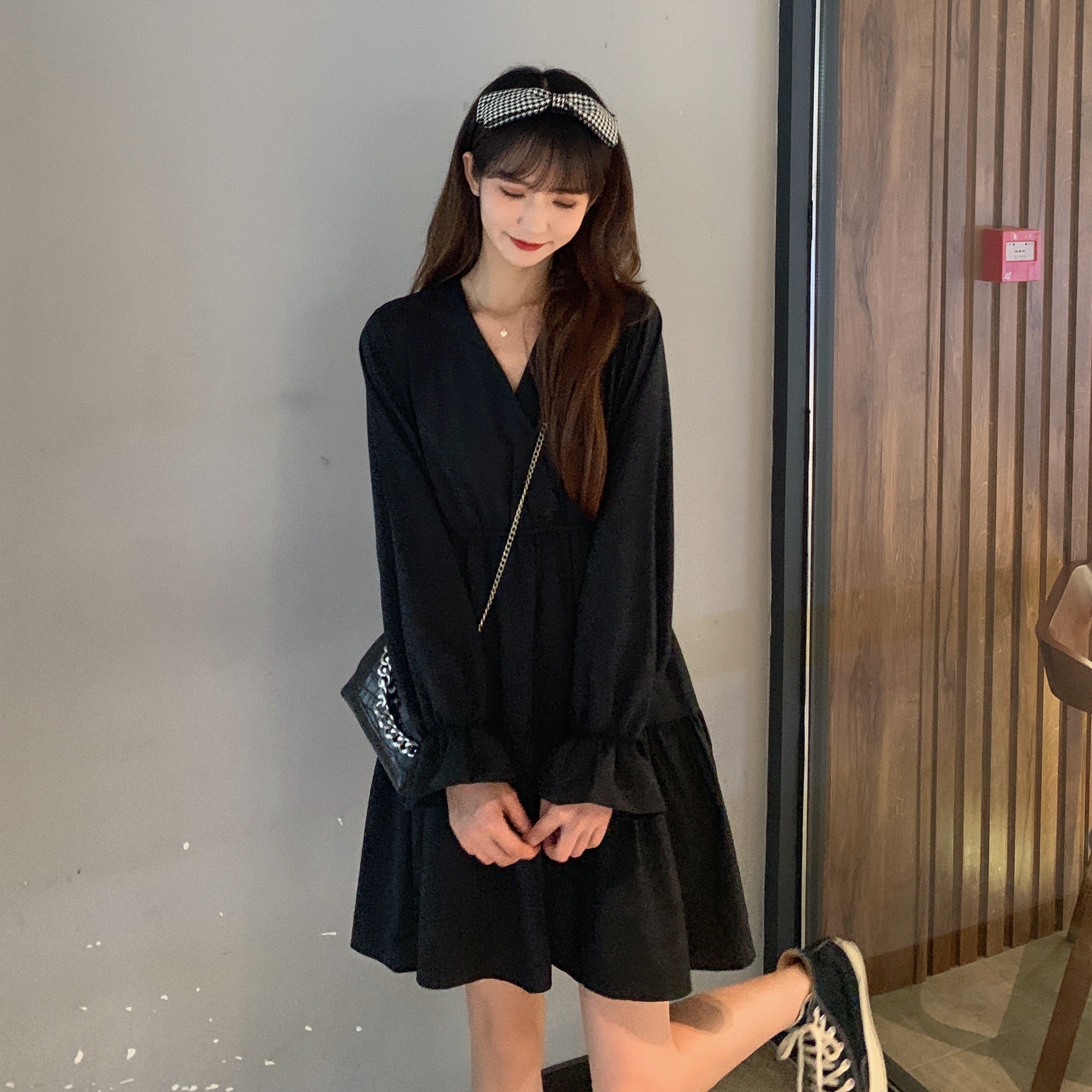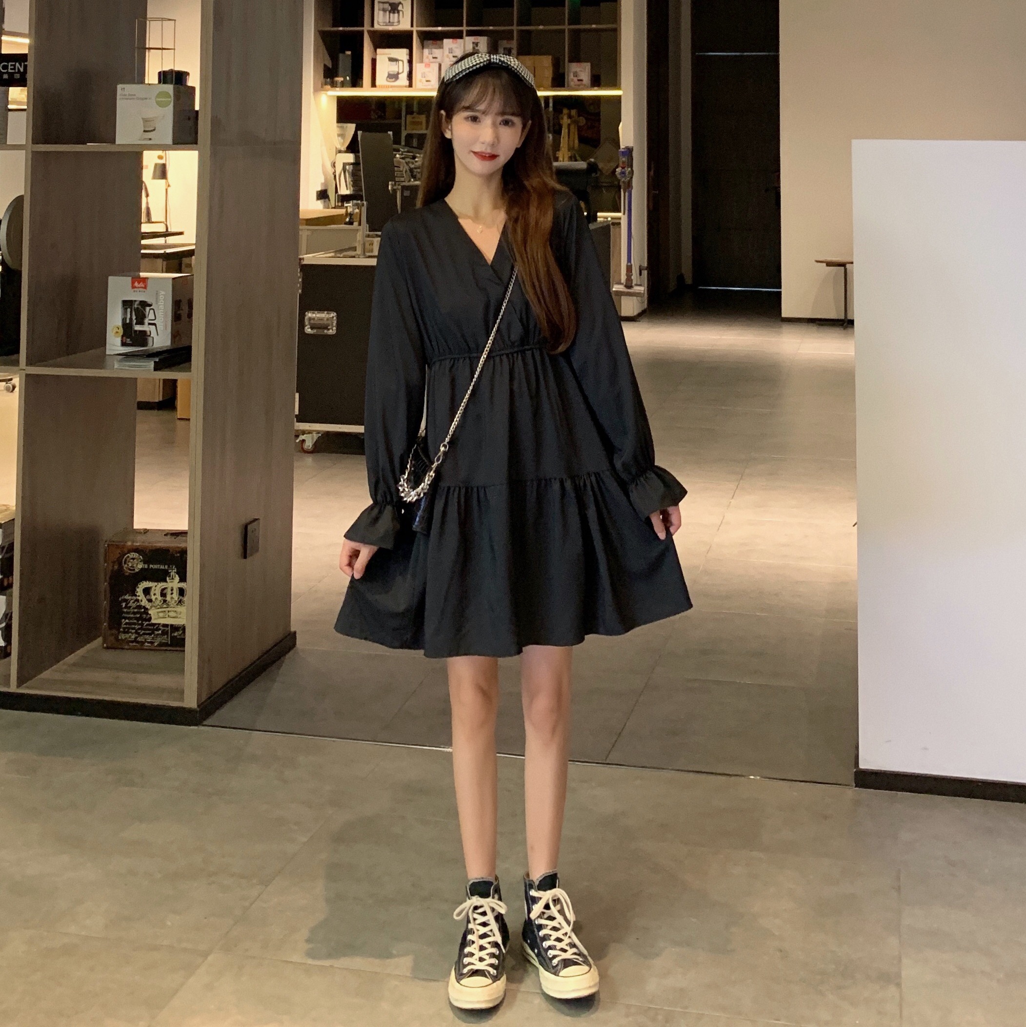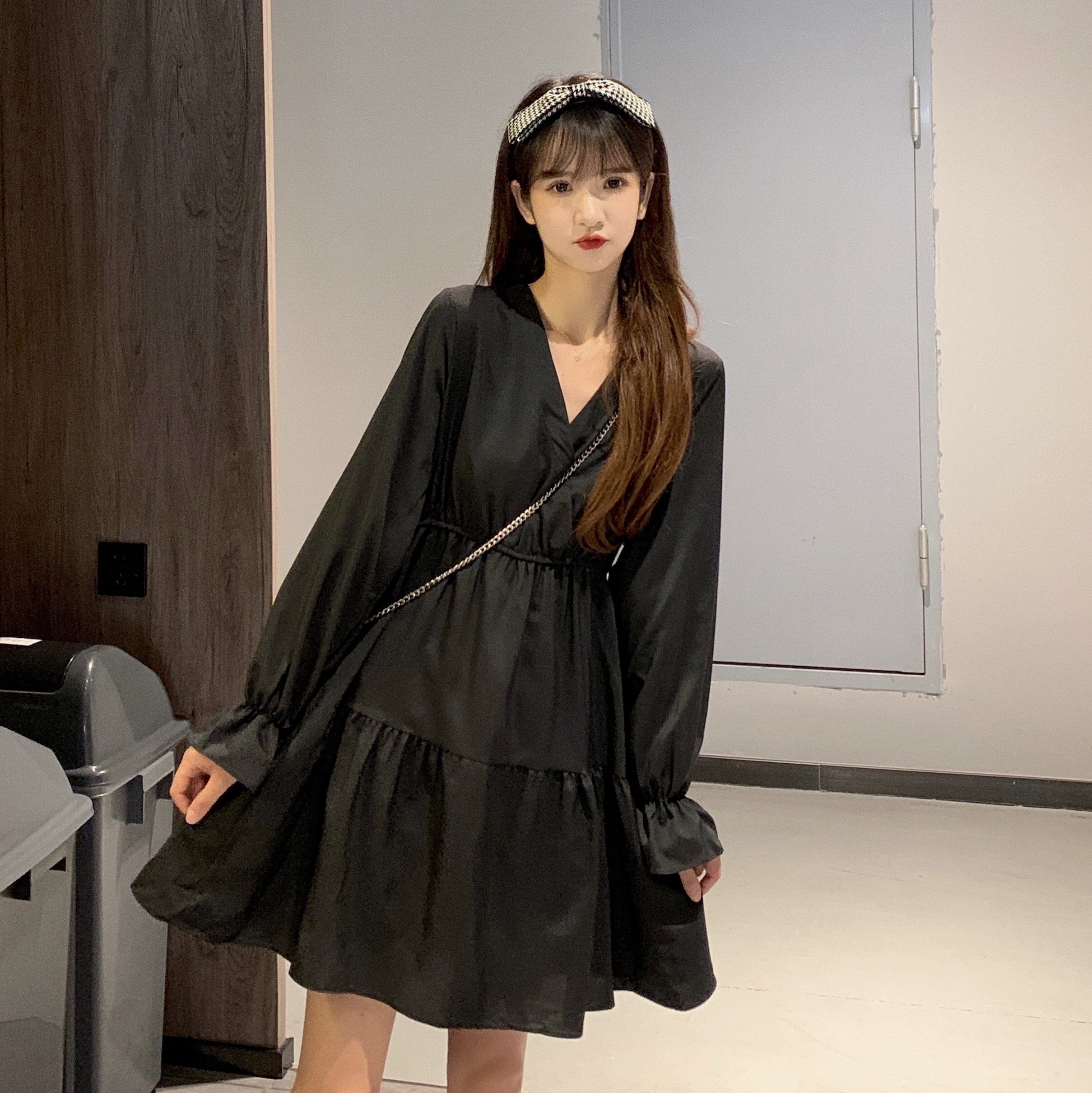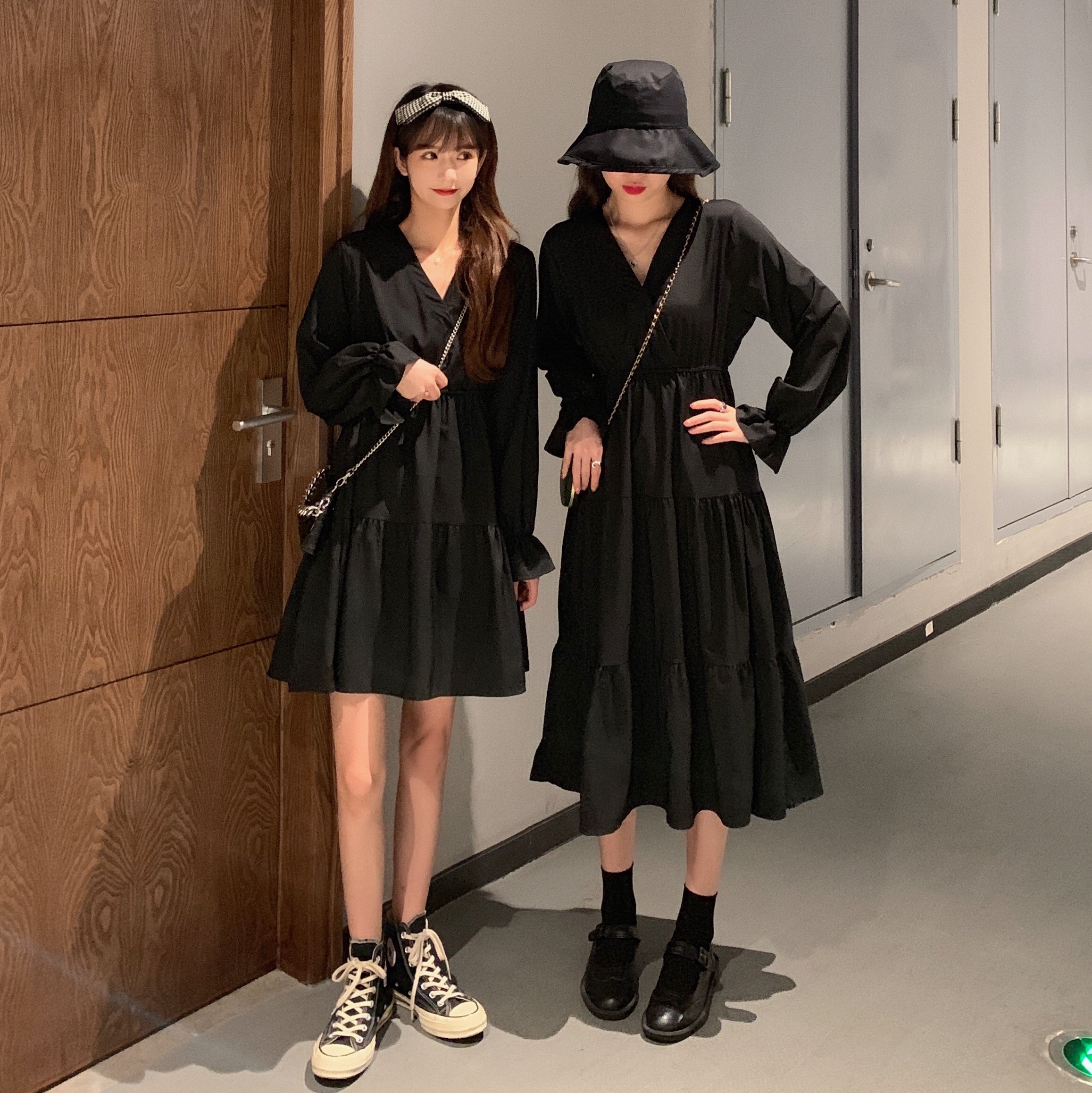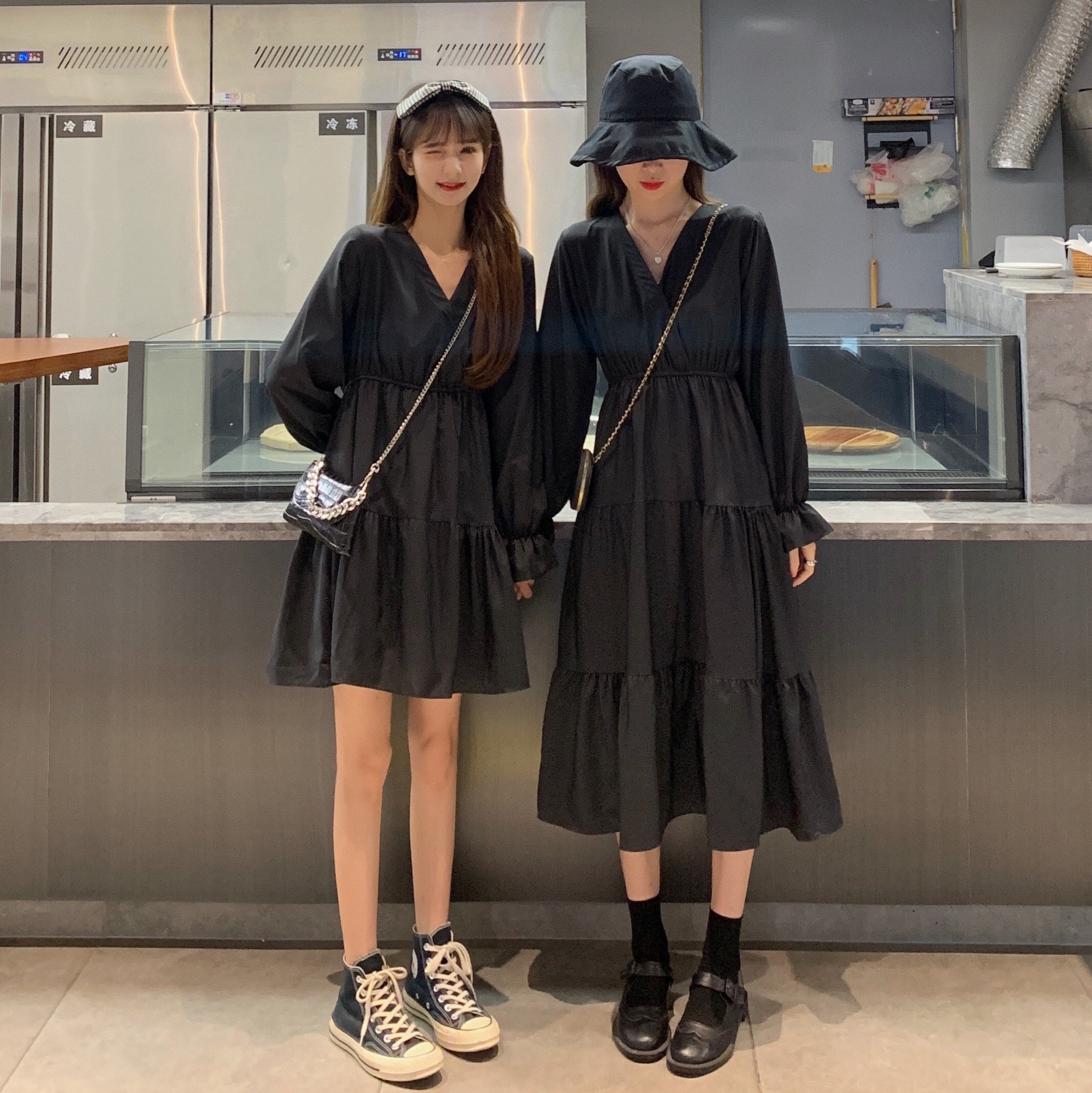 实拍早秋新款大码女装学院风显瘦遮肚减龄连衣裙闺蜜裙M-4XL200斤