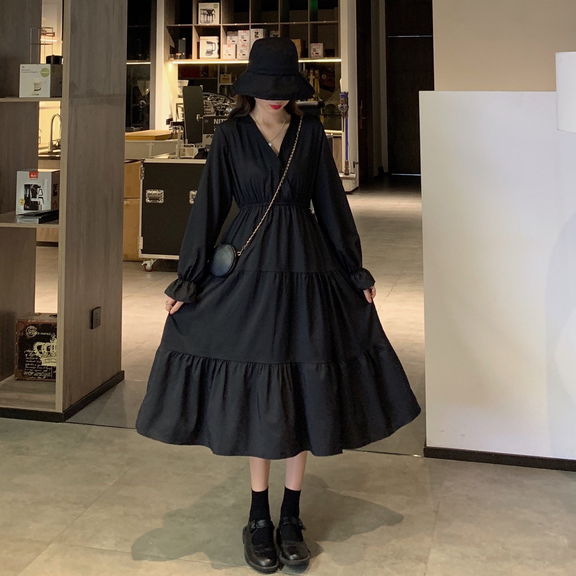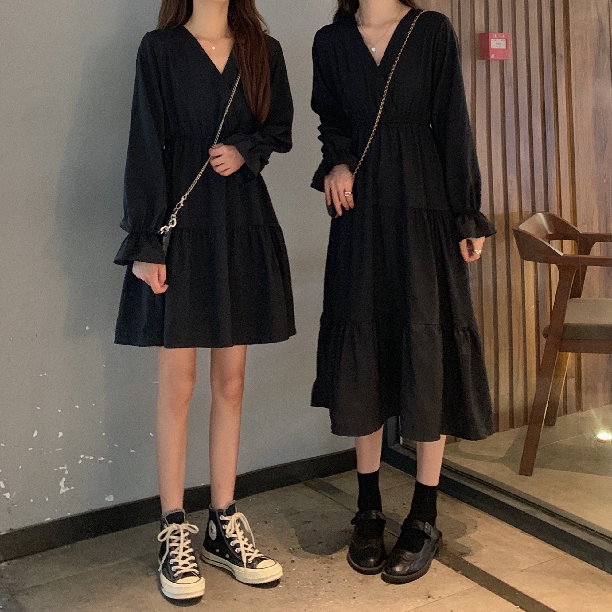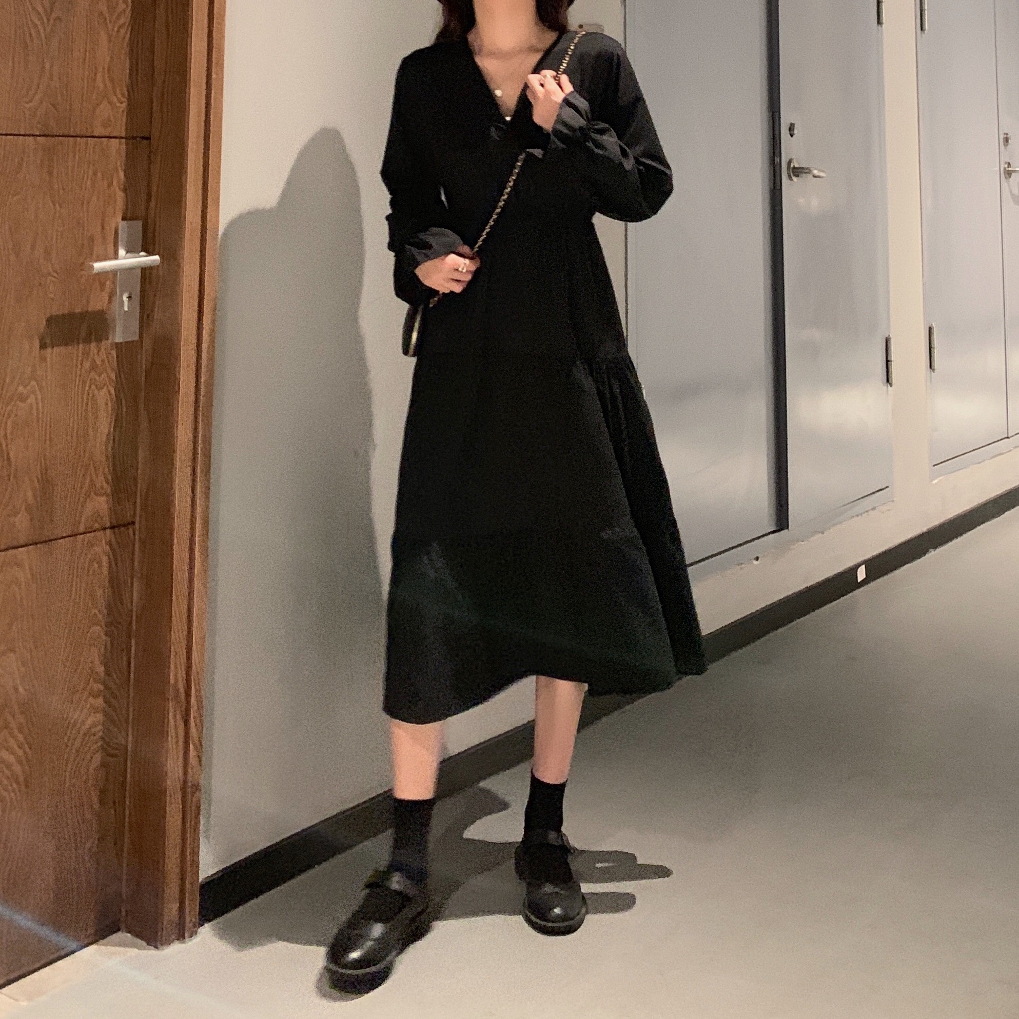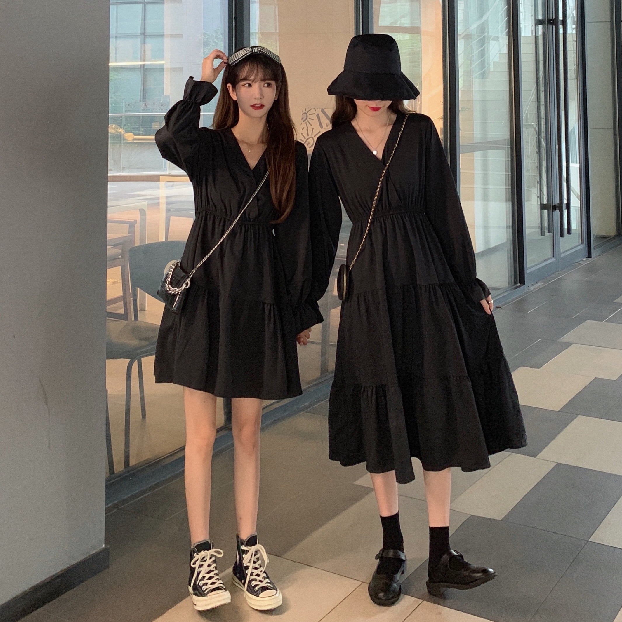 实拍早秋新款大码女装学院风显瘦遮肚减龄连衣裙闺蜜裙M-4XL200斤
