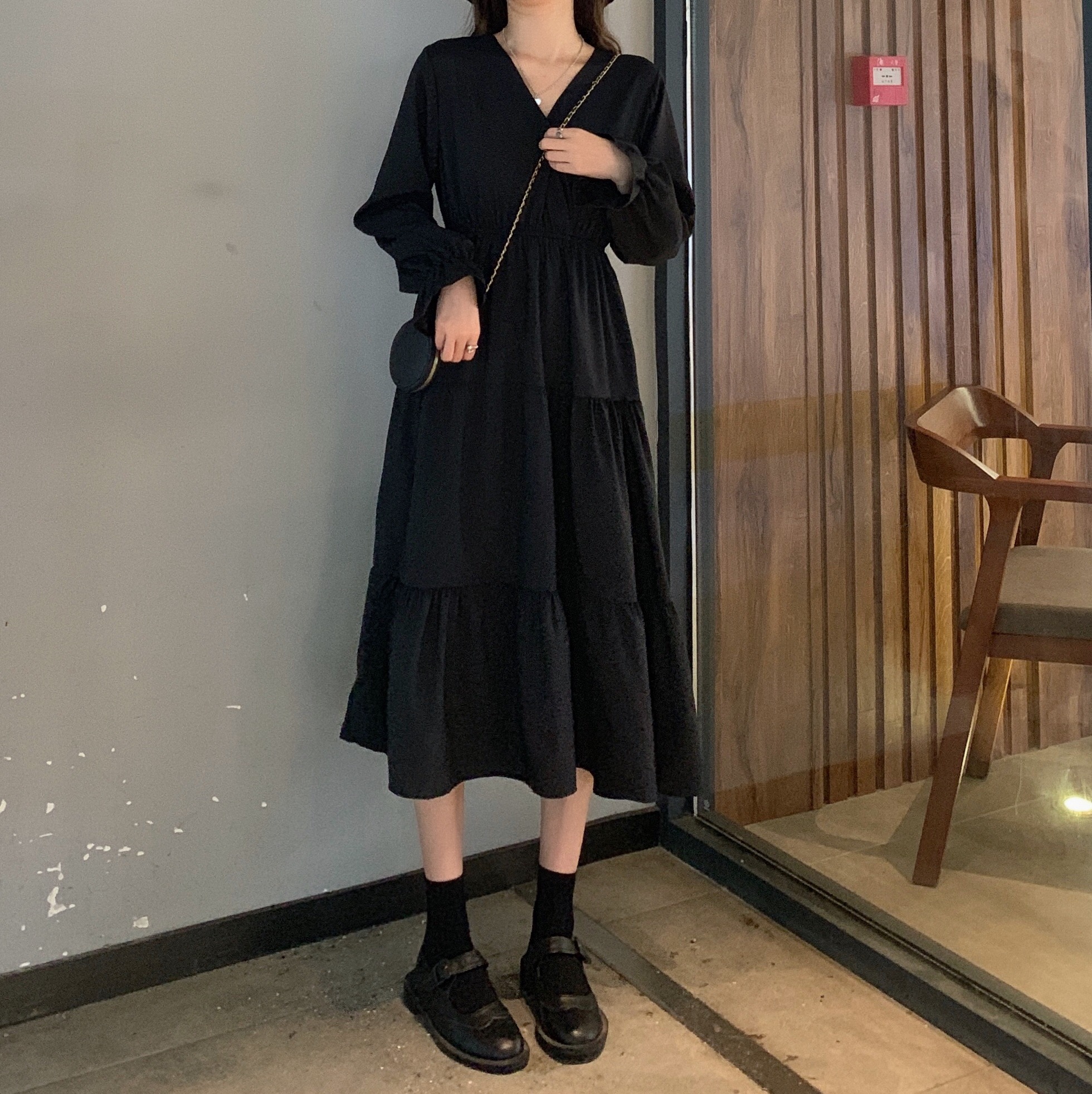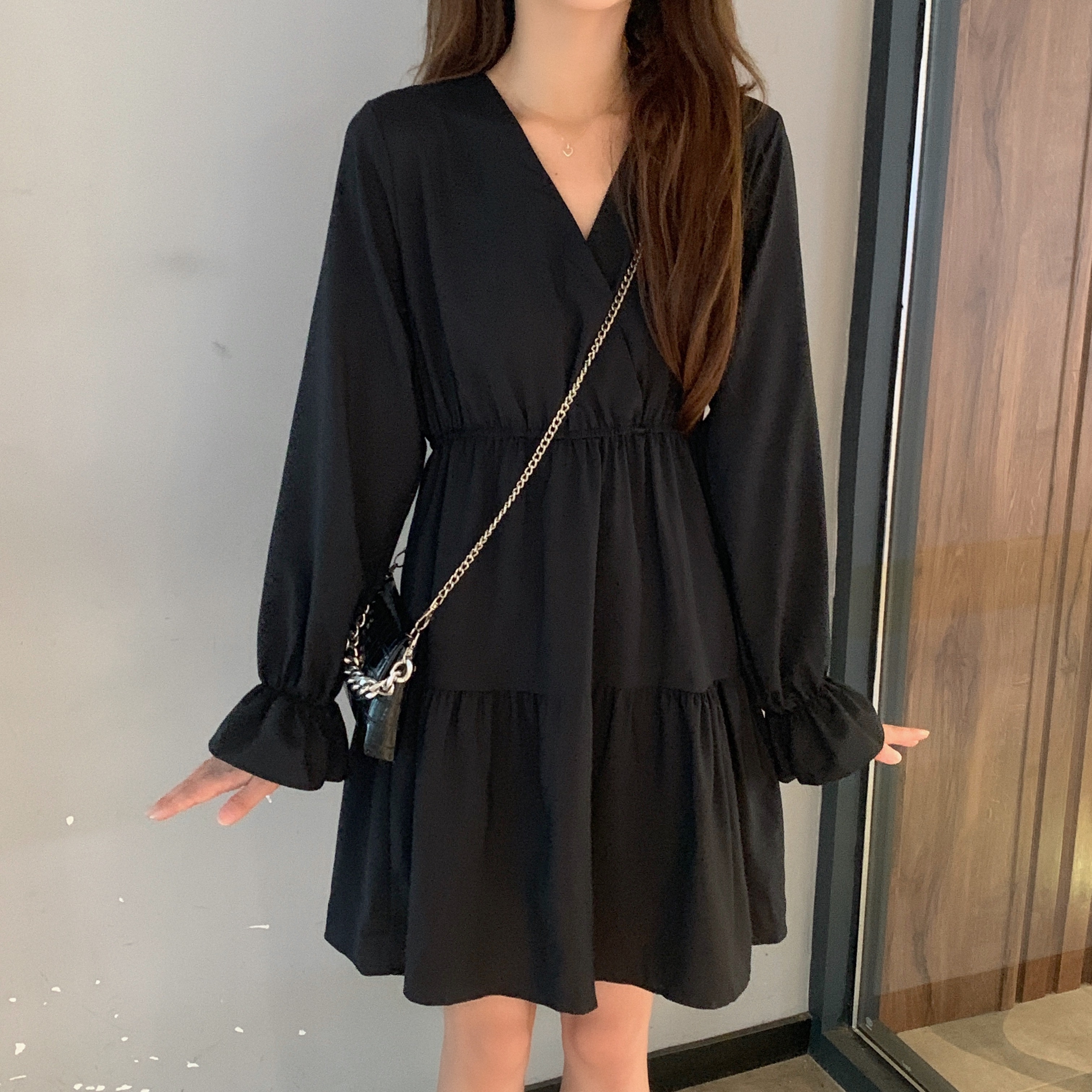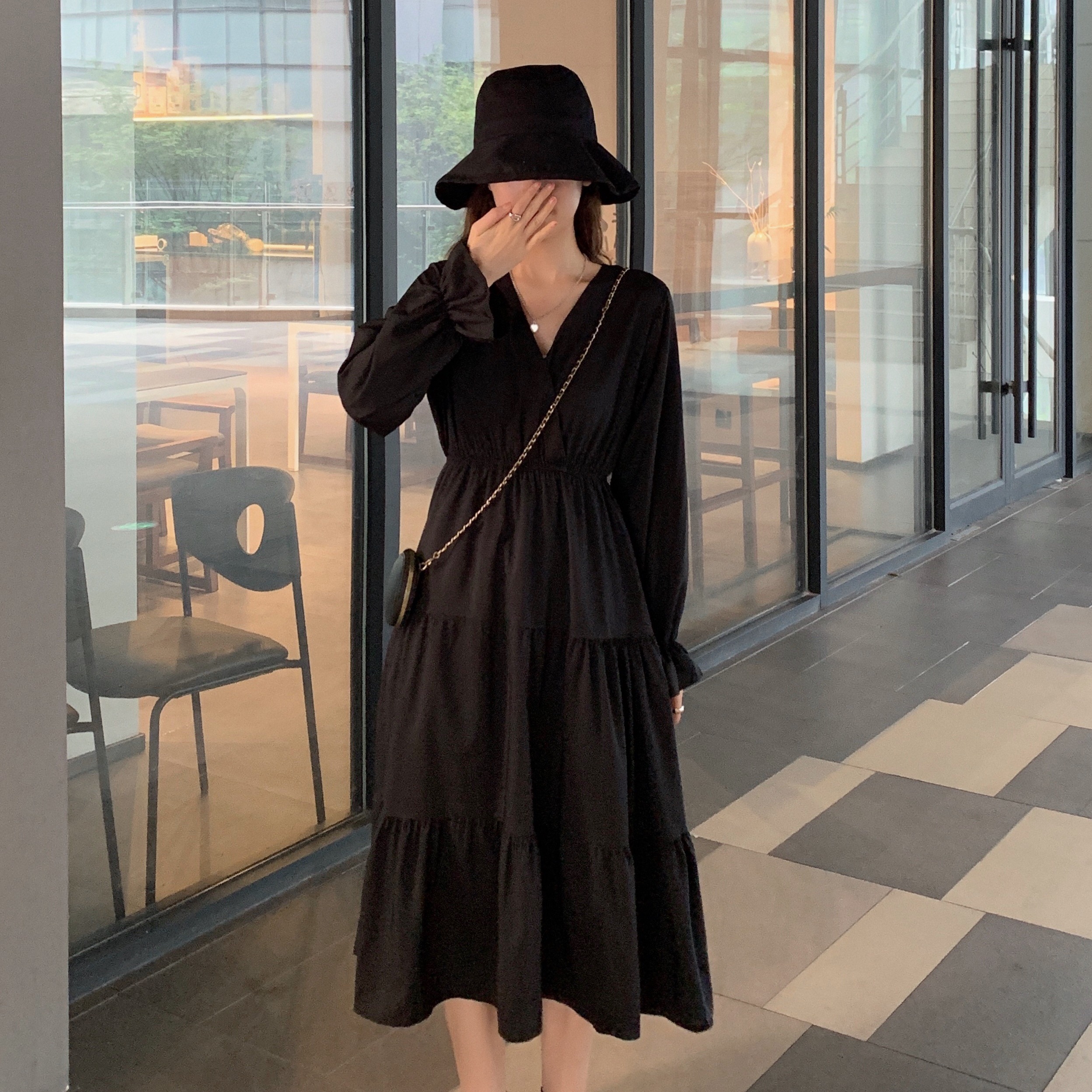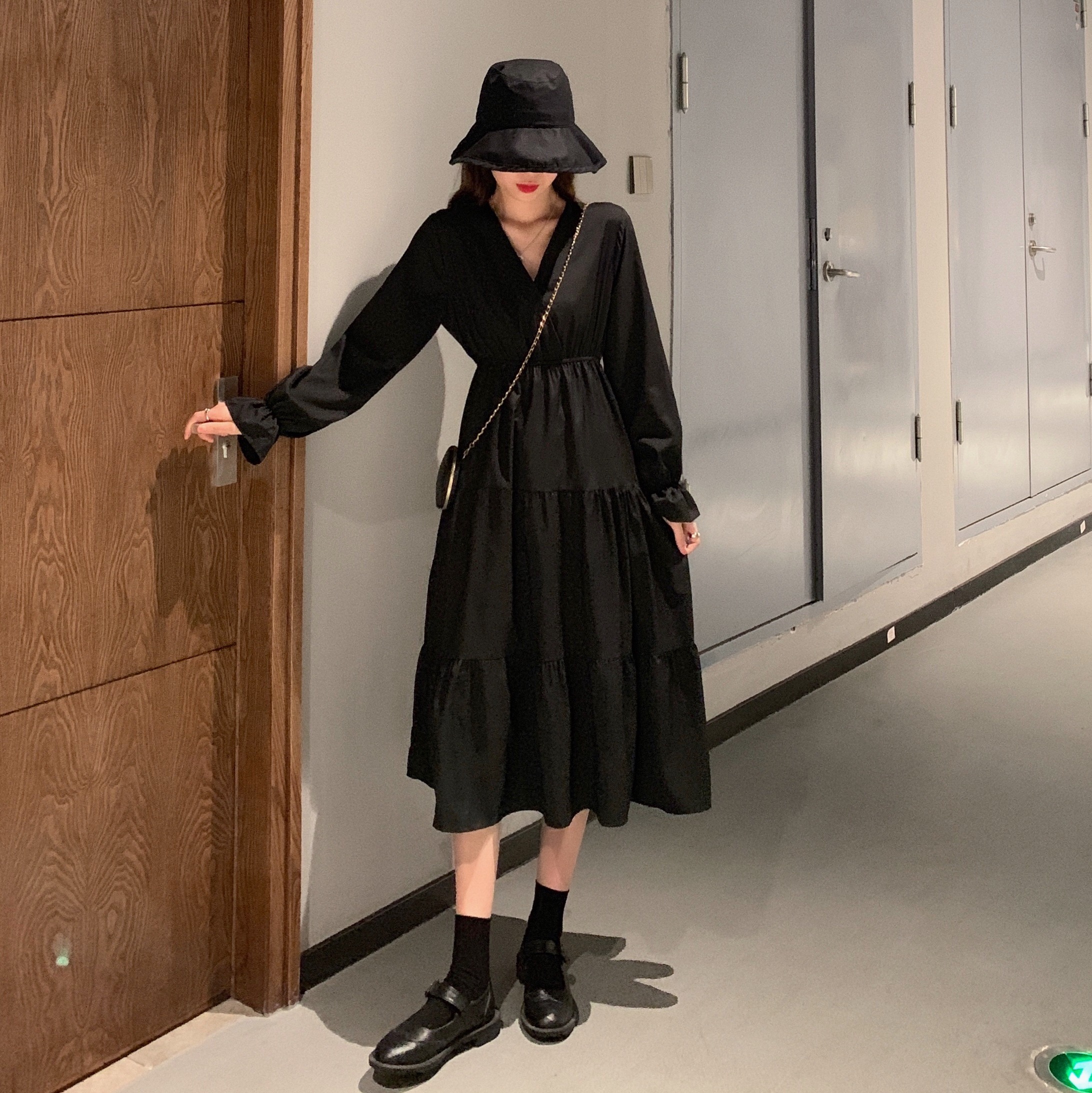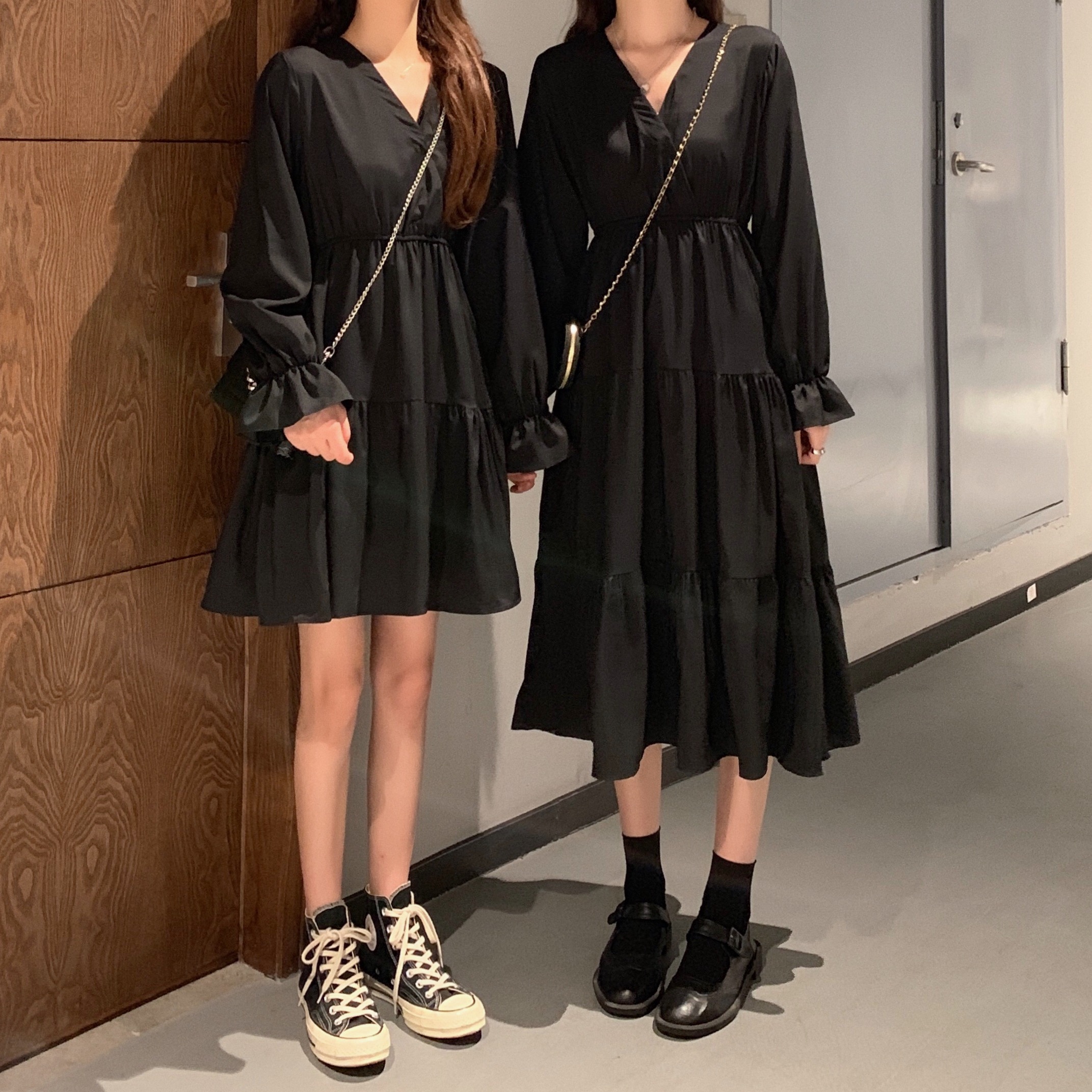 实拍早秋新款大码女装学院风显瘦遮肚减龄连衣裙闺蜜裙M-4XL200斤