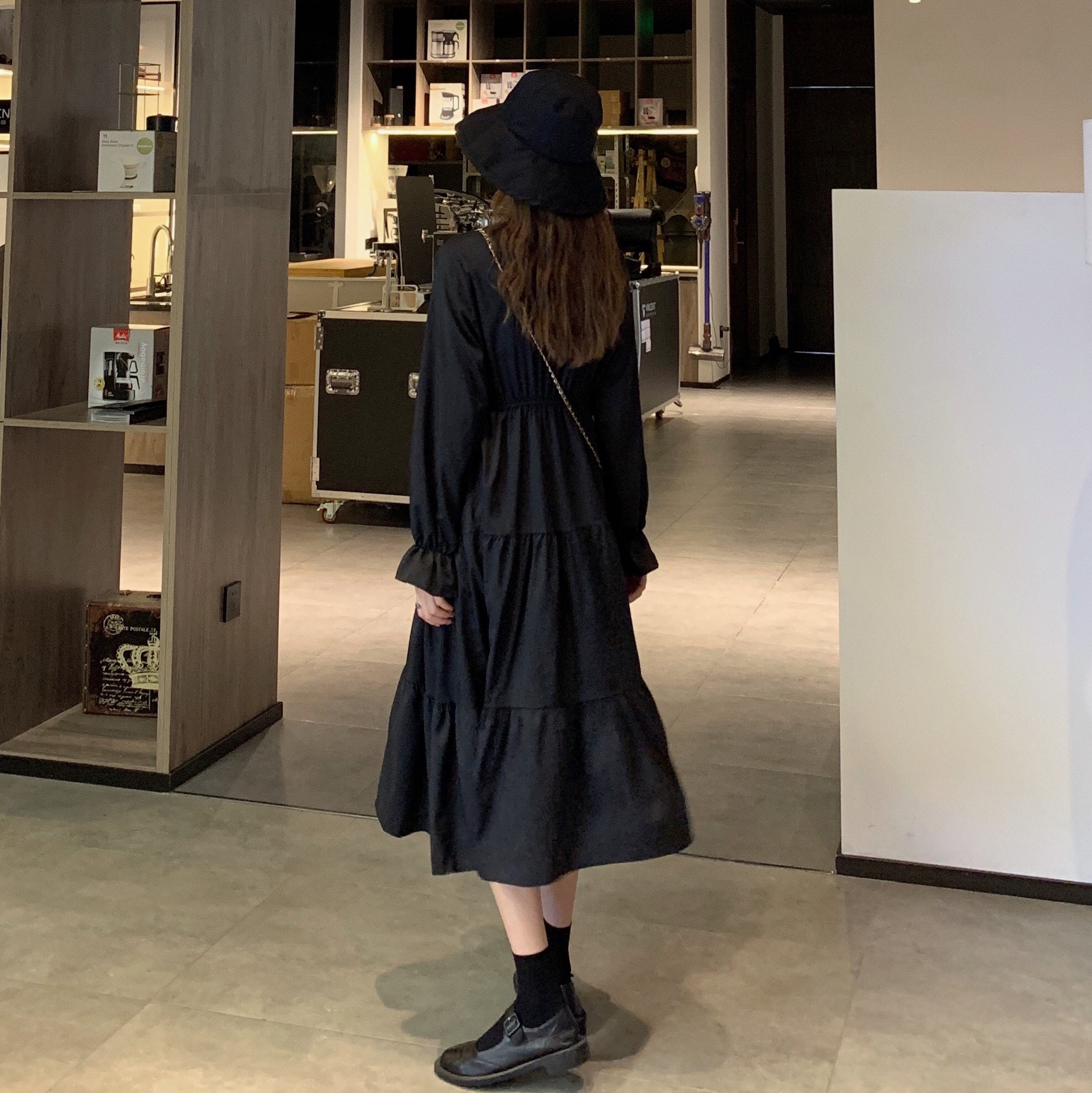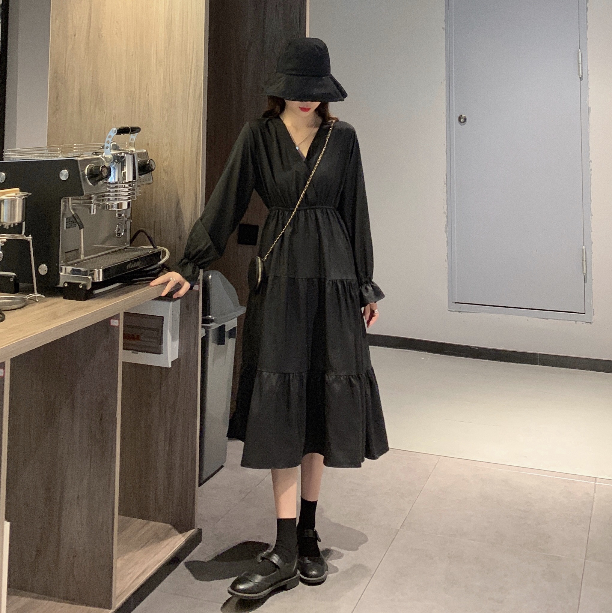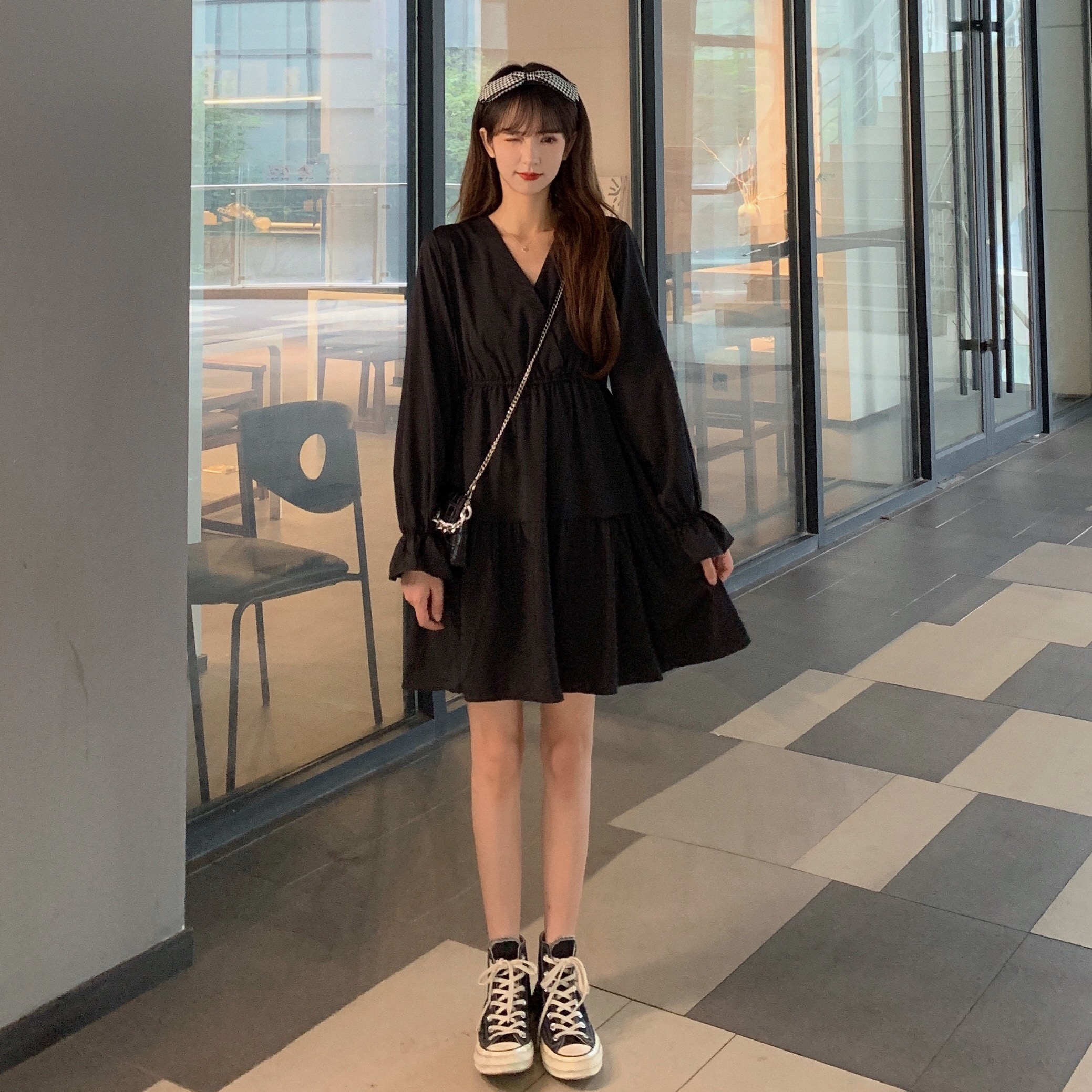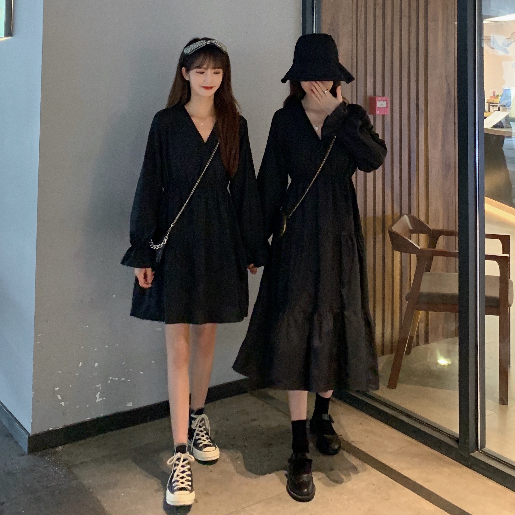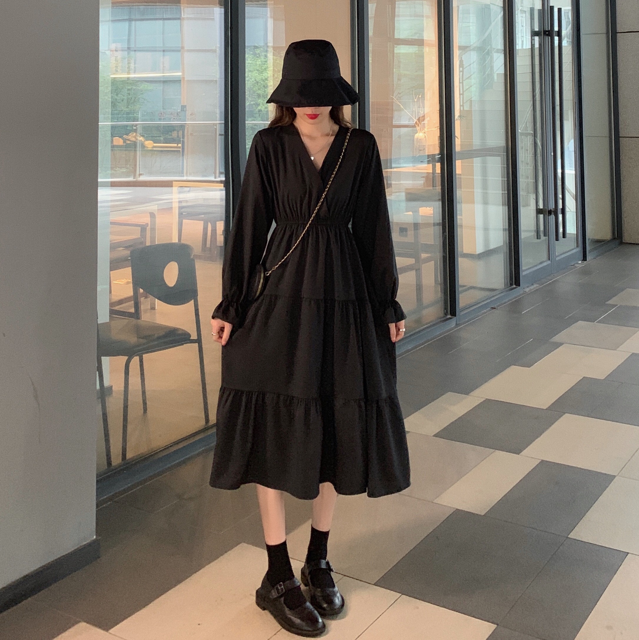 实拍早秋新款大码女装学院风显瘦遮肚减龄连衣裙闺蜜裙M-4XL200斤