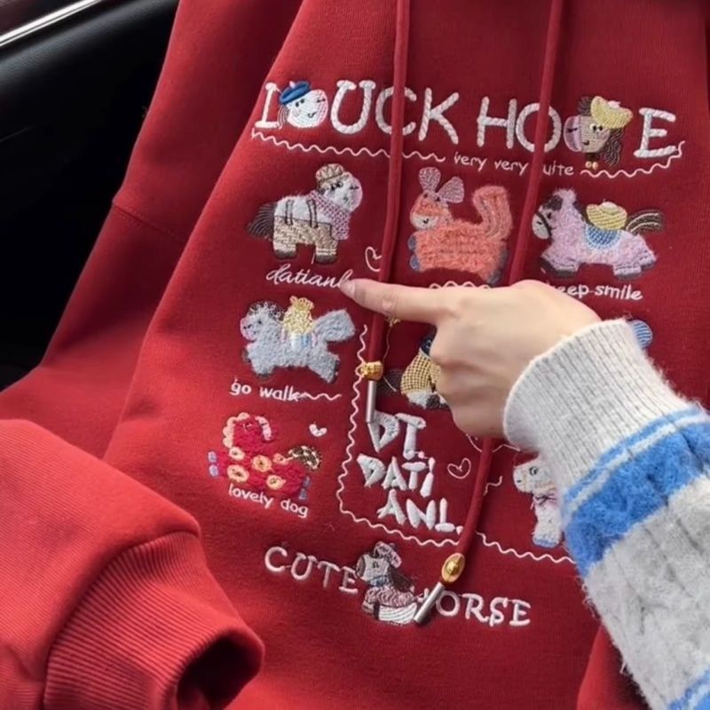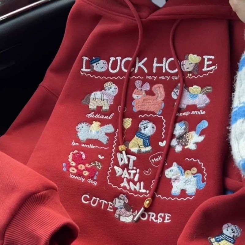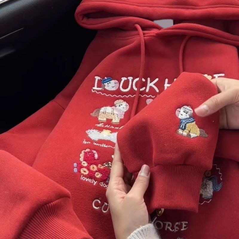 实价 纯棉华棉复银狐绒 刺绣 包肩领 原版定制帽绳 连帽加绒卫衣