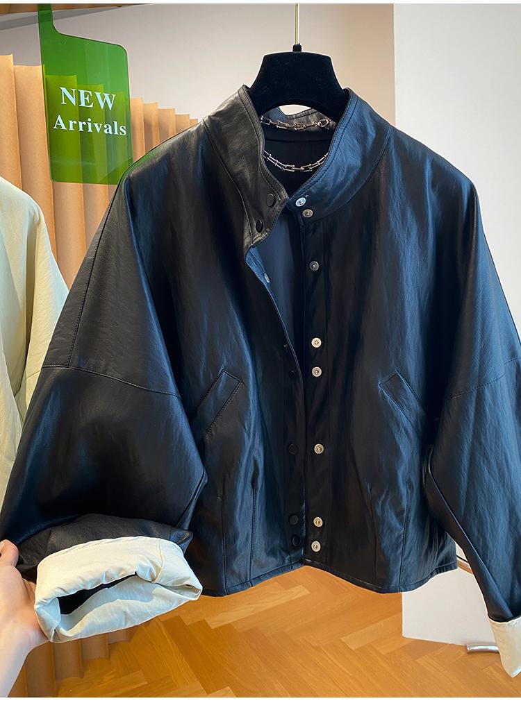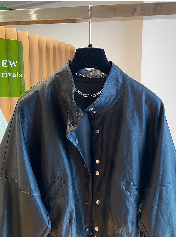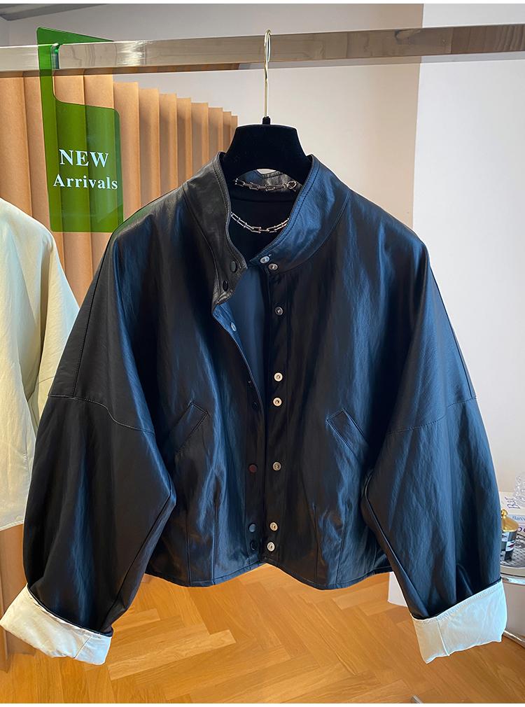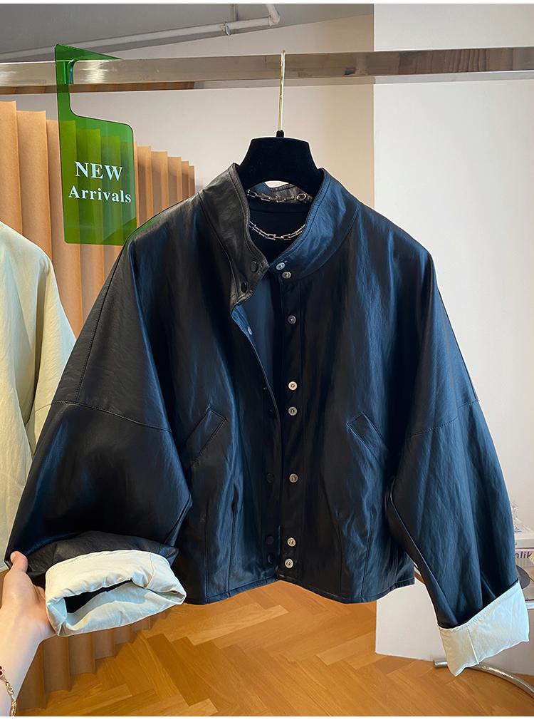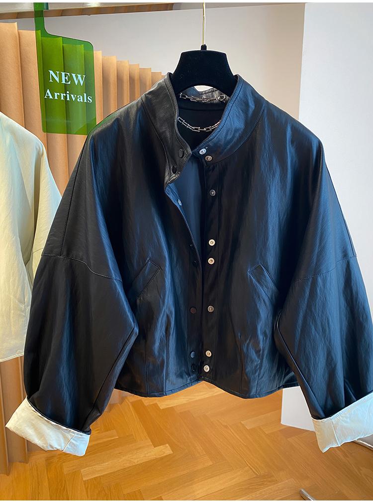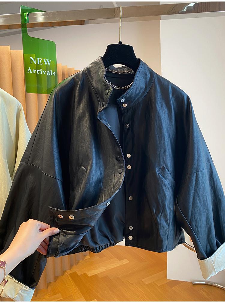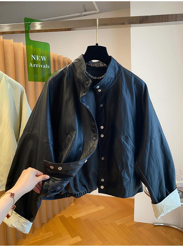 高级感蛋白皮衣外套女春秋2026新款宽松短款时髦PU皮夹克立领上衣
