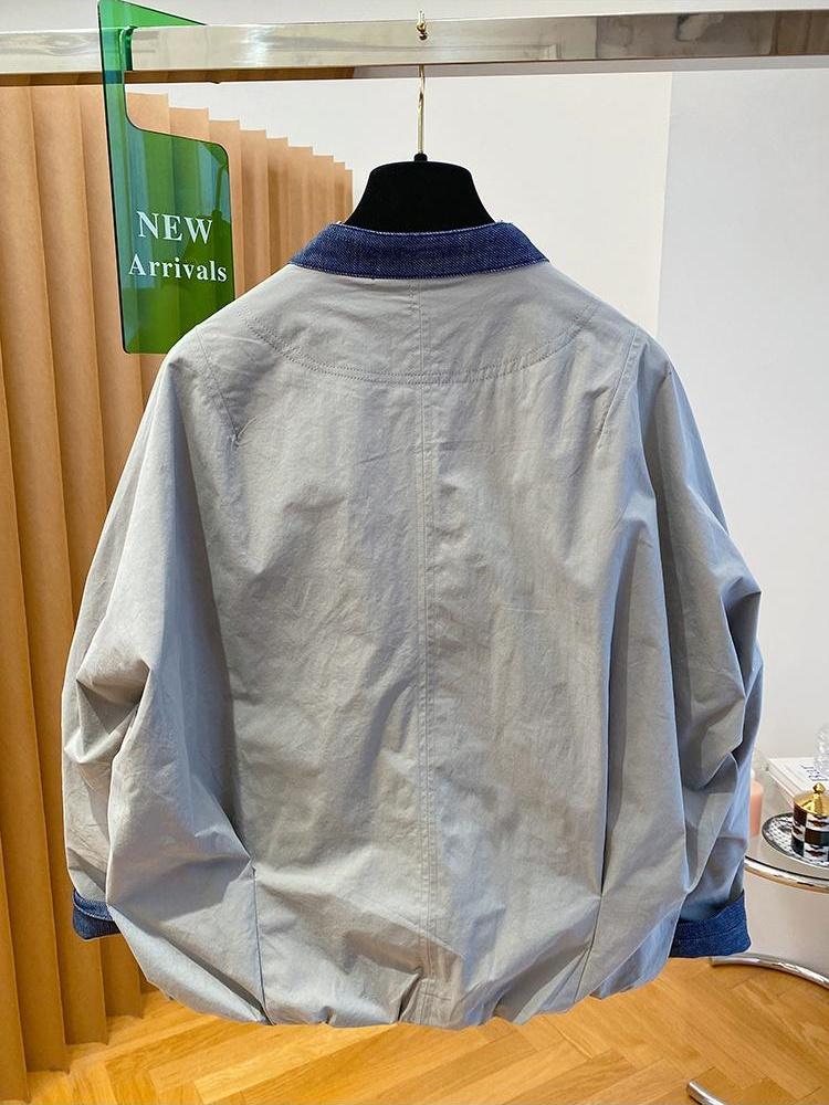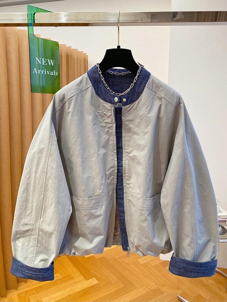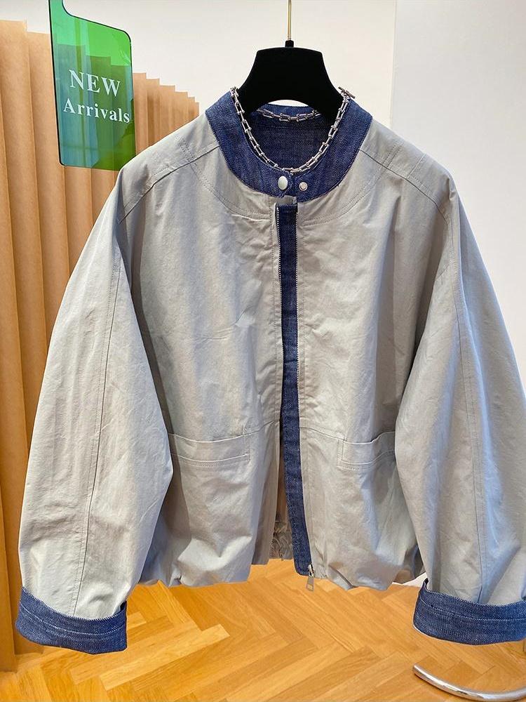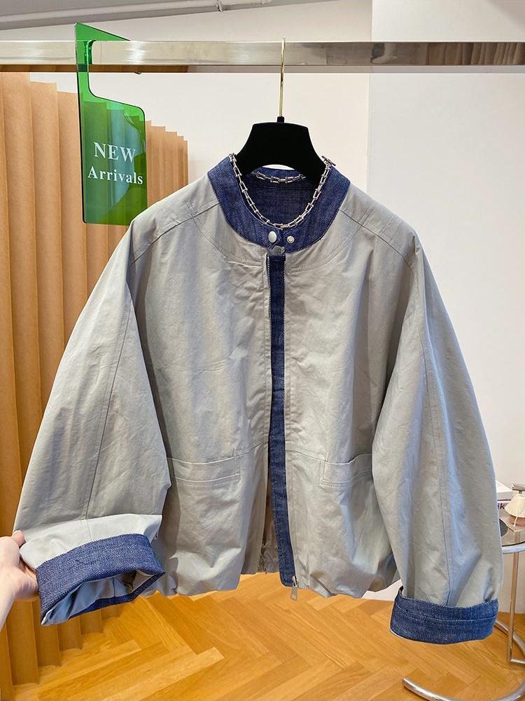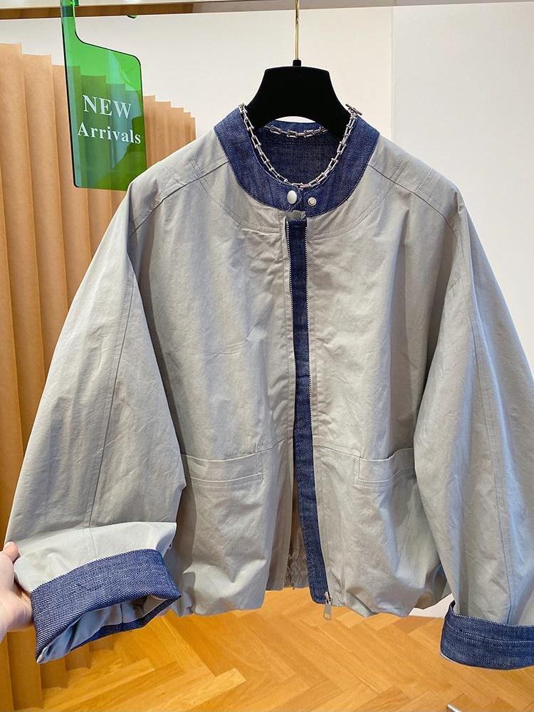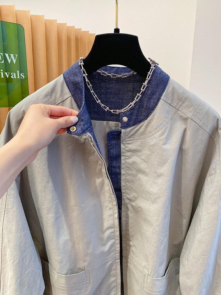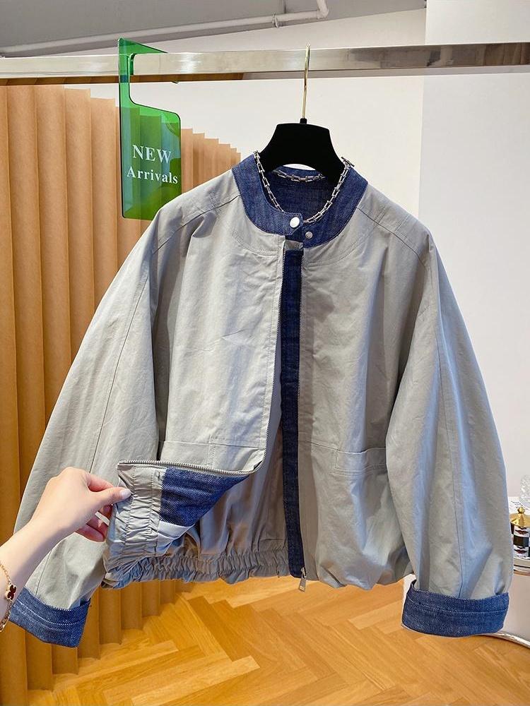 韩国设计感小众牛仔拼接外套女2026新款宽松立领夹克棒球服上衣春