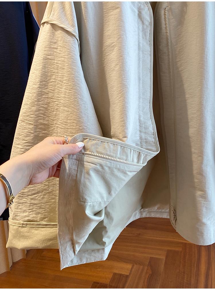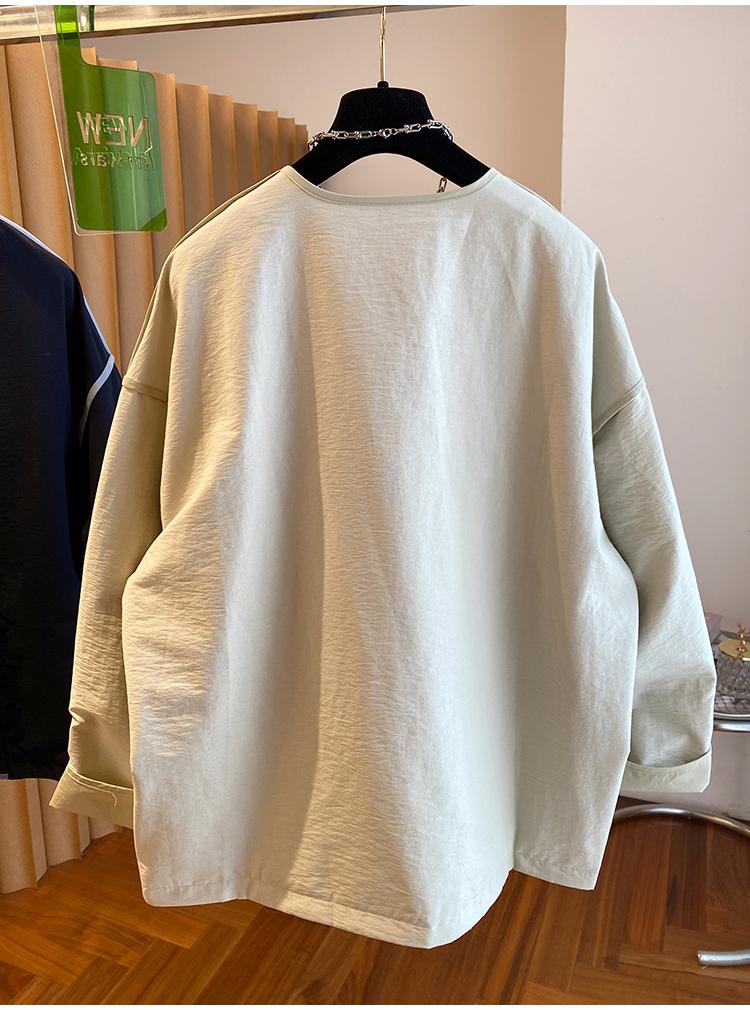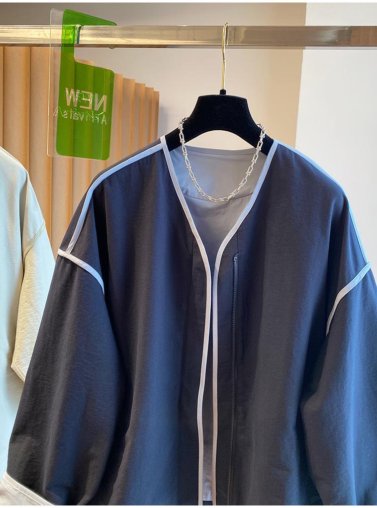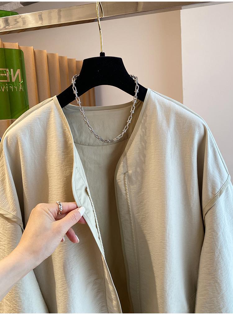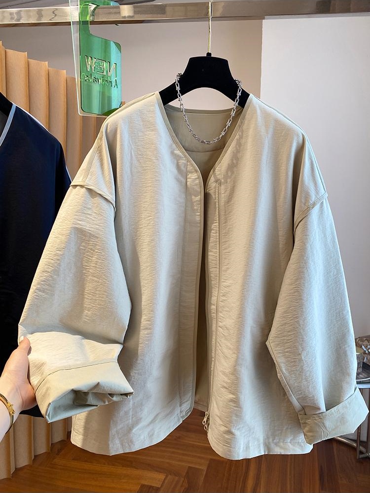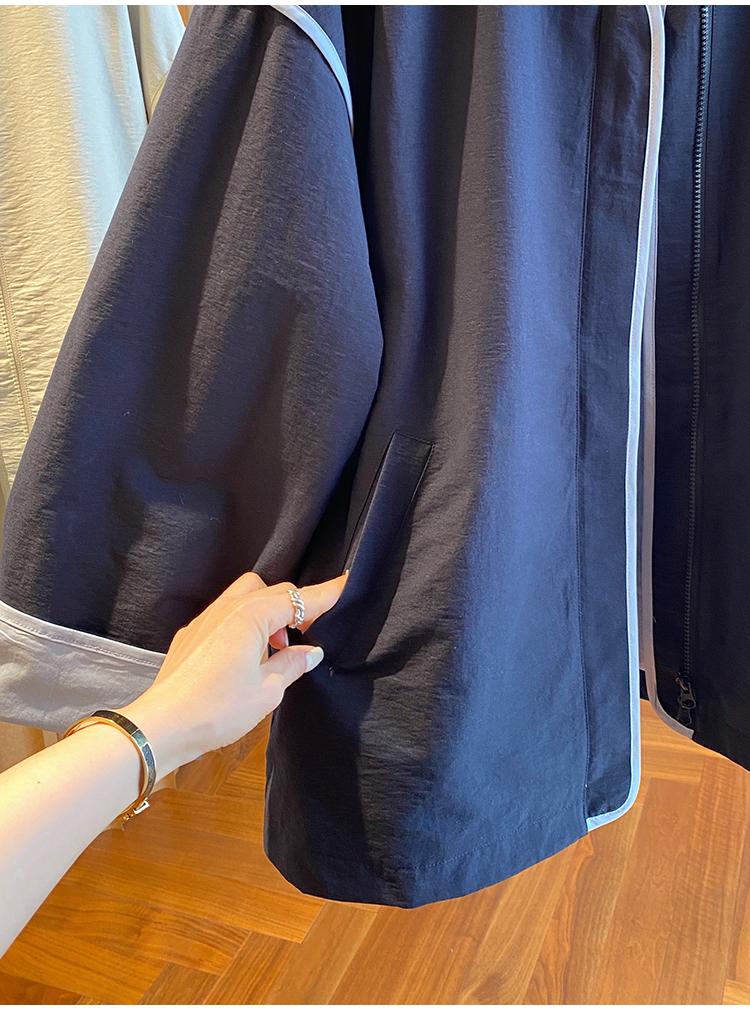 韩系高级感无领外套女春秋2026新款宽松薄款超火拼色休闲夹克风衣