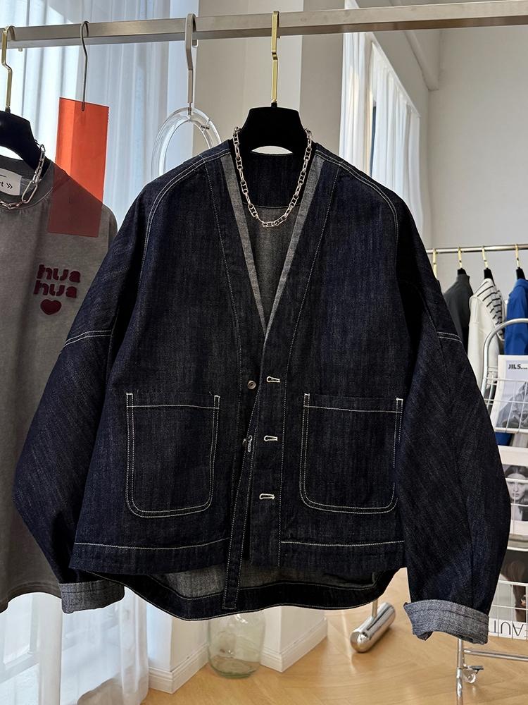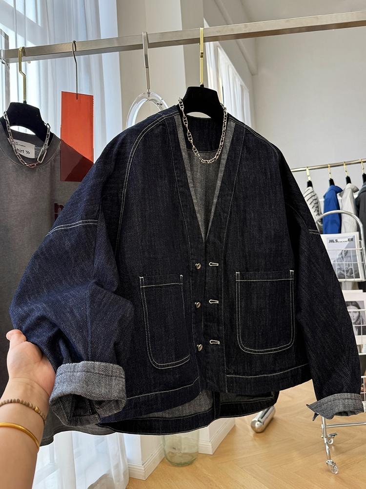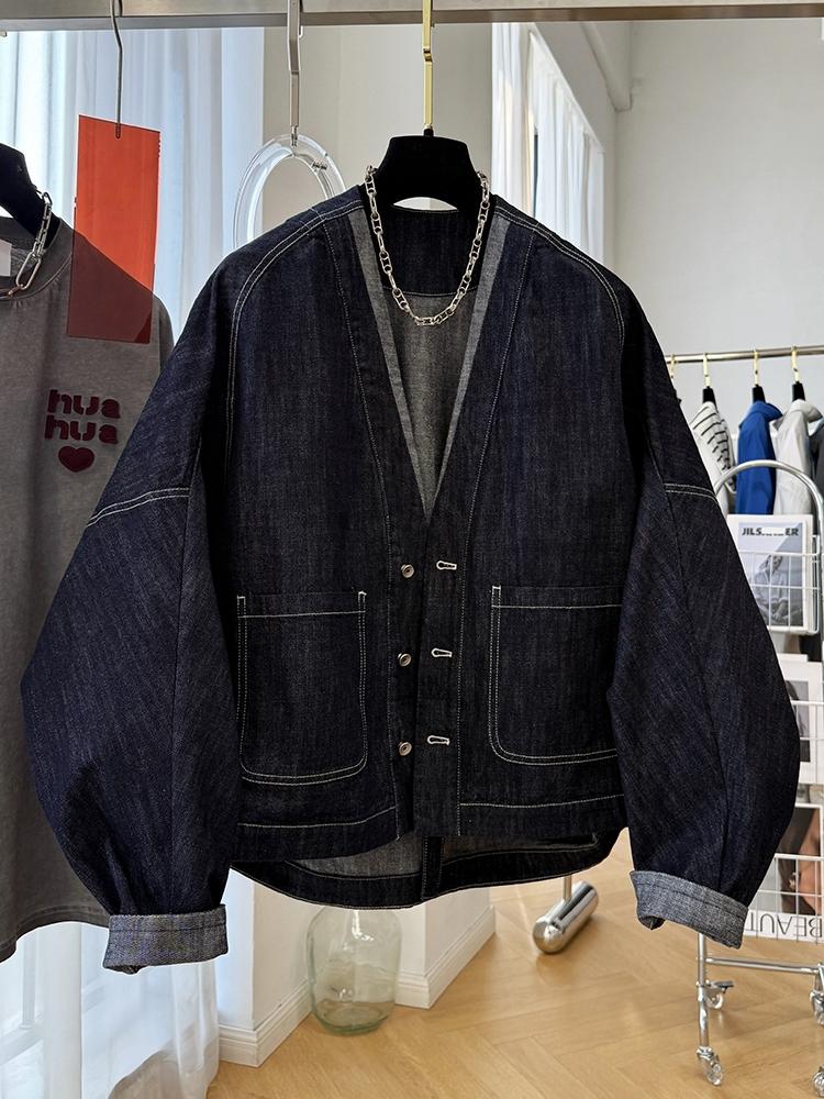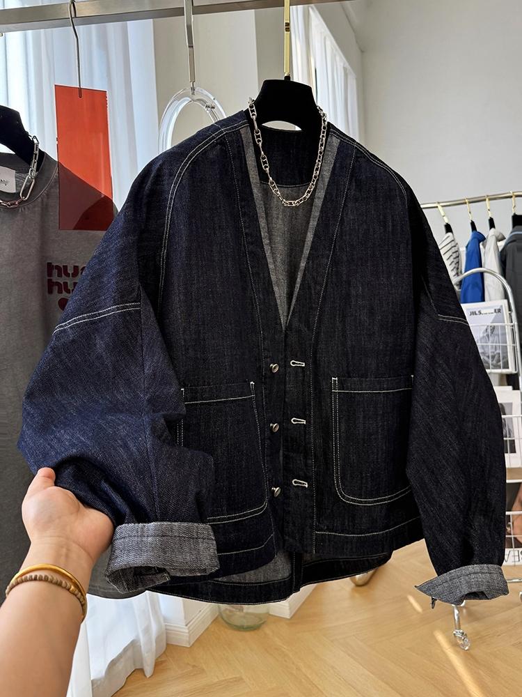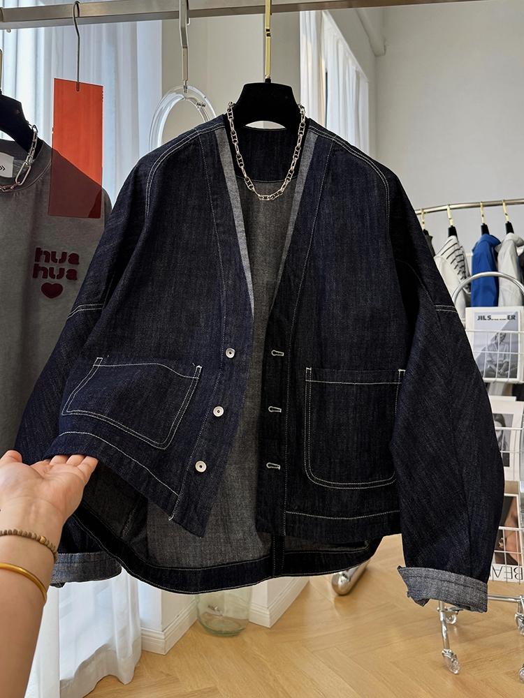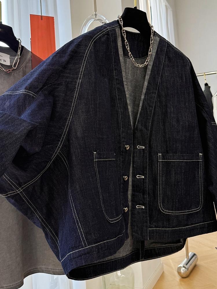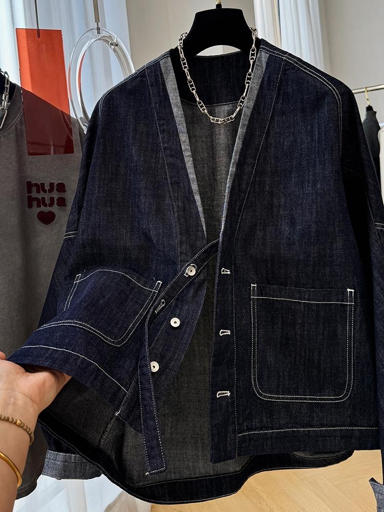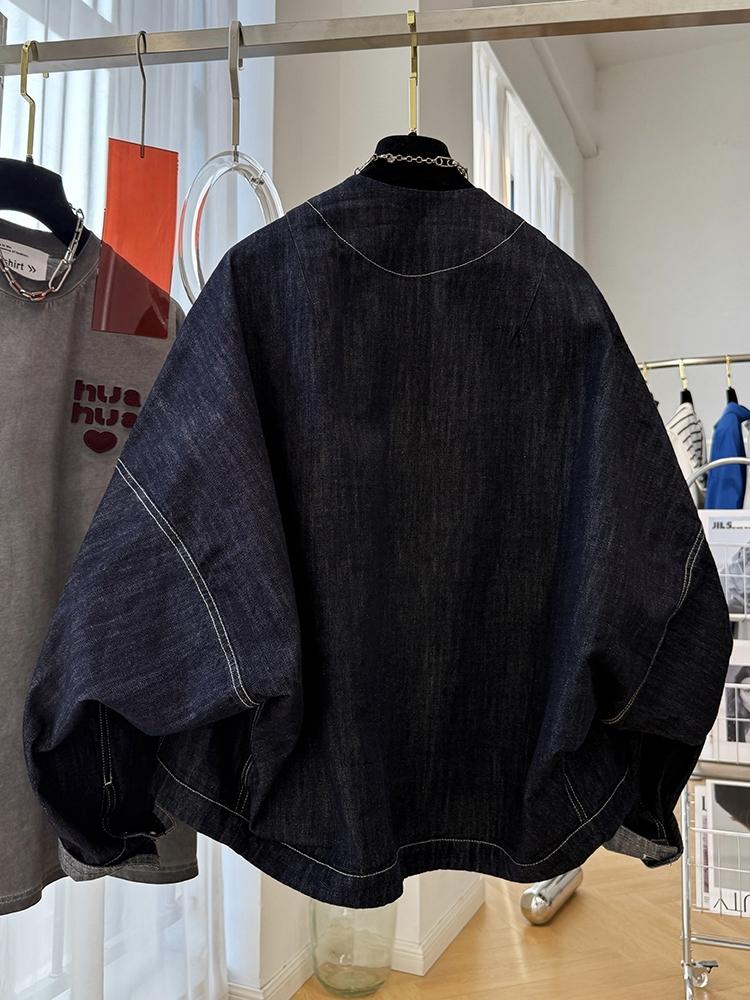 高级感日韩系初春穿搭独特漂亮V领蝙蝠袖牛仔外套女春季休闲夹克
