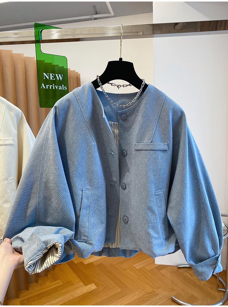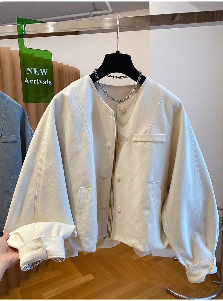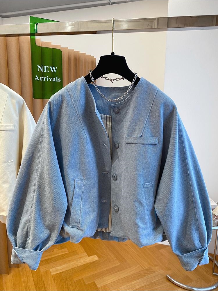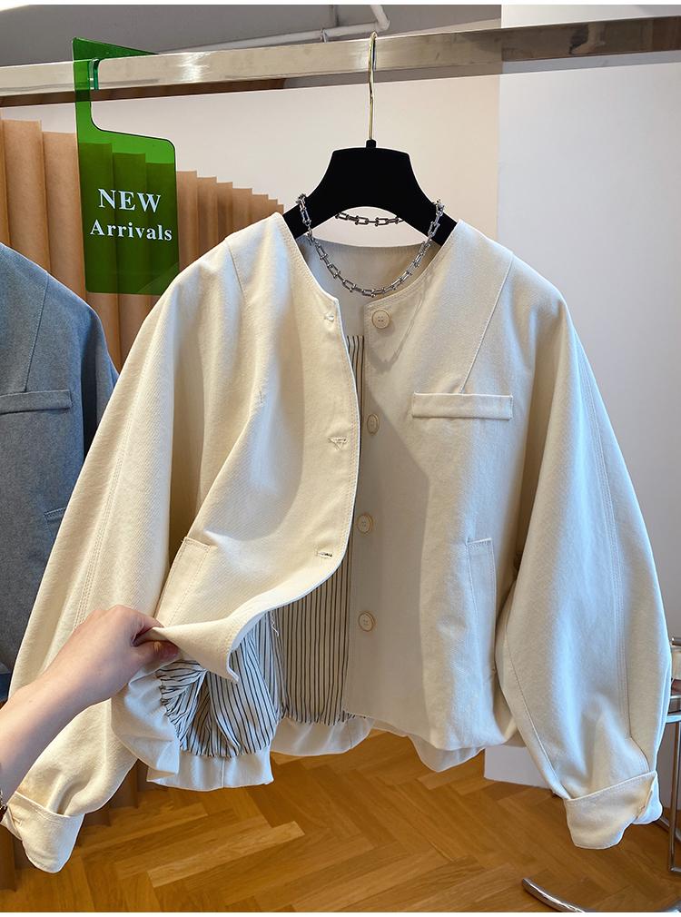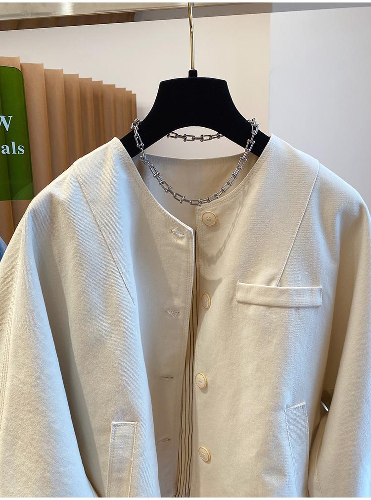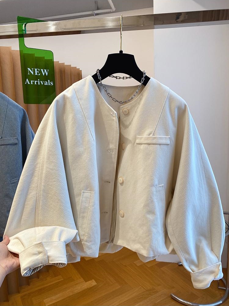 韩国高级感无领外套女春秋2026新款宽松休闲百搭简约短款夹克上衣