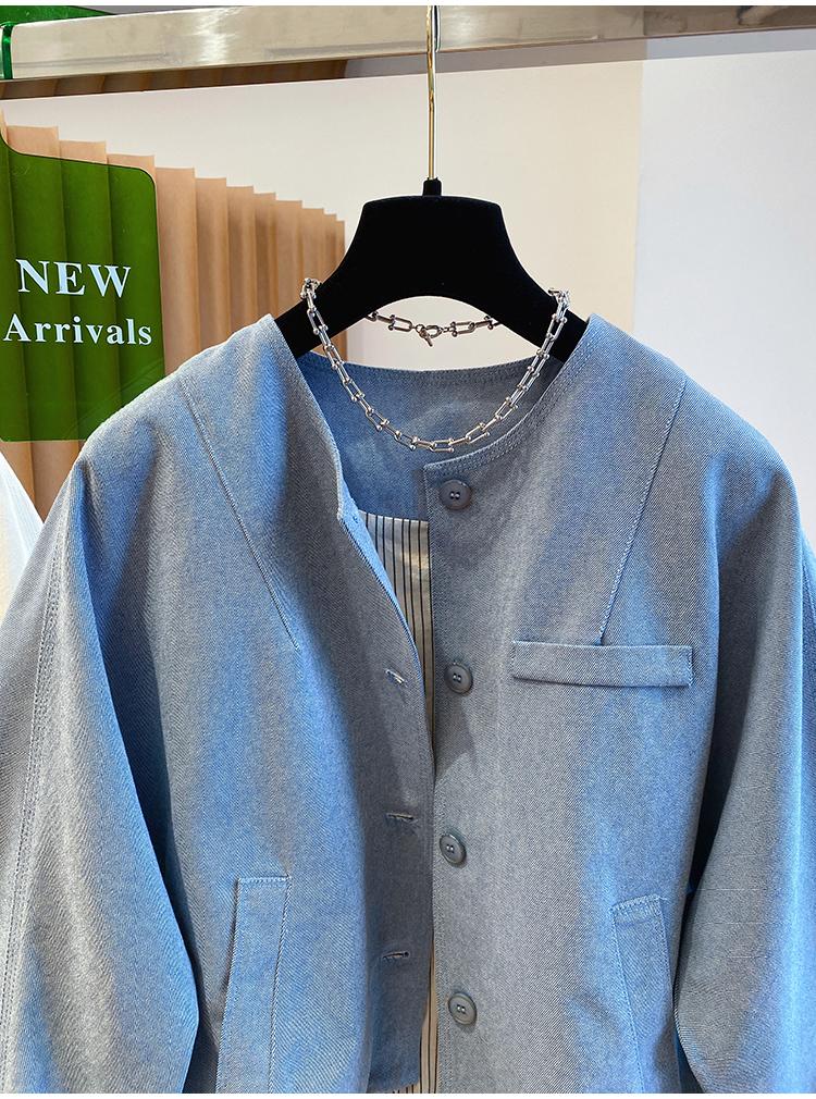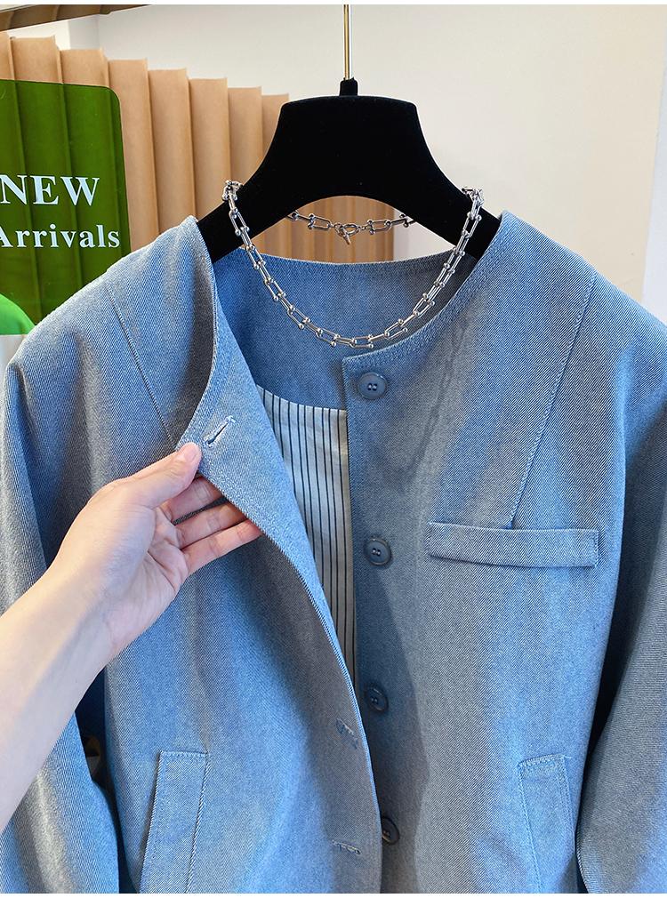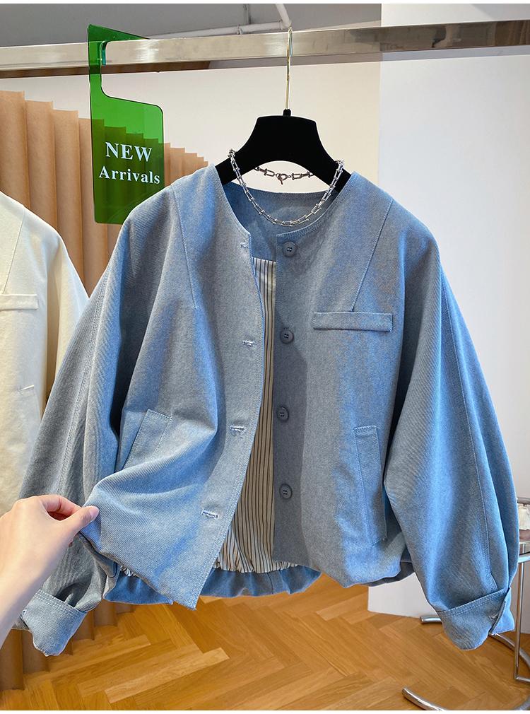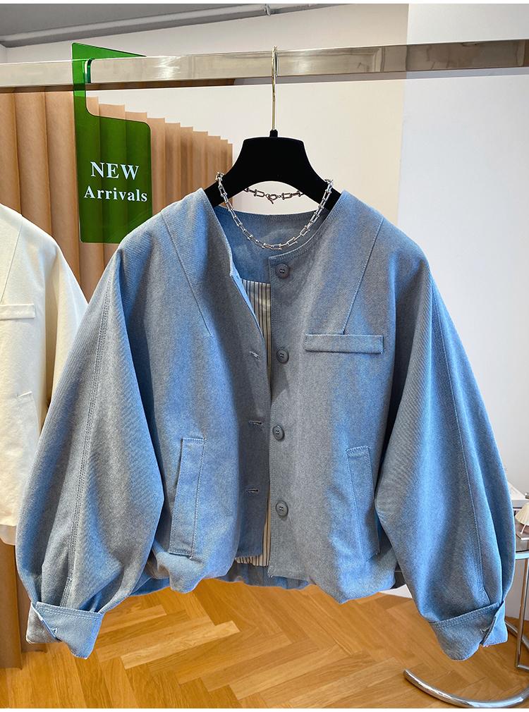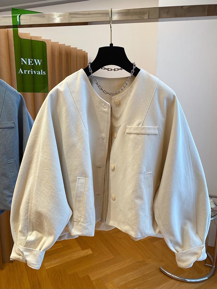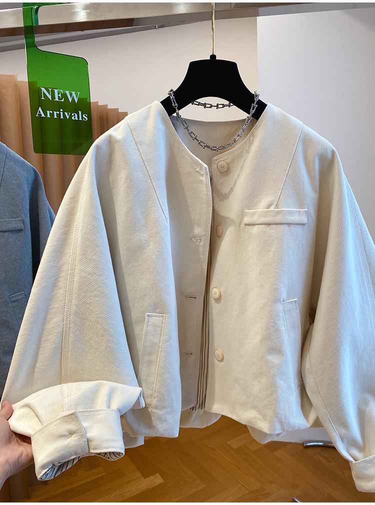 韩国高级感无领外套女春秋2026新款宽松休闲百搭简约短款夹克上衣