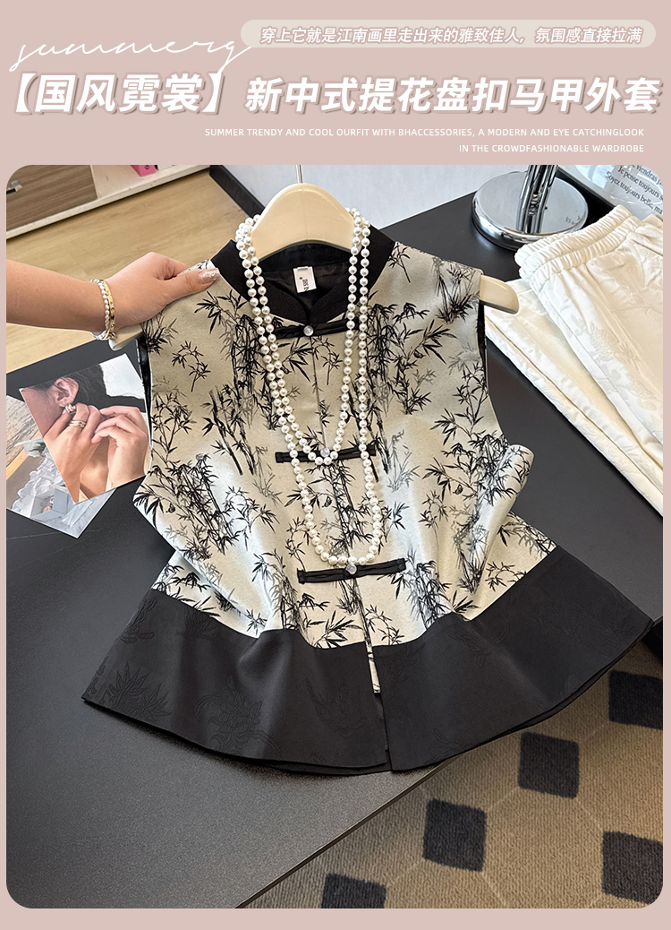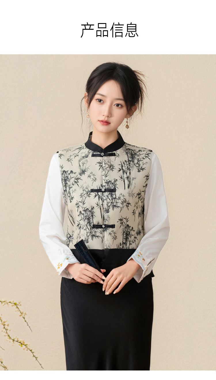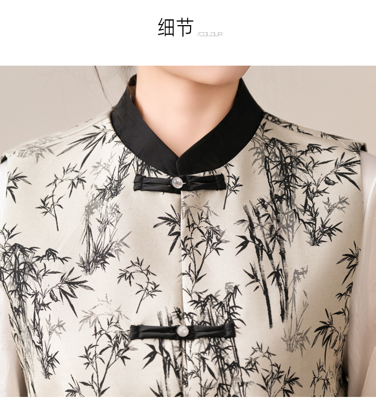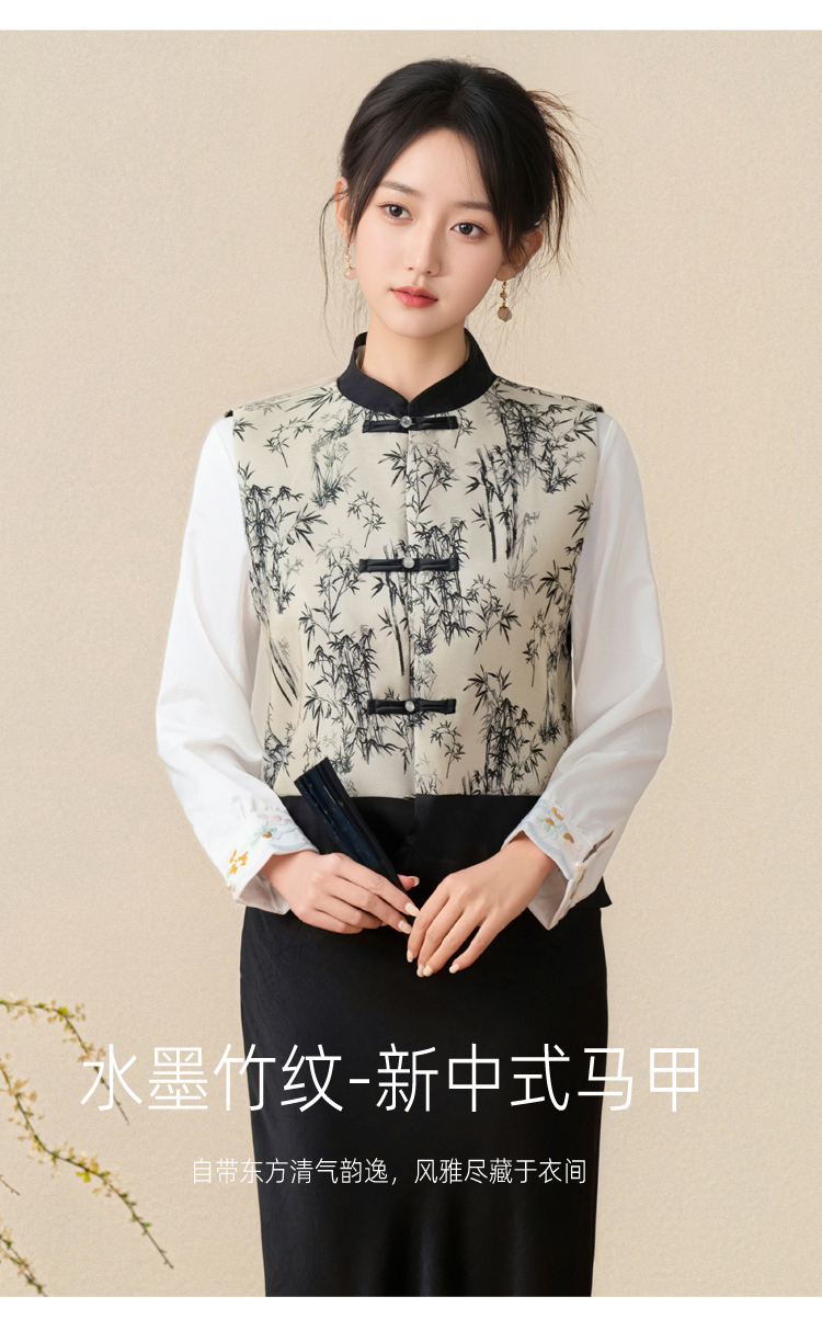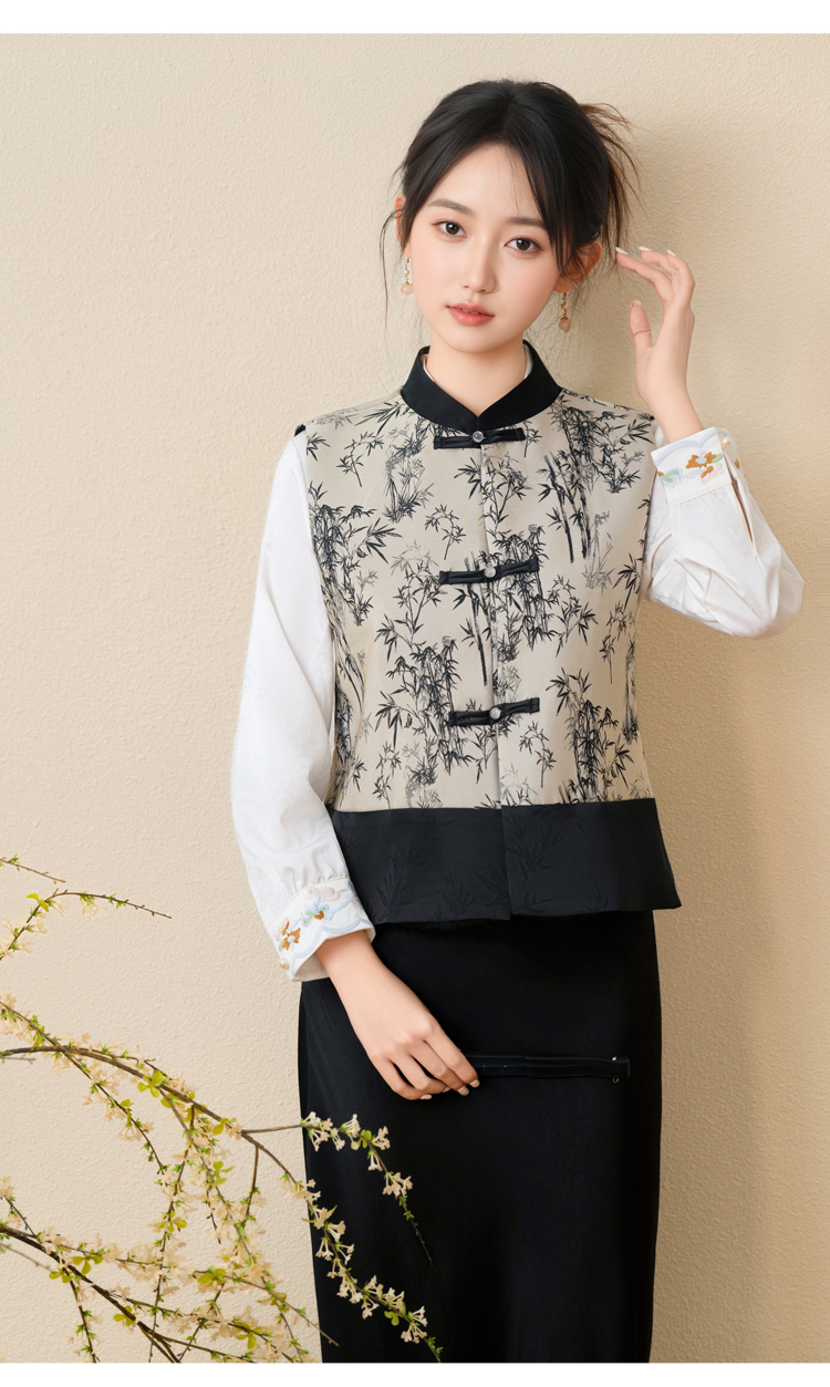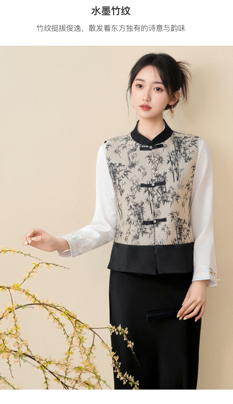 空墨竹新中式复古盘扣提花国风压花撞色立领百搭日常马甲