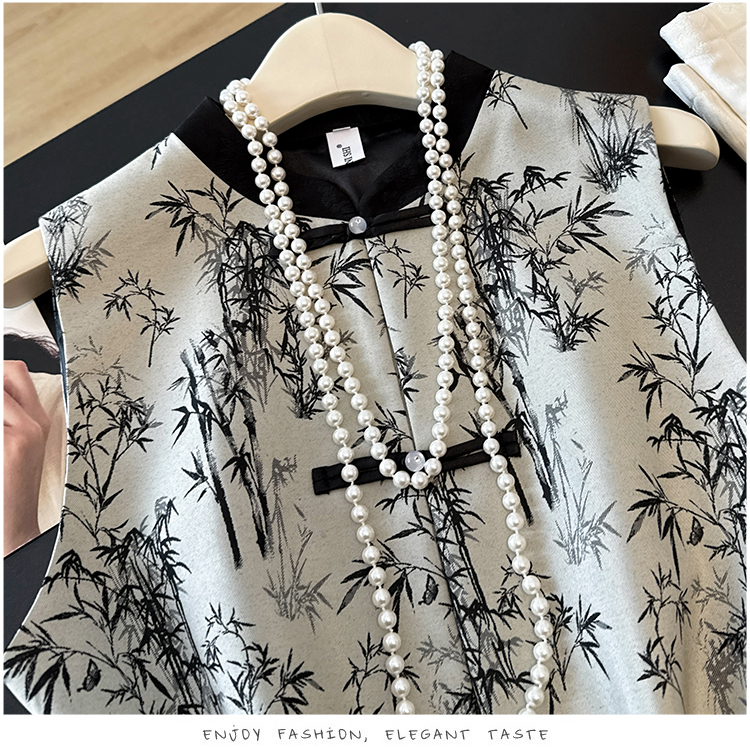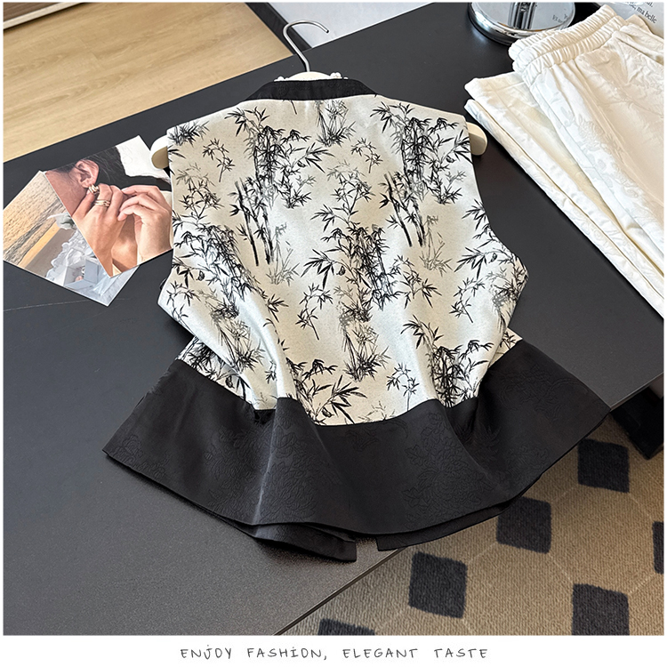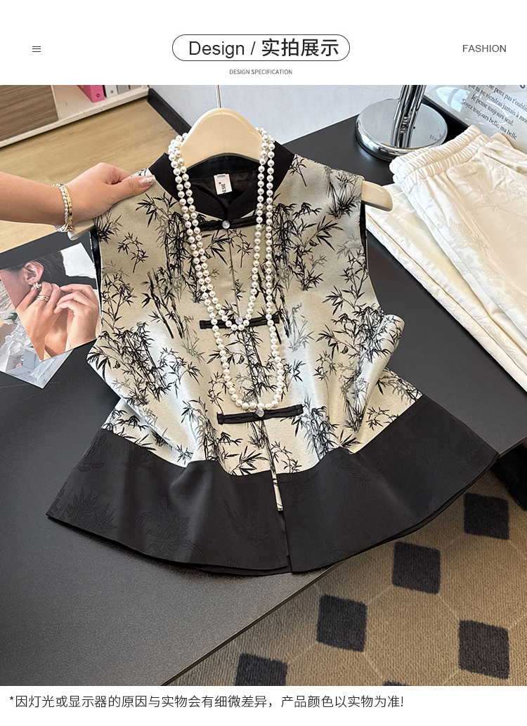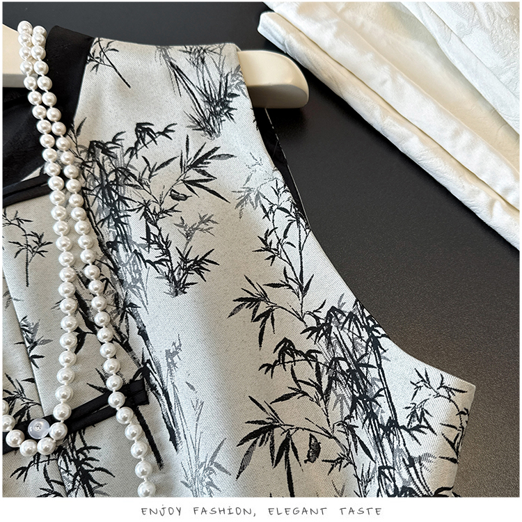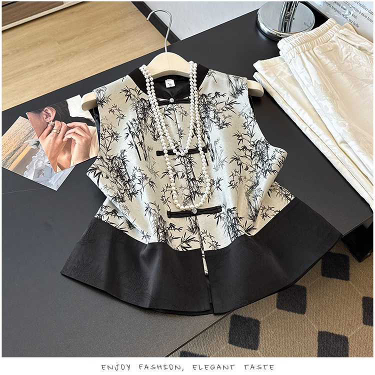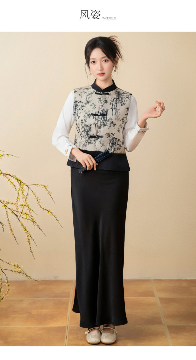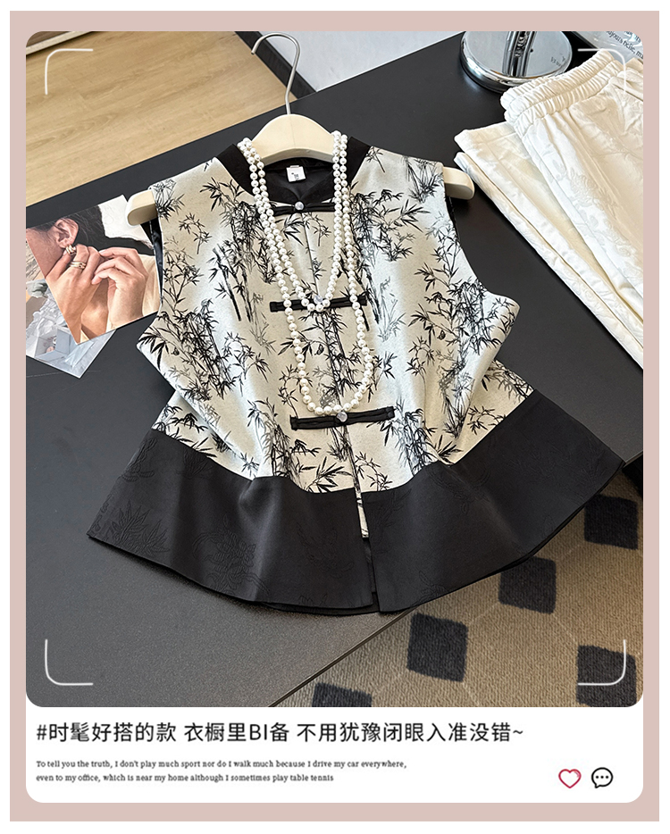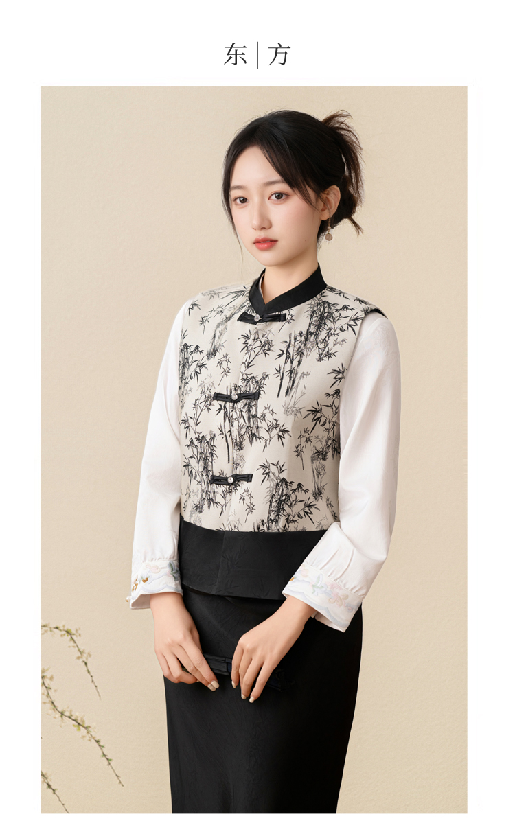 空墨竹新中式复古盘扣提花国风压花撞色立领百搭日常马甲