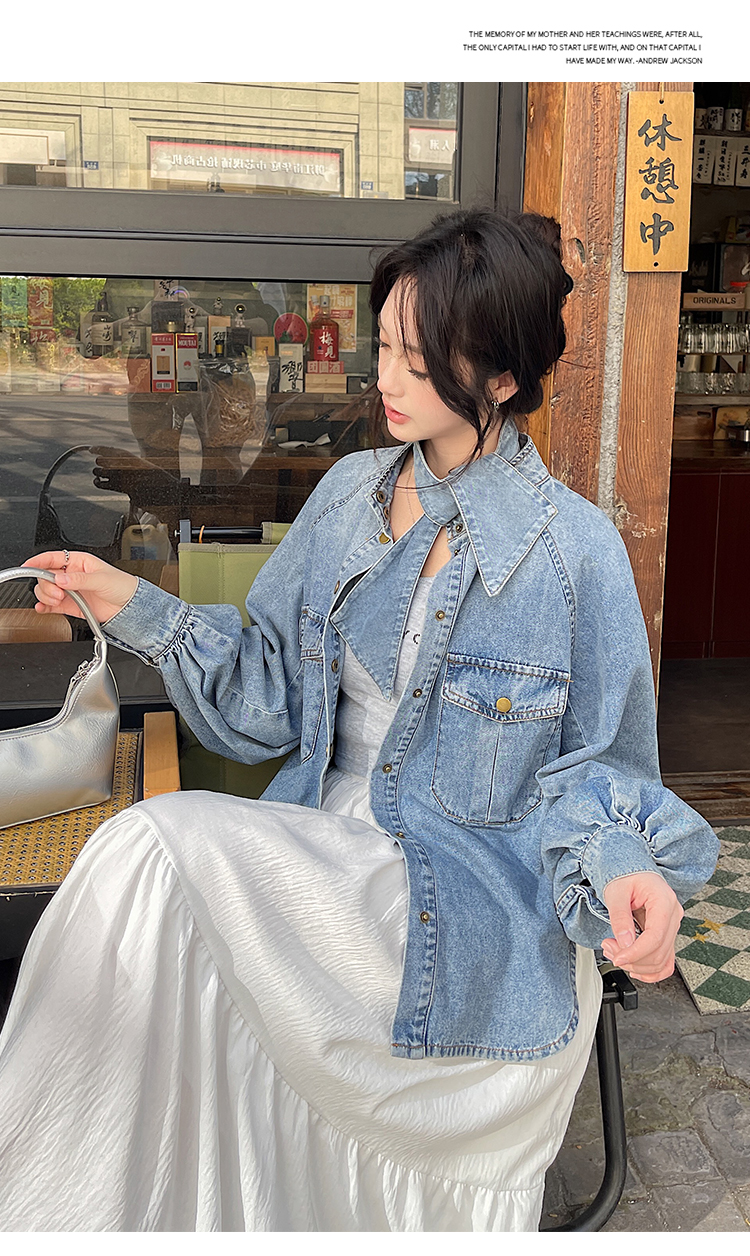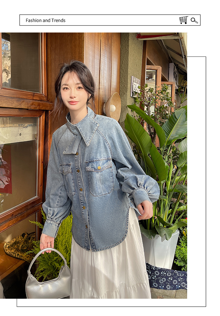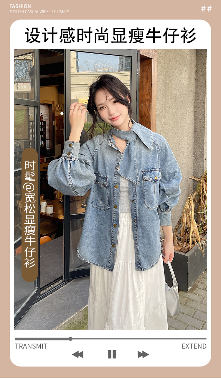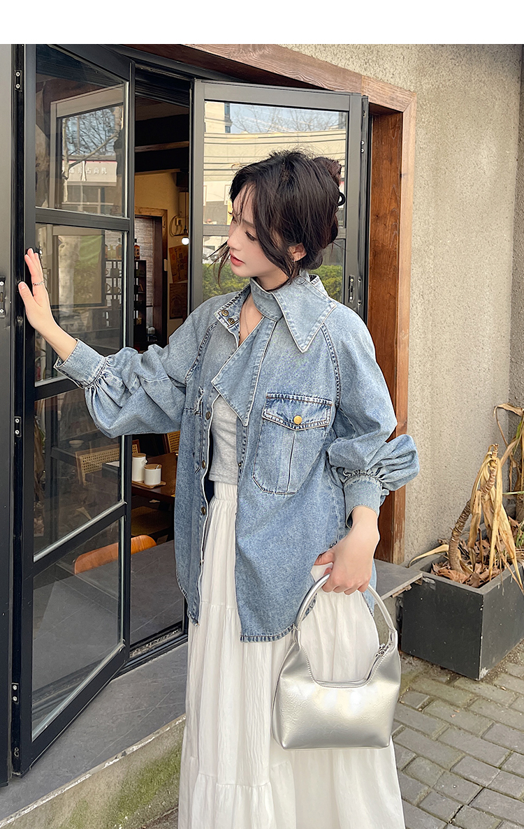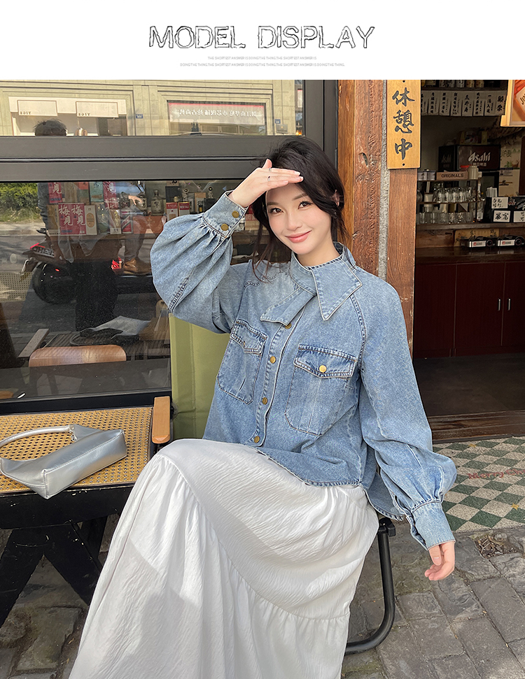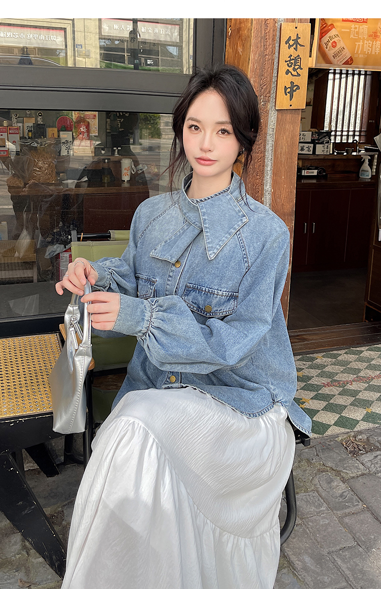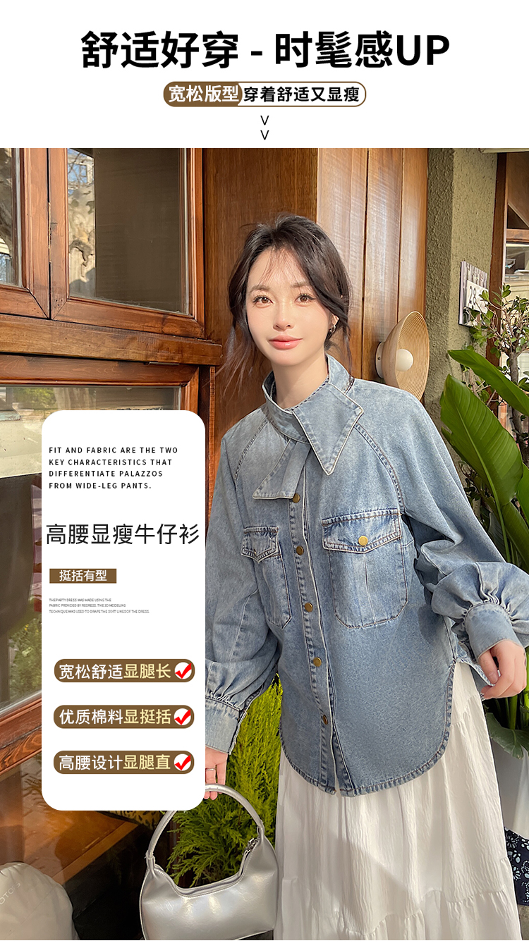 实拍港风复古牛仔衬衫女春秋季小众别致独特设计感外套上衣学院风