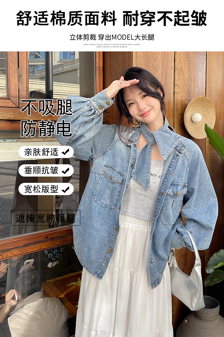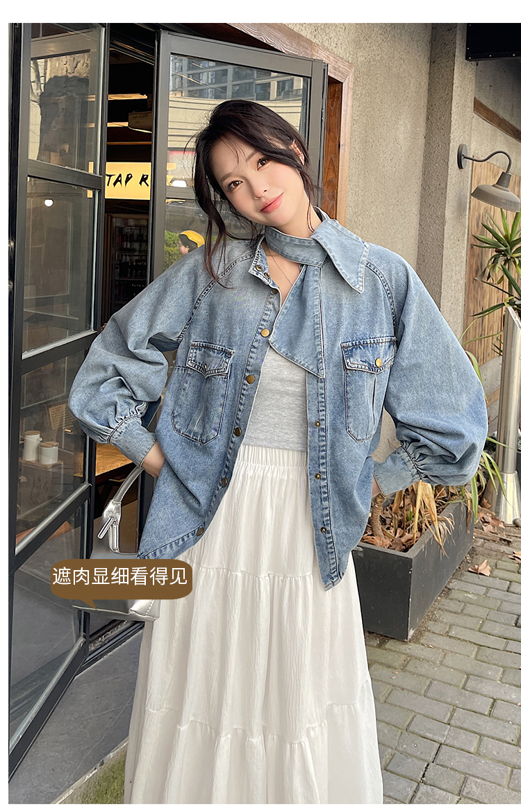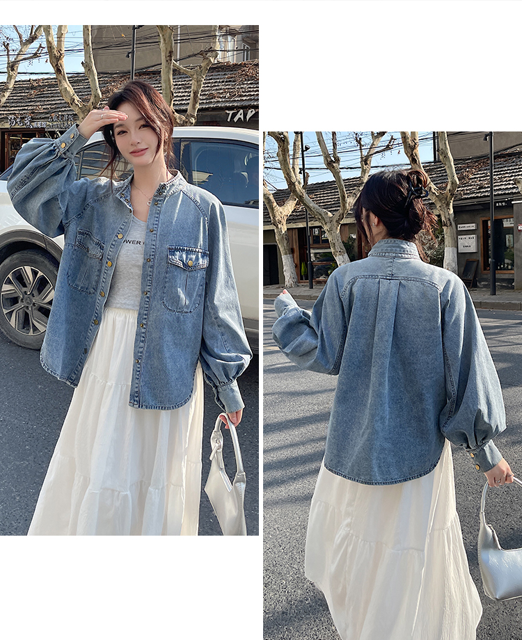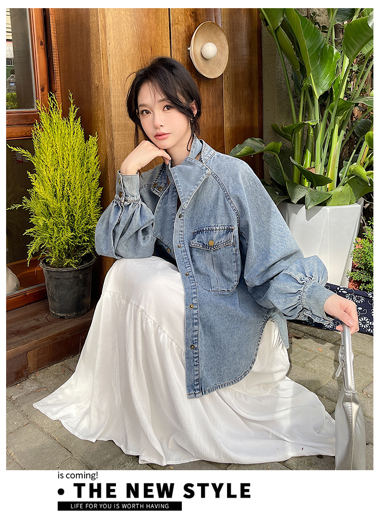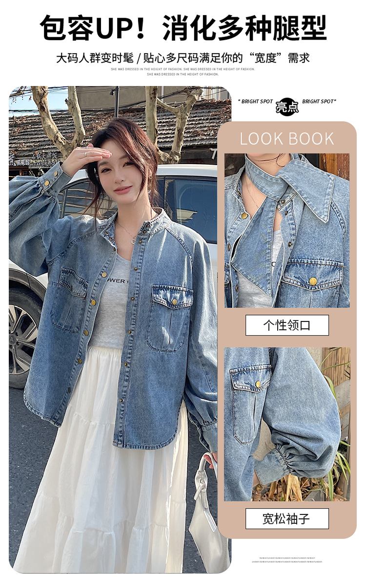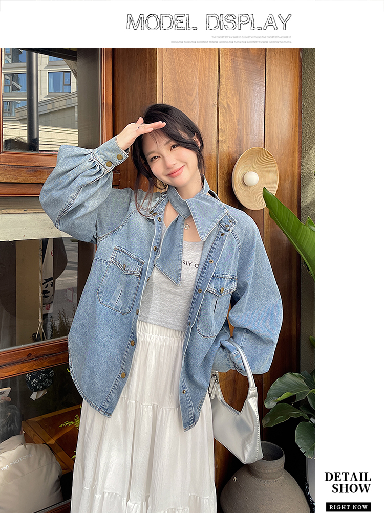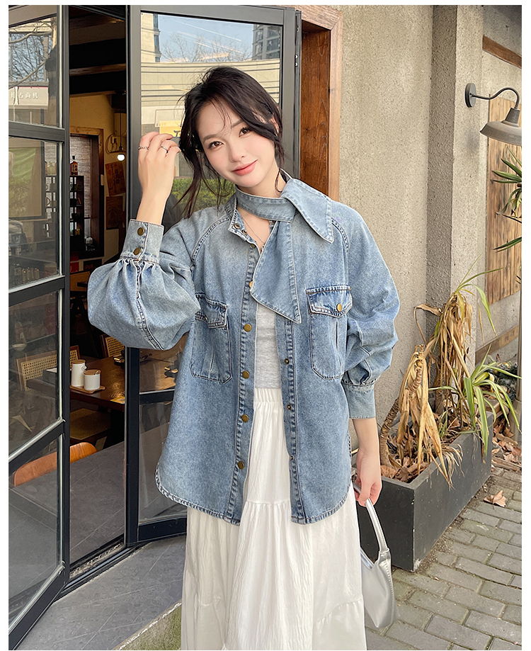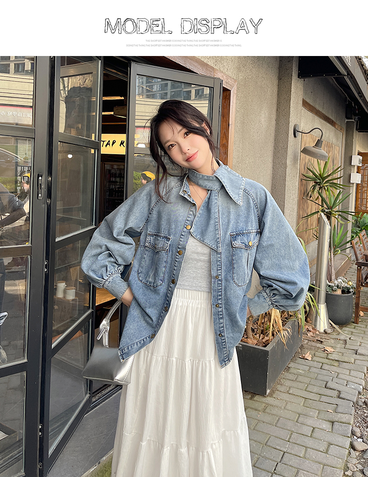 实拍港风复古牛仔衬衫女春秋季小众别致独特设计感外套上衣学院风