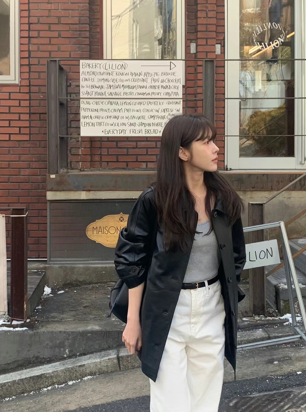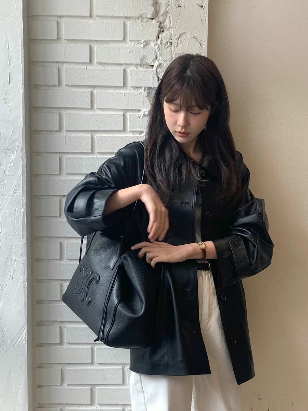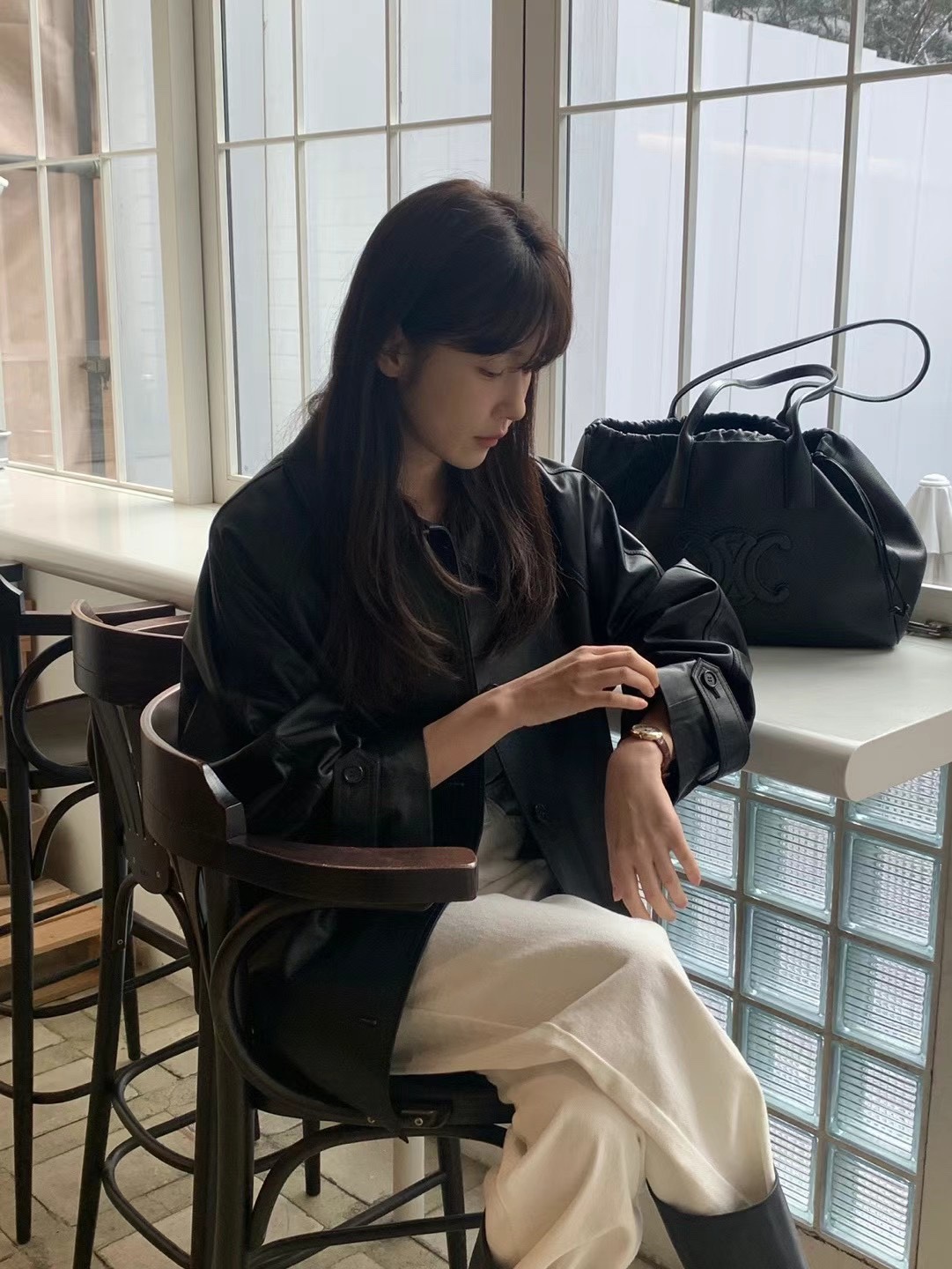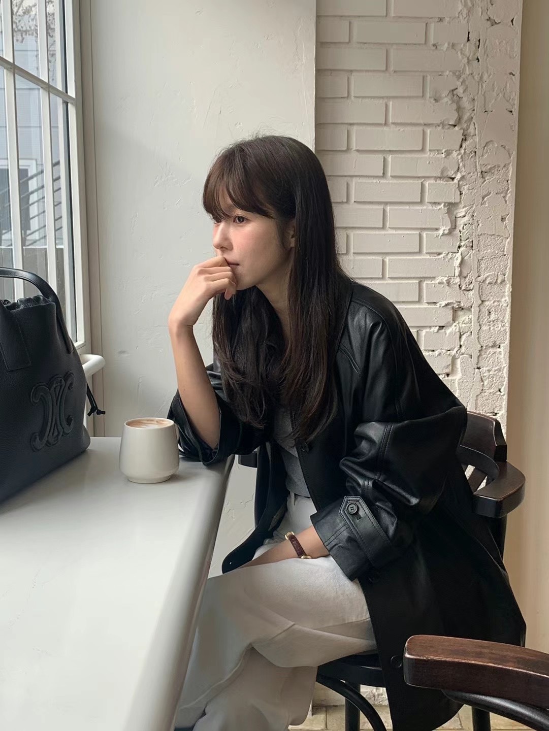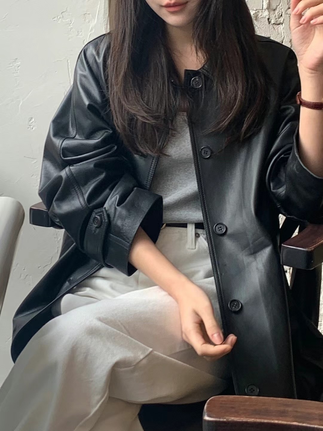 尺寸已更新 INS博主款春秋设计感炸街复古黑色宽松PU西装皮衣外套