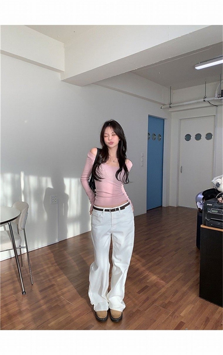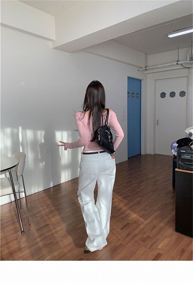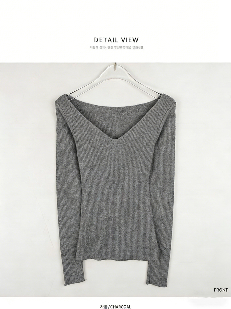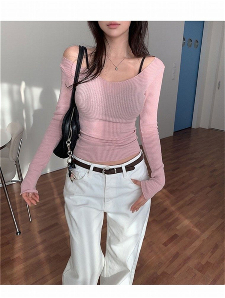韩国东大门新款气质修身显身材长袖薄款微透大V领百搭打底衫T恤女