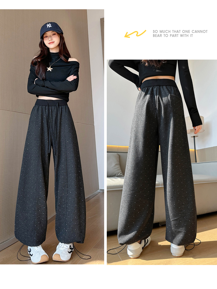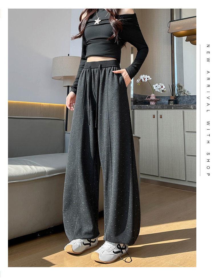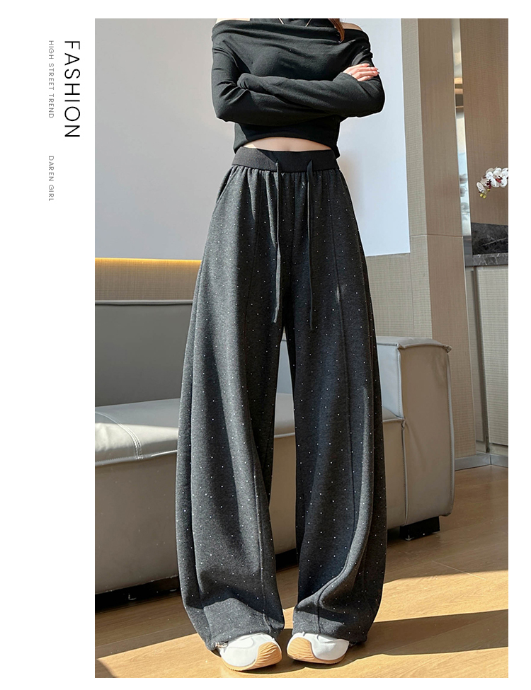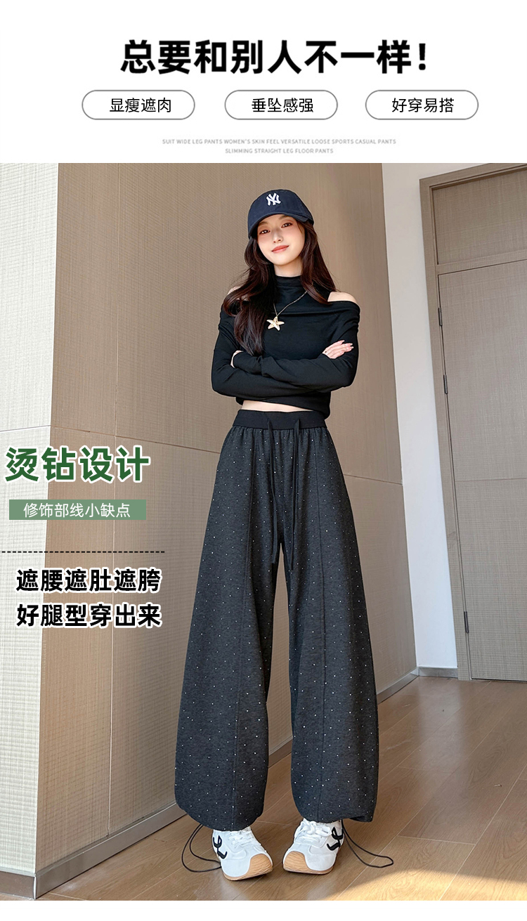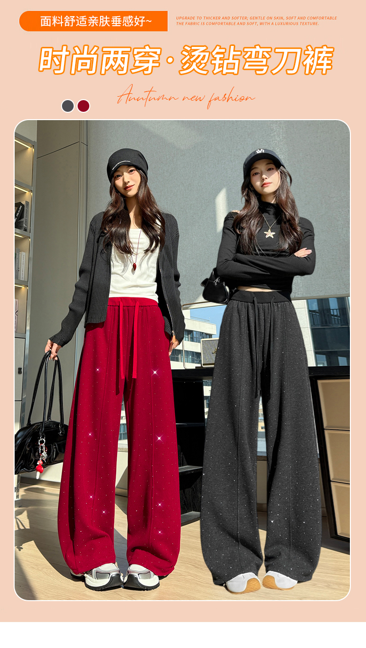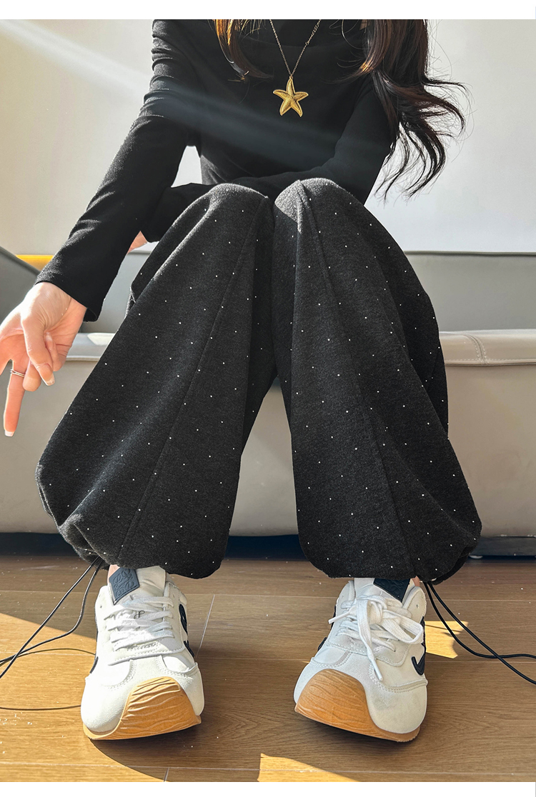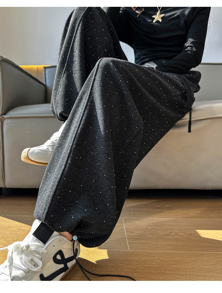 韩系2026春季满天星烫钻弯刀卫裤女裤脚抽绳运动裤阔腿休闲长裤