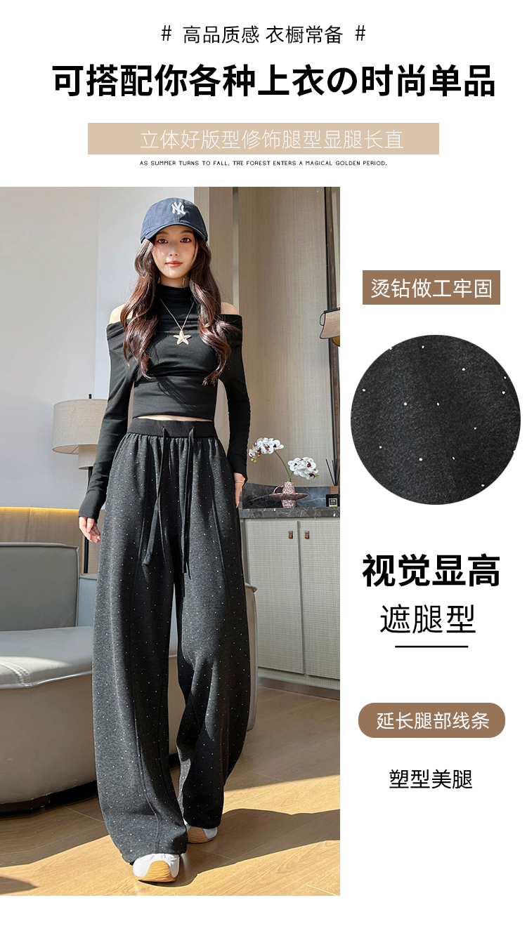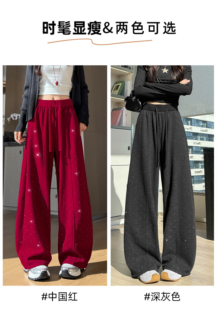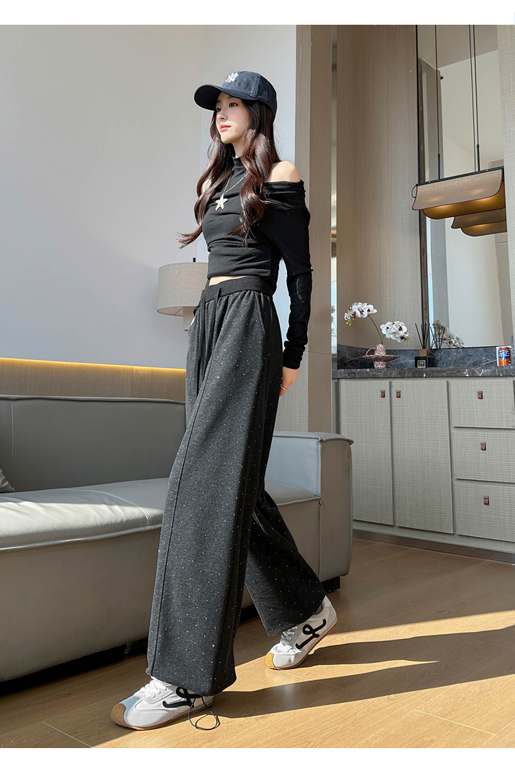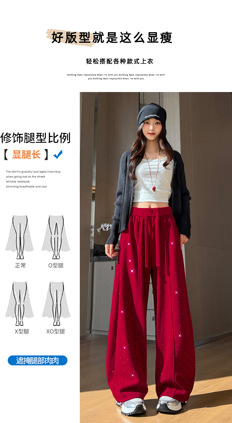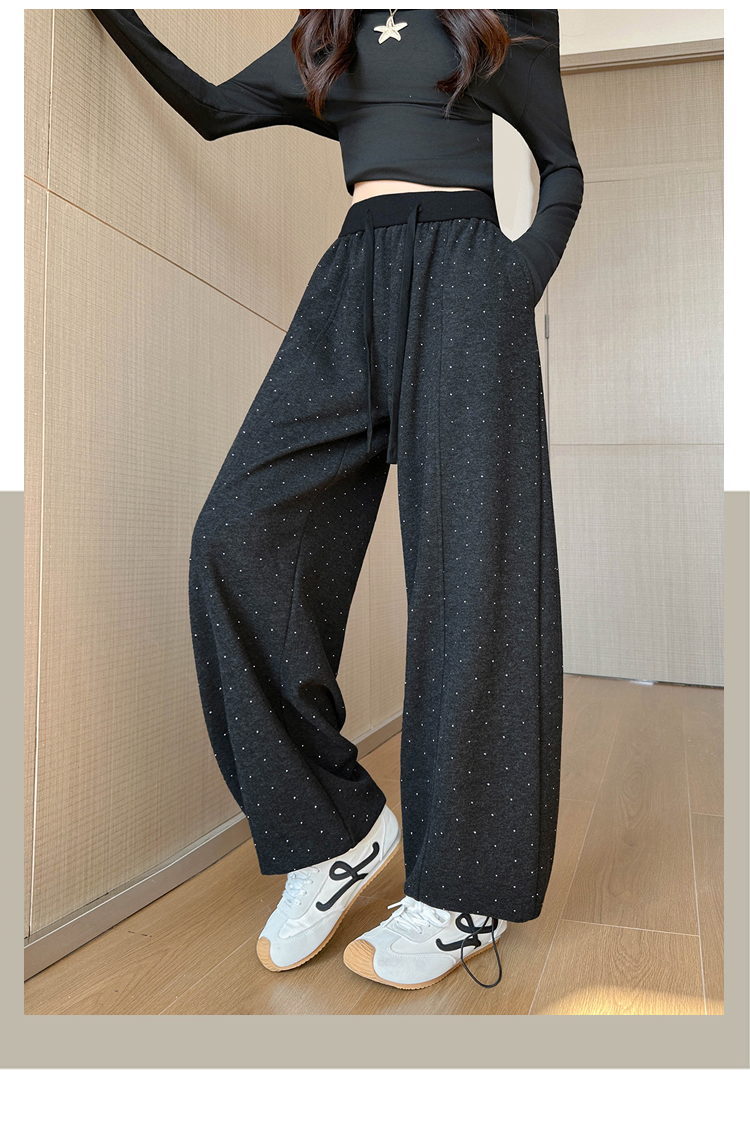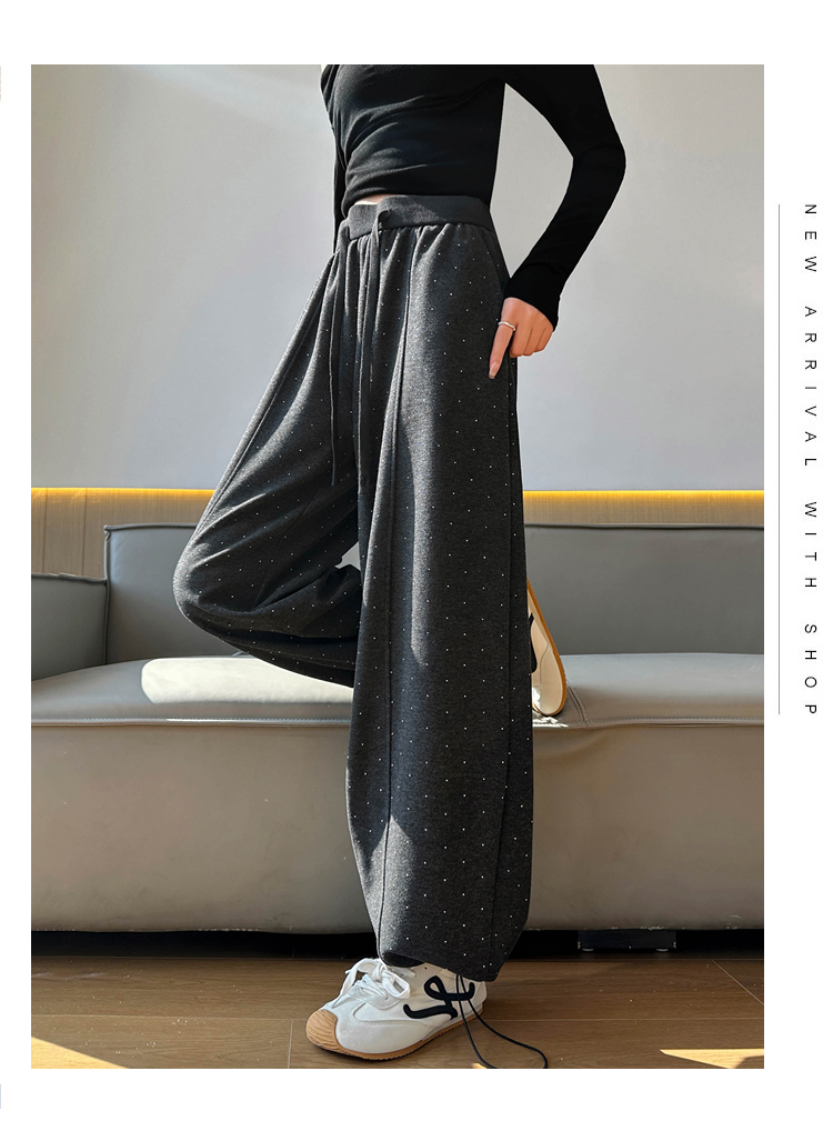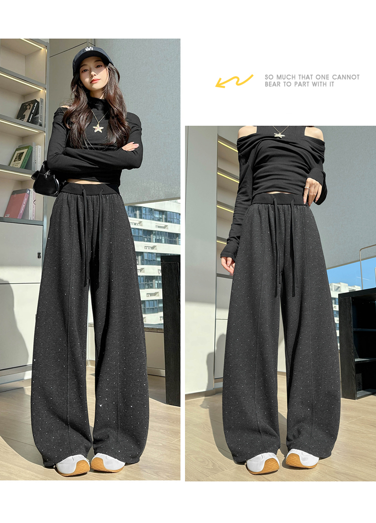 韩系2026春季满天星烫钻弯刀卫裤女裤脚抽绳运动裤阔腿休闲长裤