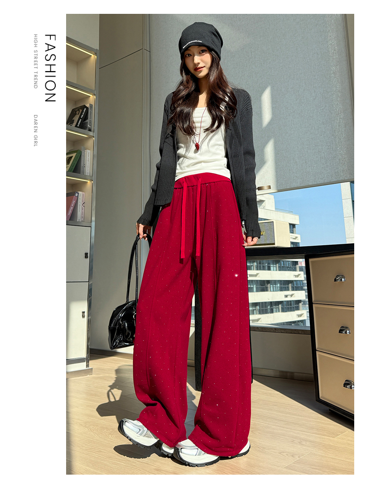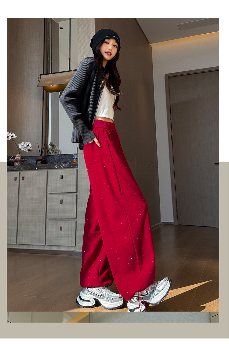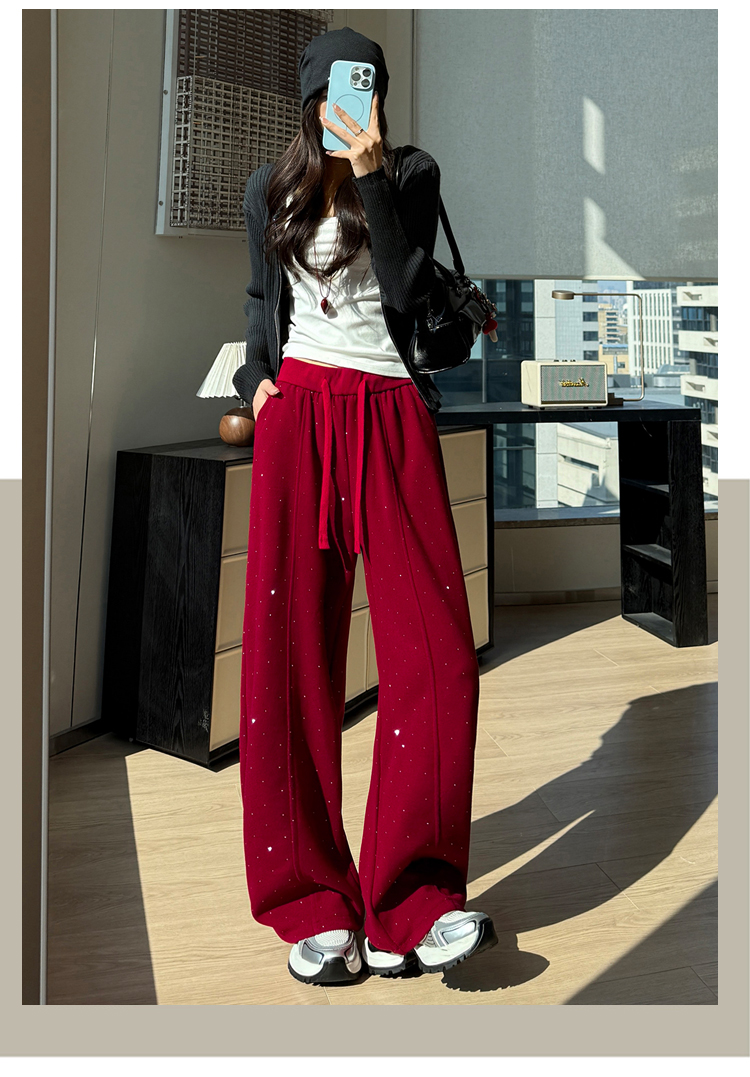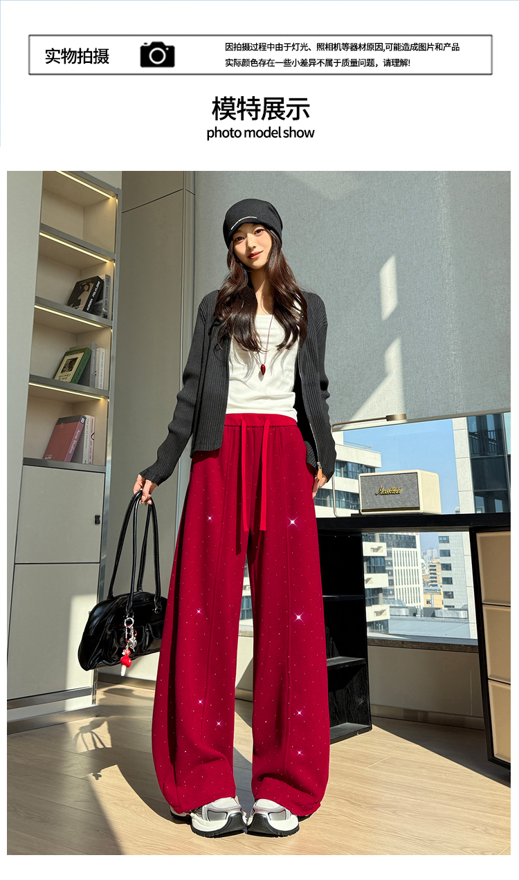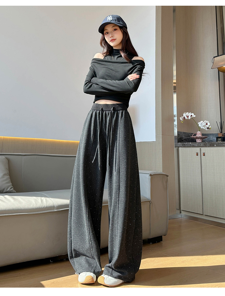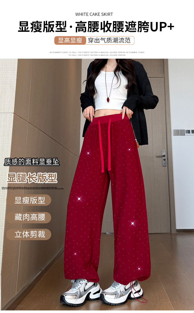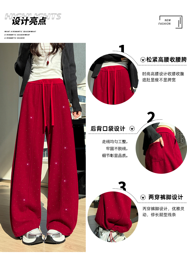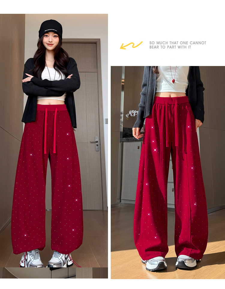 韩系2026春季满天星烫钻弯刀卫裤女裤脚抽绳运动裤阔腿休闲长裤