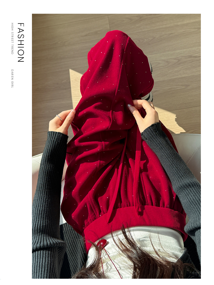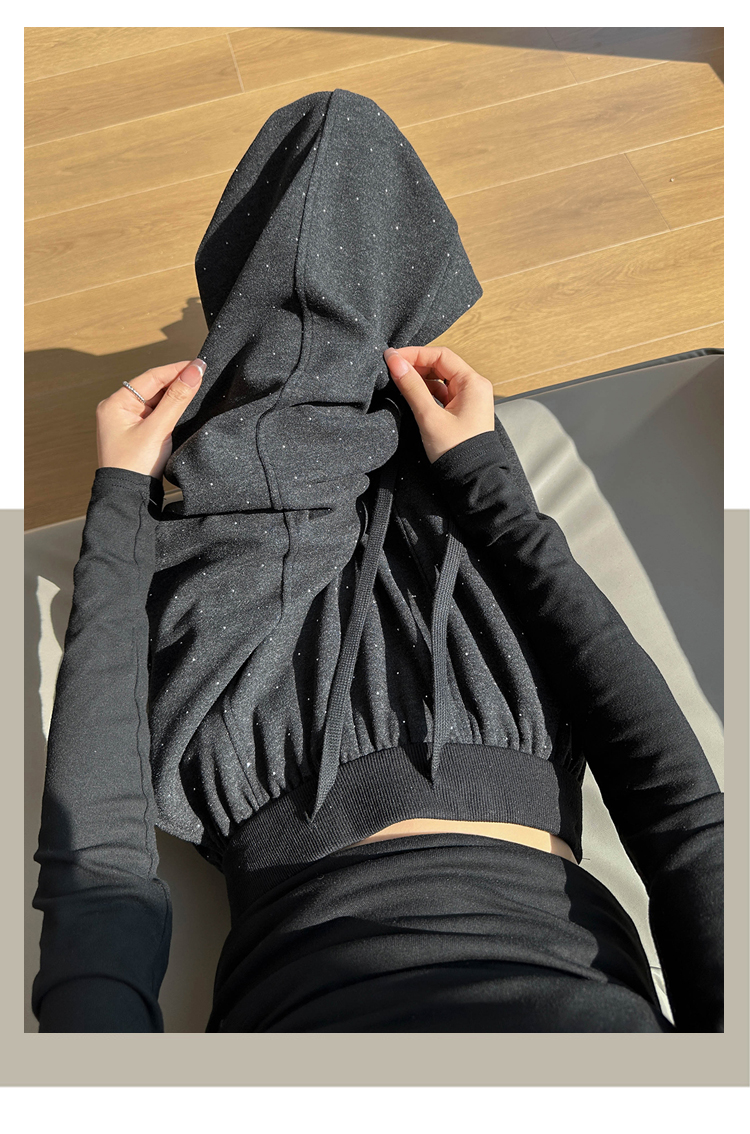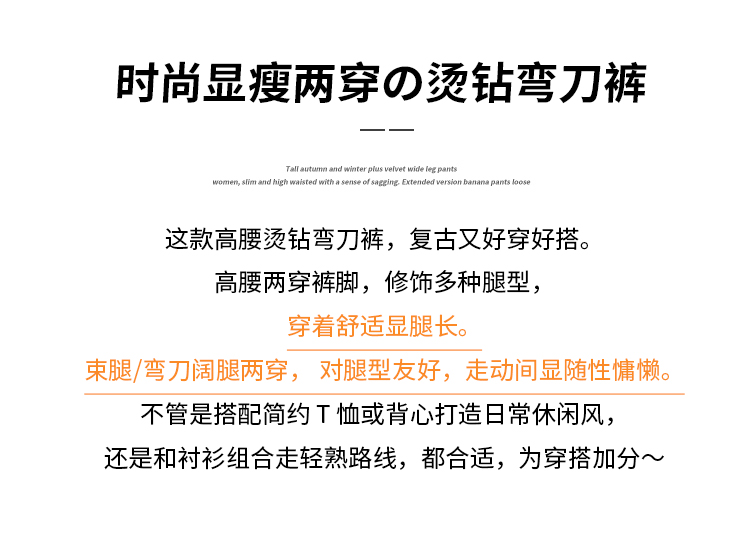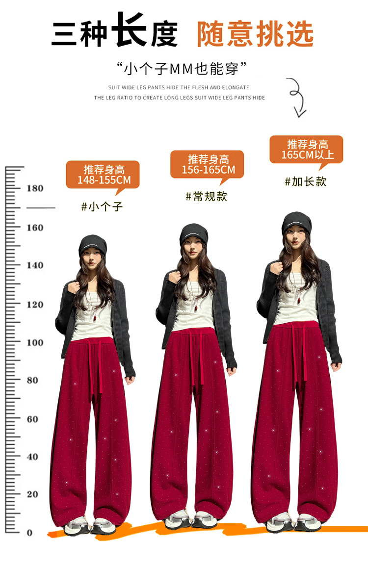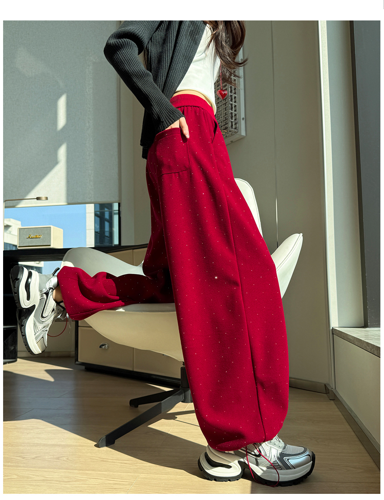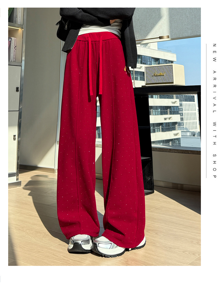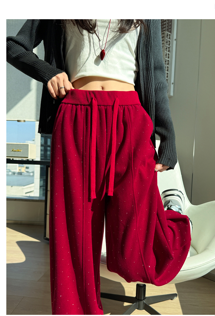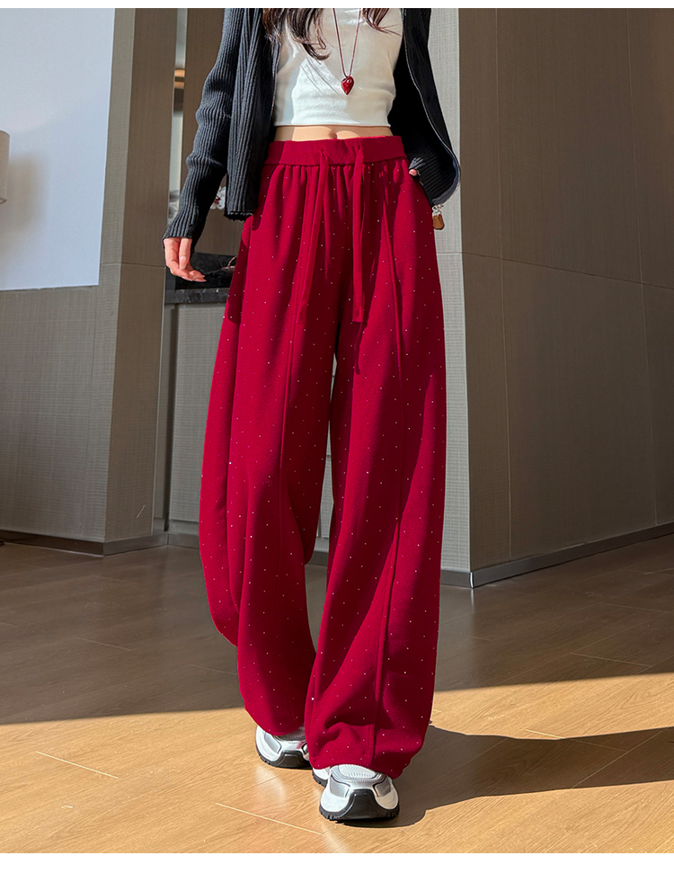 韩系2026春季满天星烫钻弯刀卫裤女裤脚抽绳运动裤阔腿休闲长裤