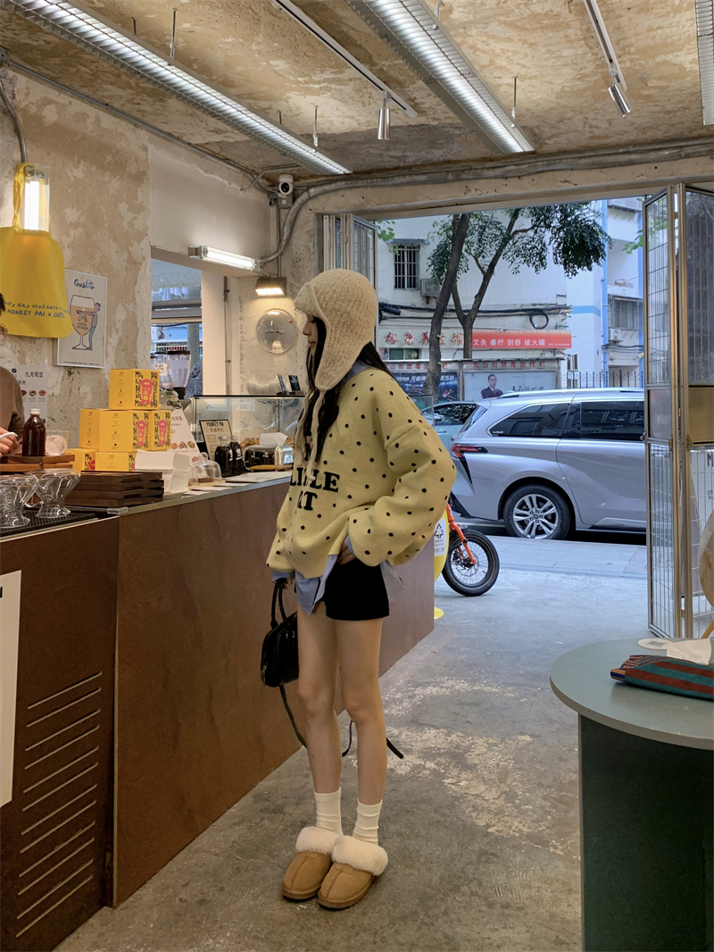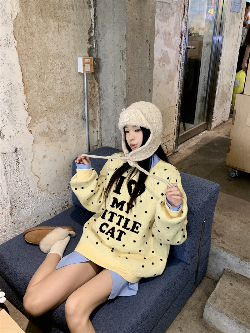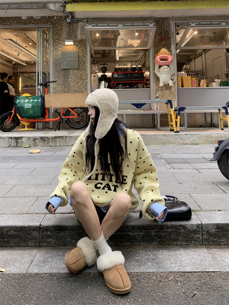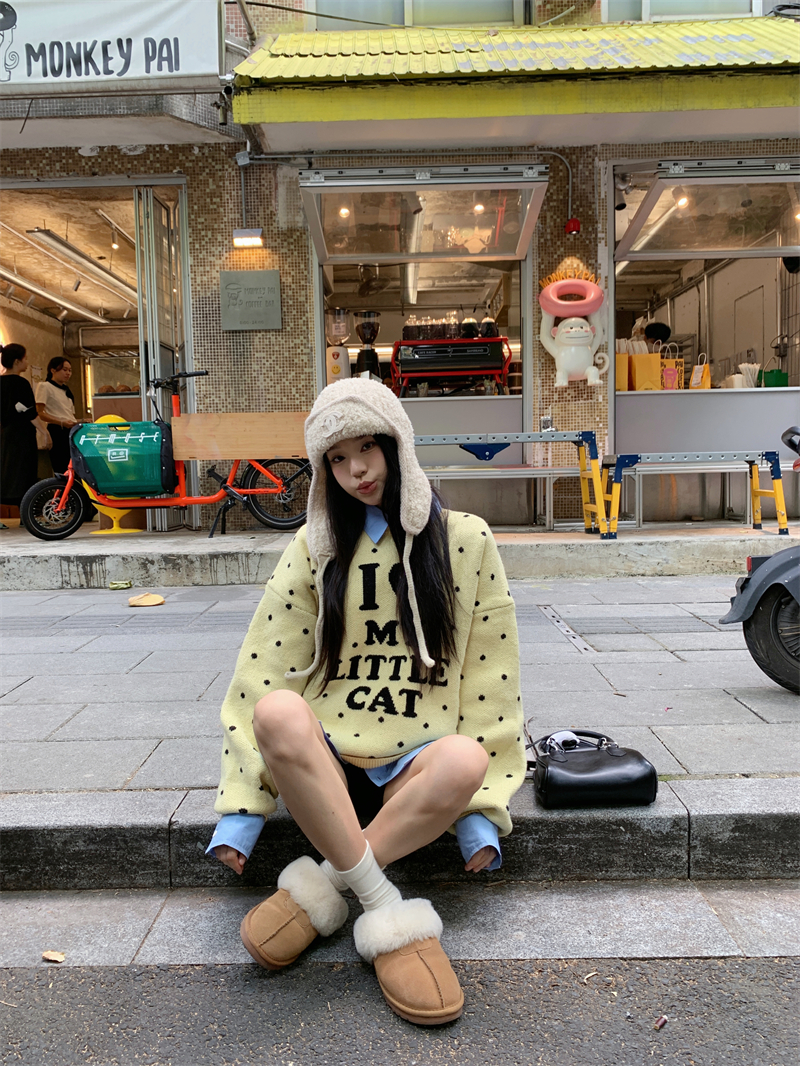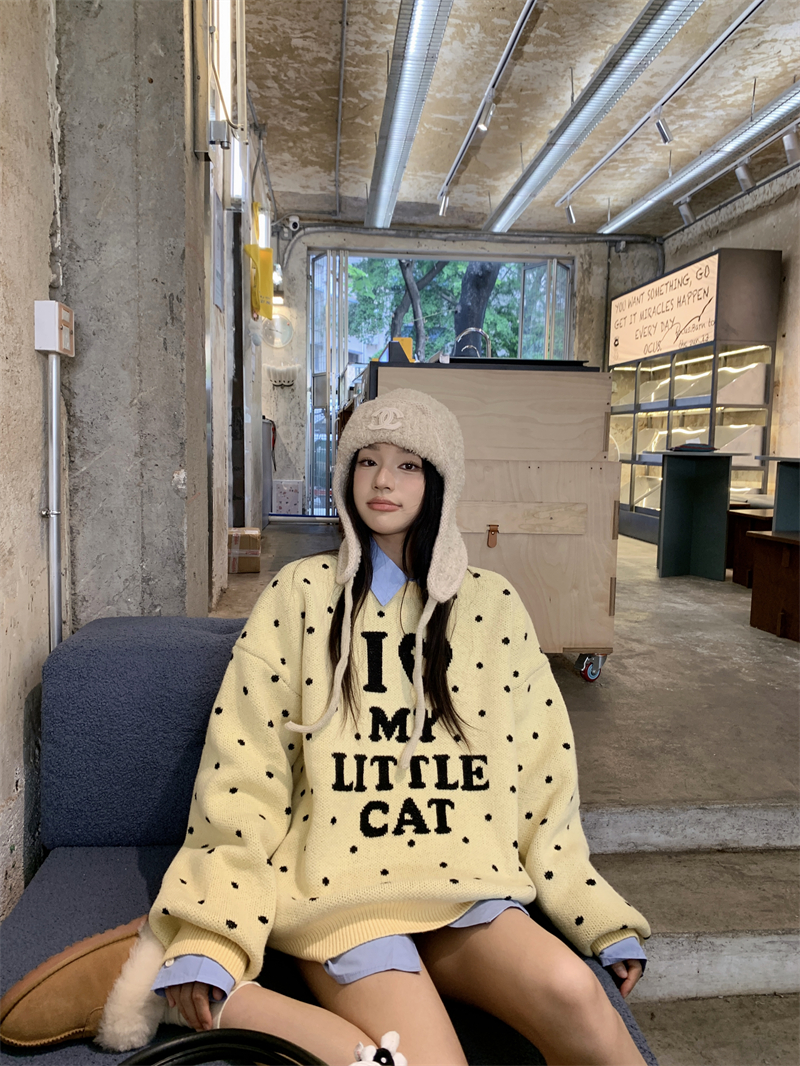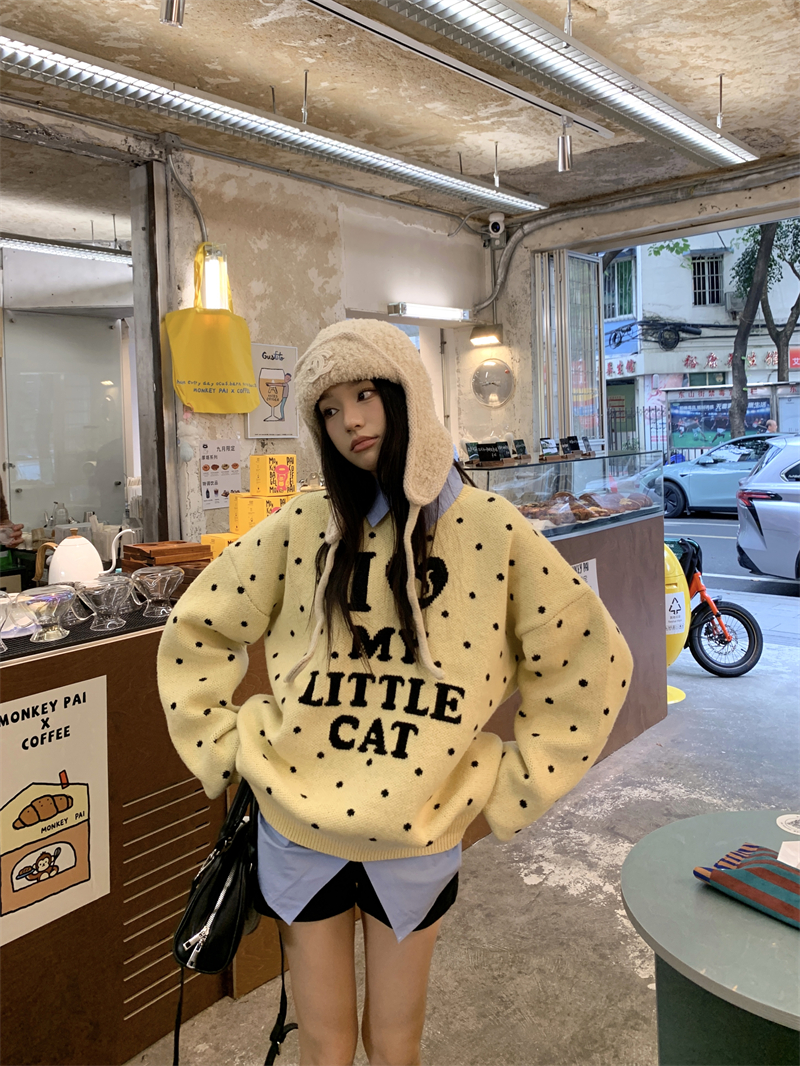现实拍实价 早秋圆领小鸡黄提花毛衣+蓝色衬衫打底