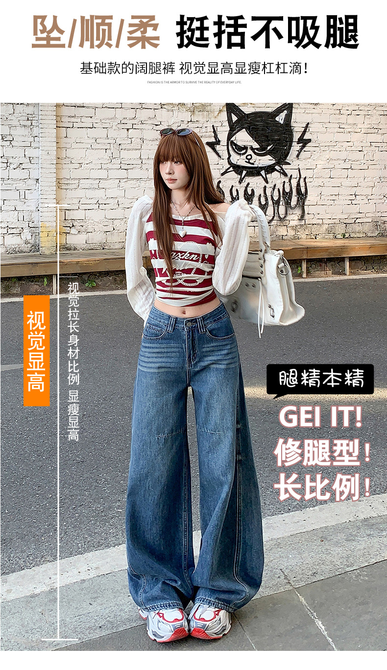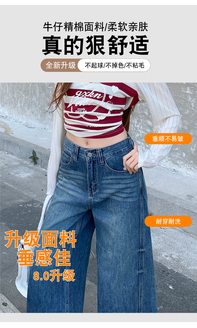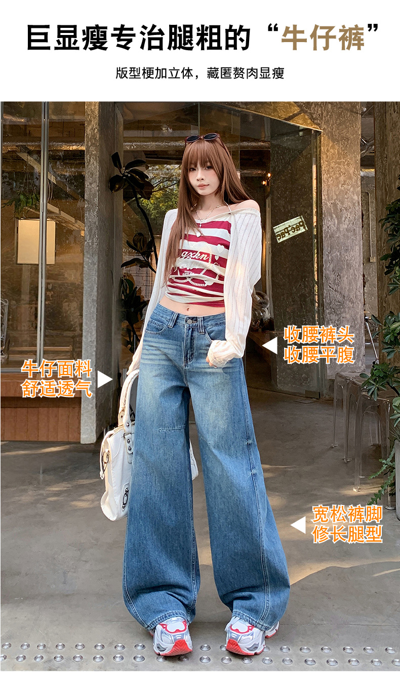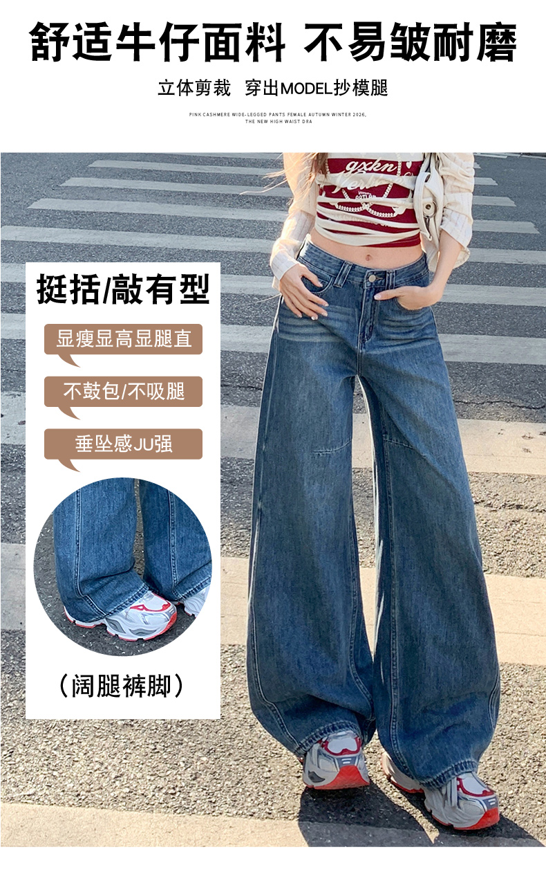 高品质2026春新款复古高腰宽松做旧弯刀直筒阔腿拖地牛仔裤女