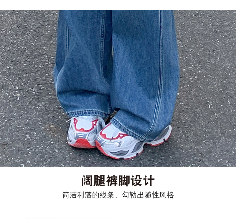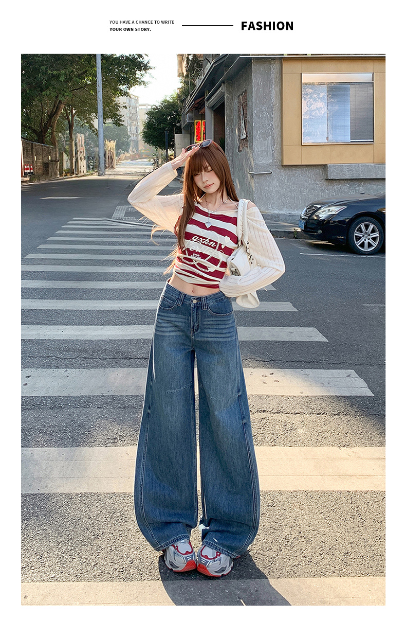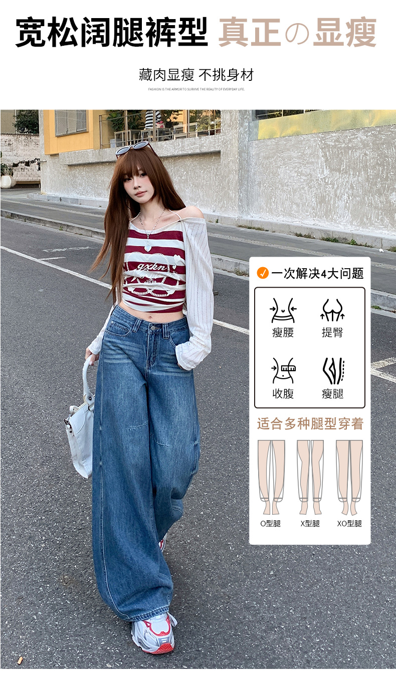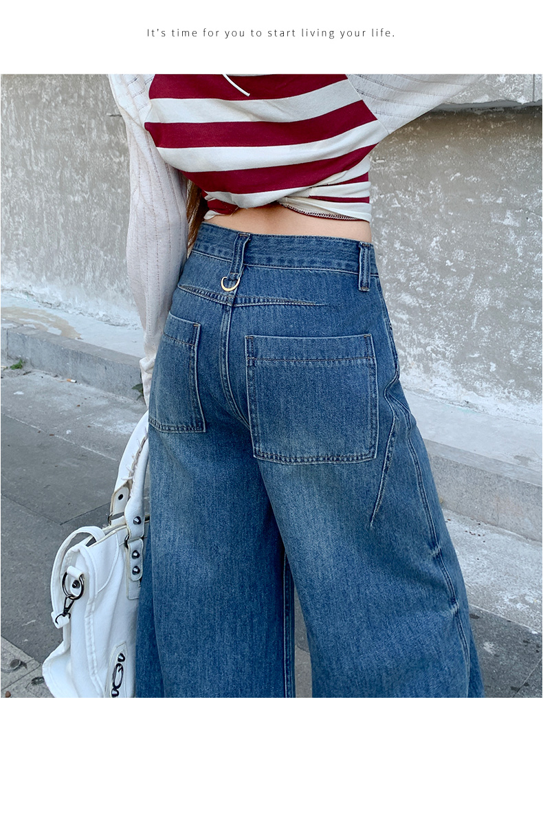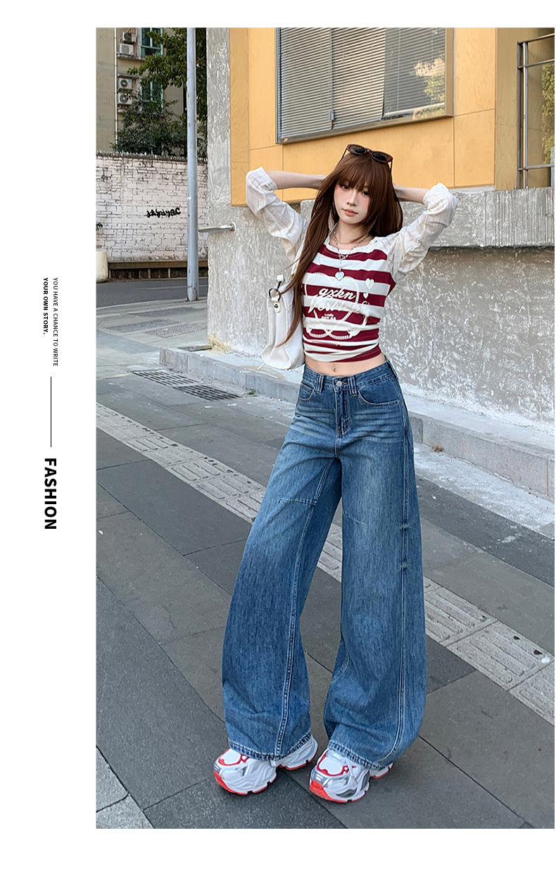 高品质2026春新款复古高腰宽松做旧弯刀直筒阔腿拖地牛仔裤女