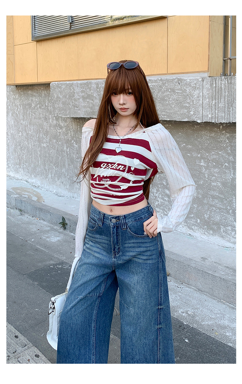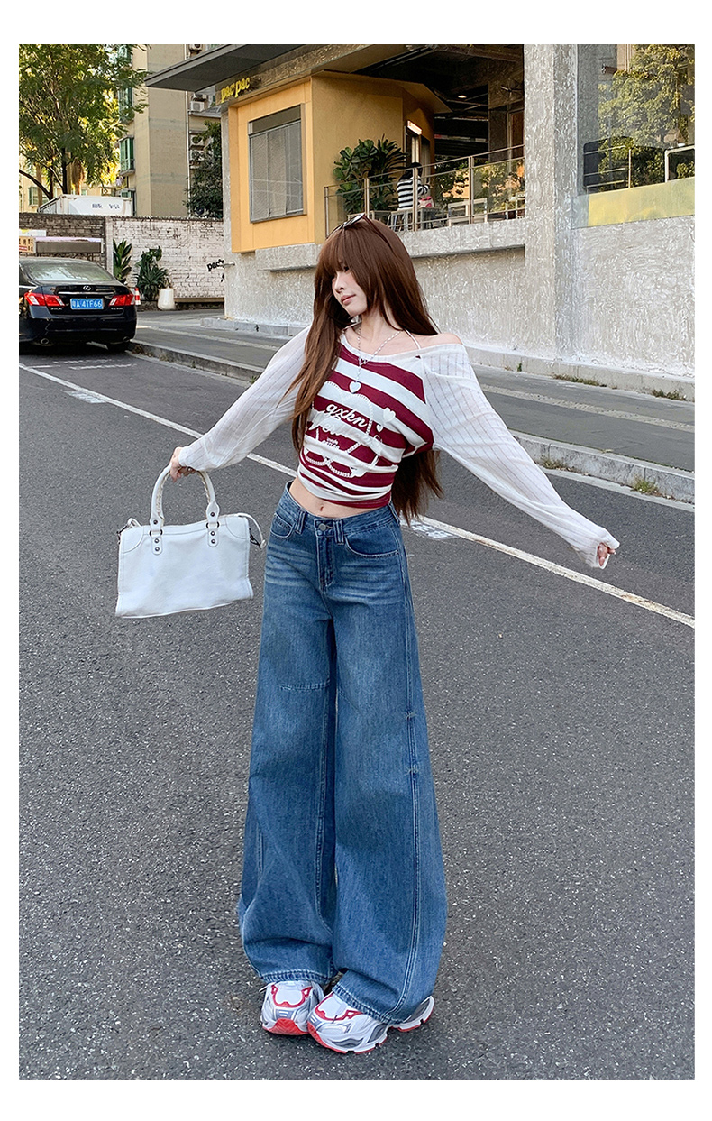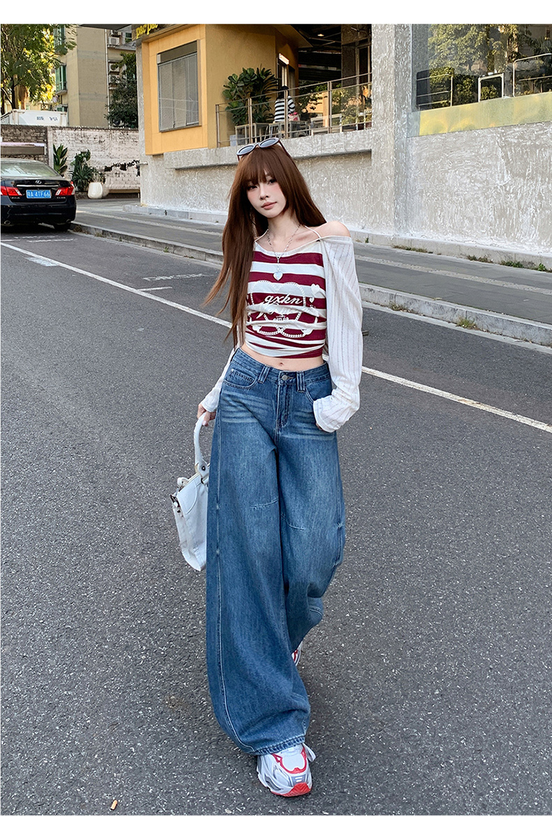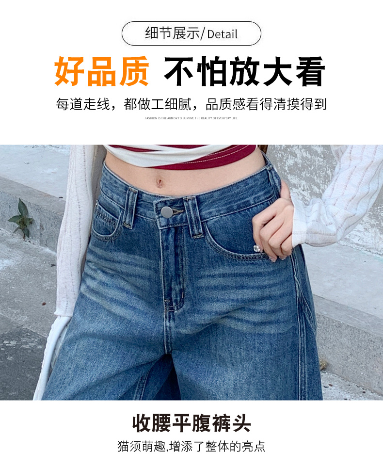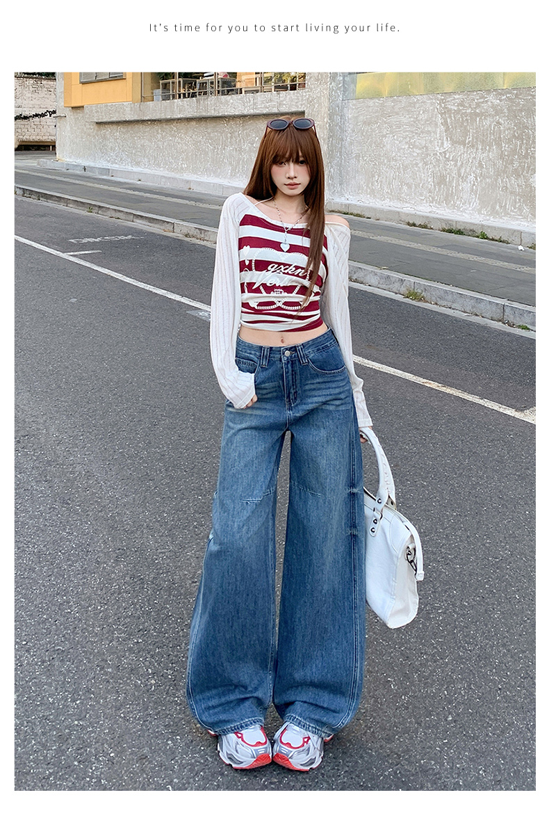 高品质2026春新款复古高腰宽松做旧弯刀直筒阔腿拖地牛仔裤女