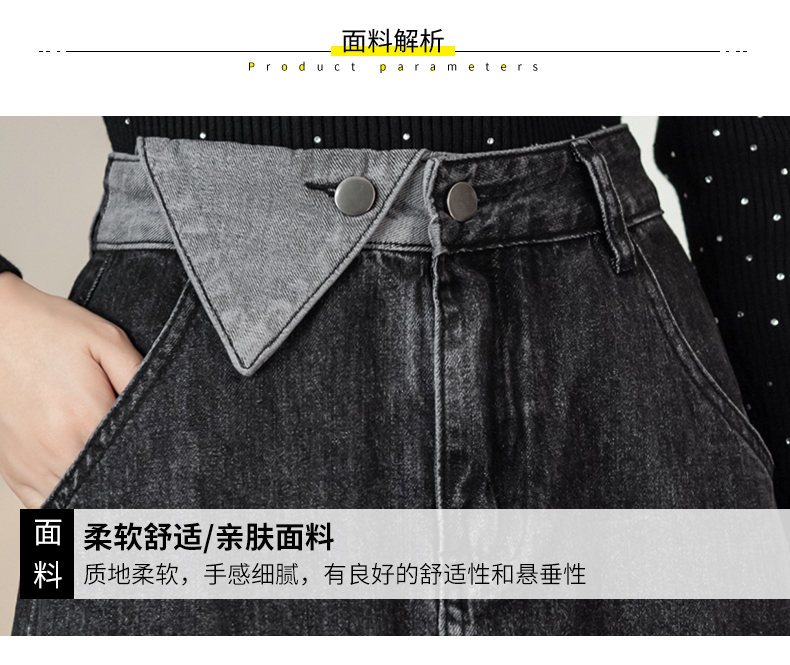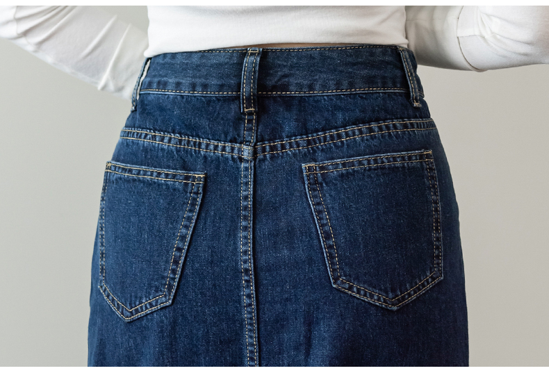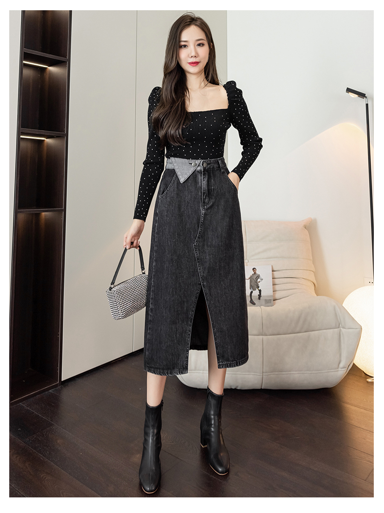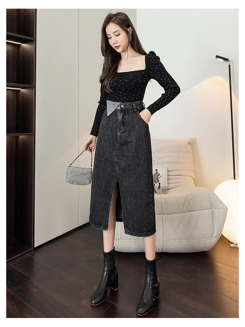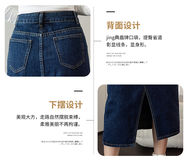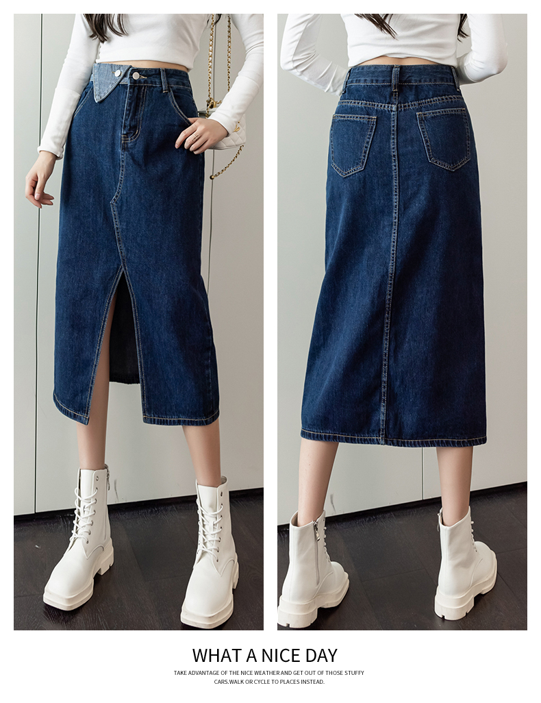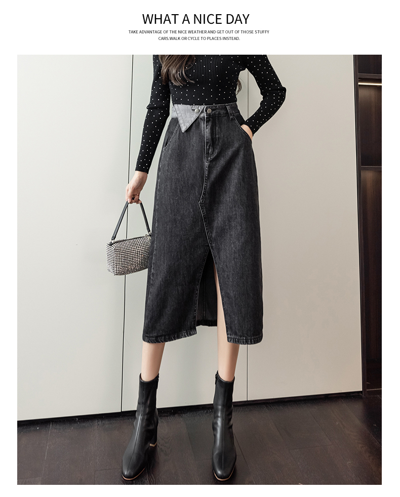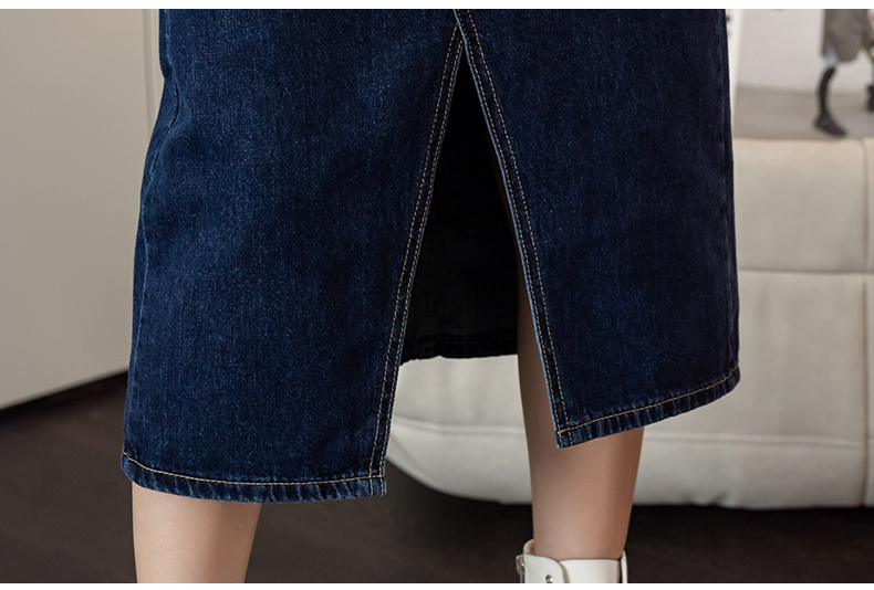 撞色包臀牛仔裙女2026春季新款韩版百搭双扣高腰小个子开叉中长裙