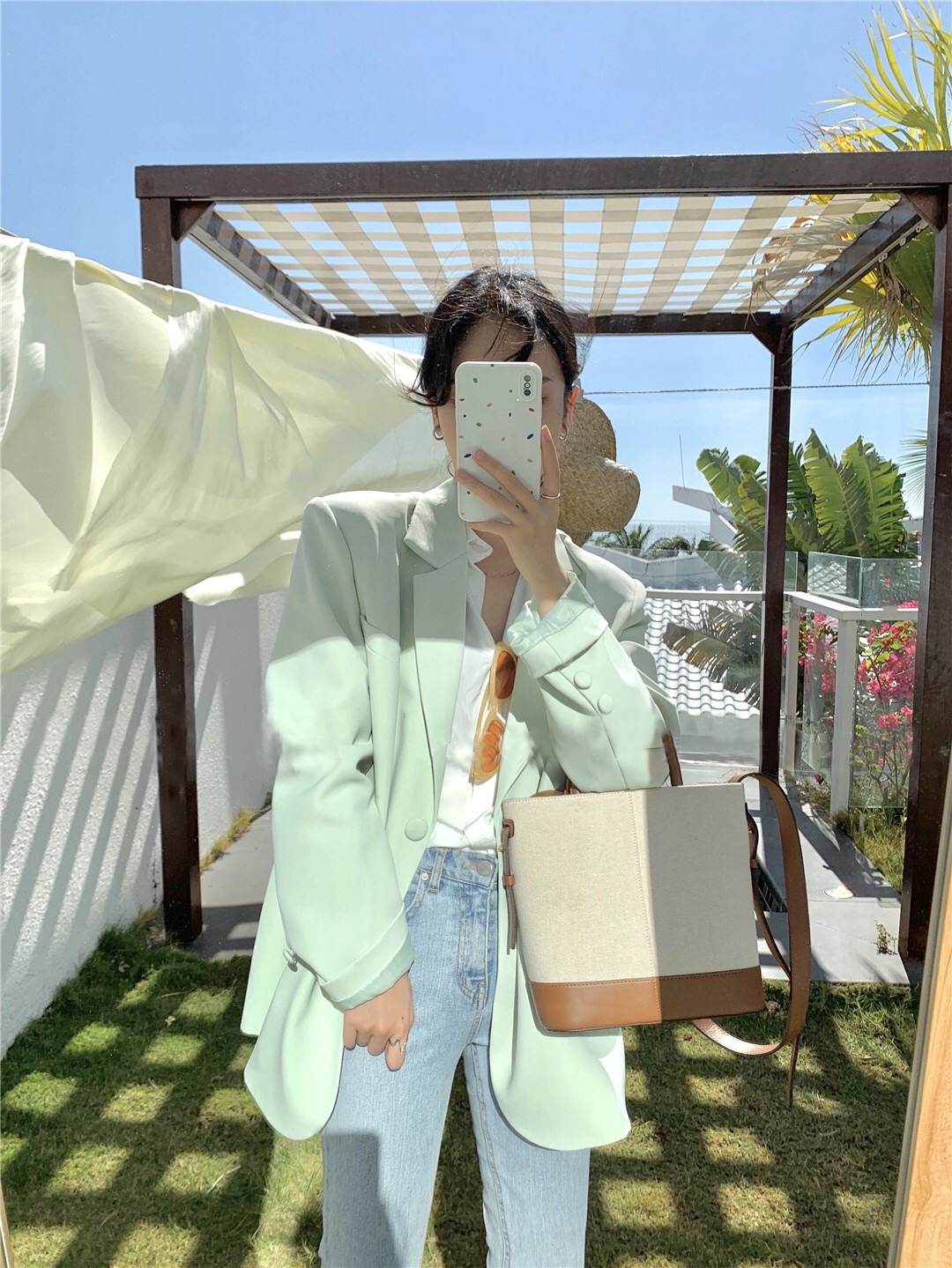 韩版新款2026年春秋季韩风ins风宽松薄荷绿西装外套女