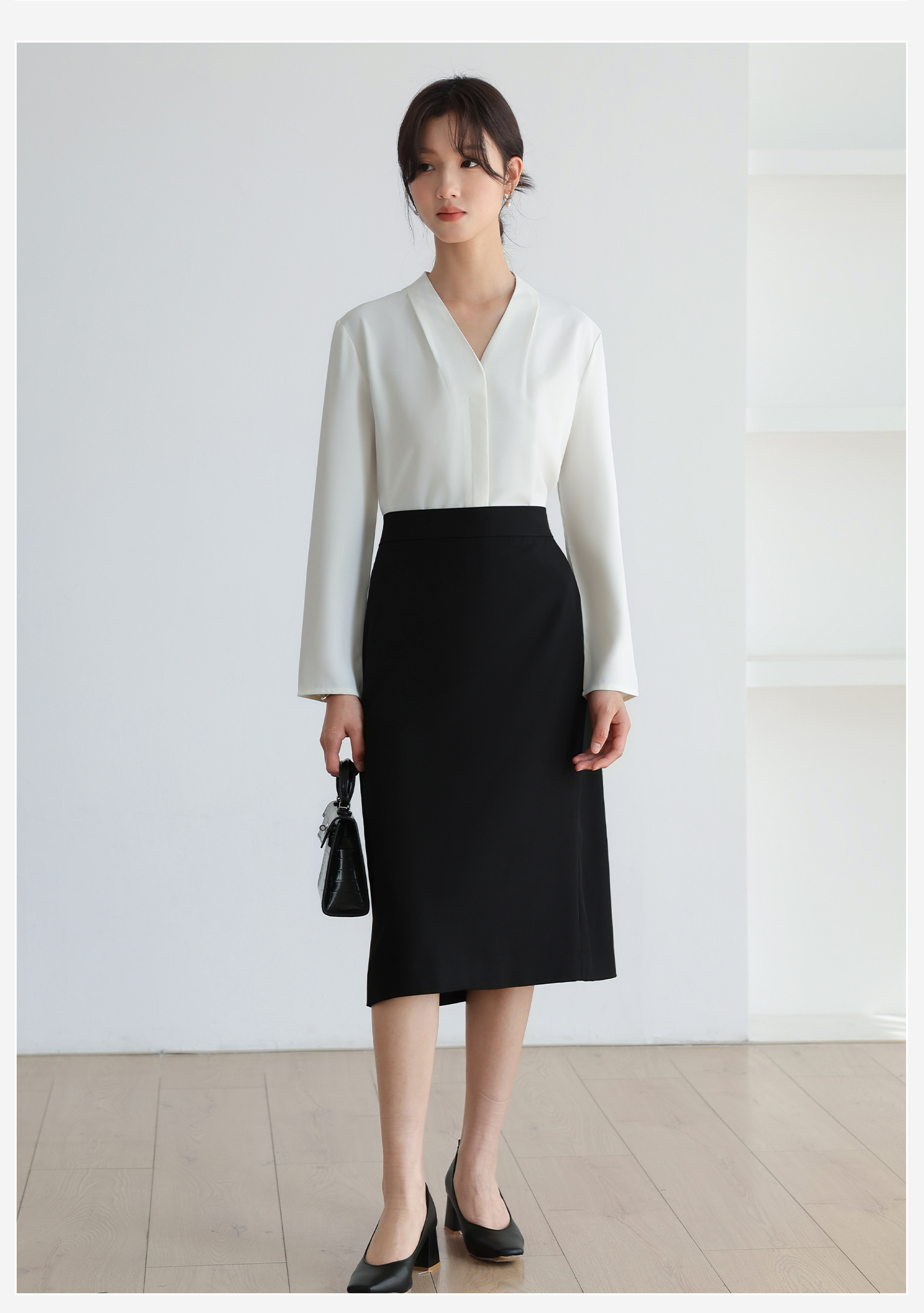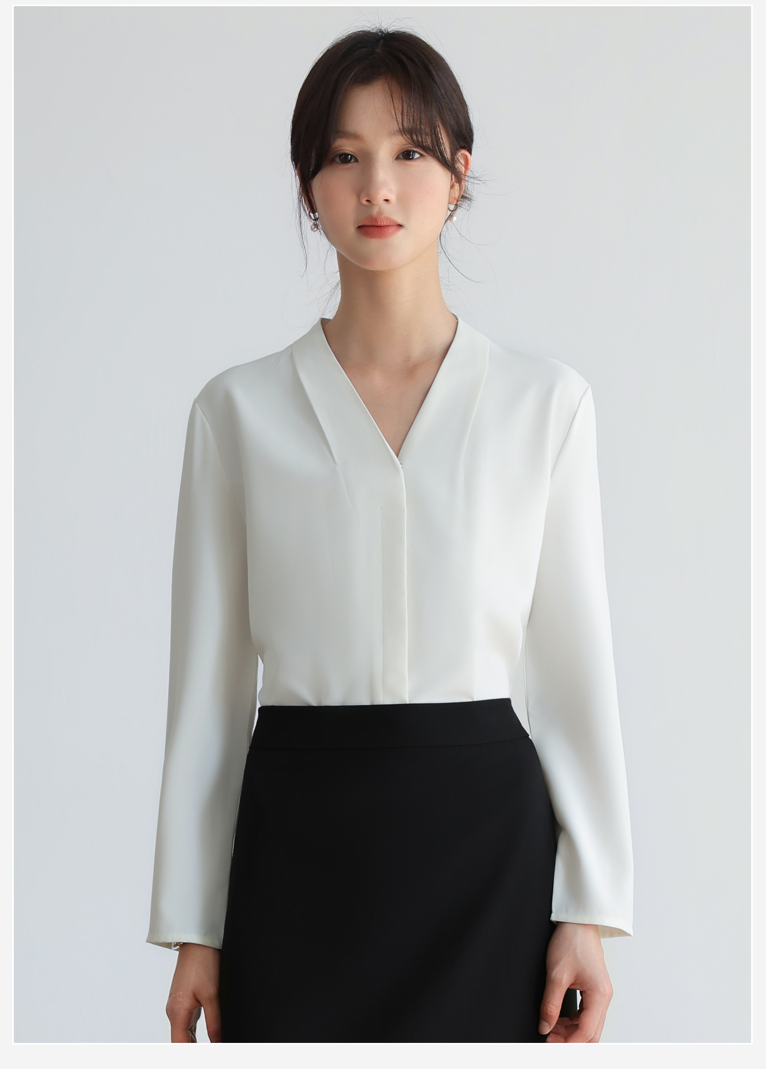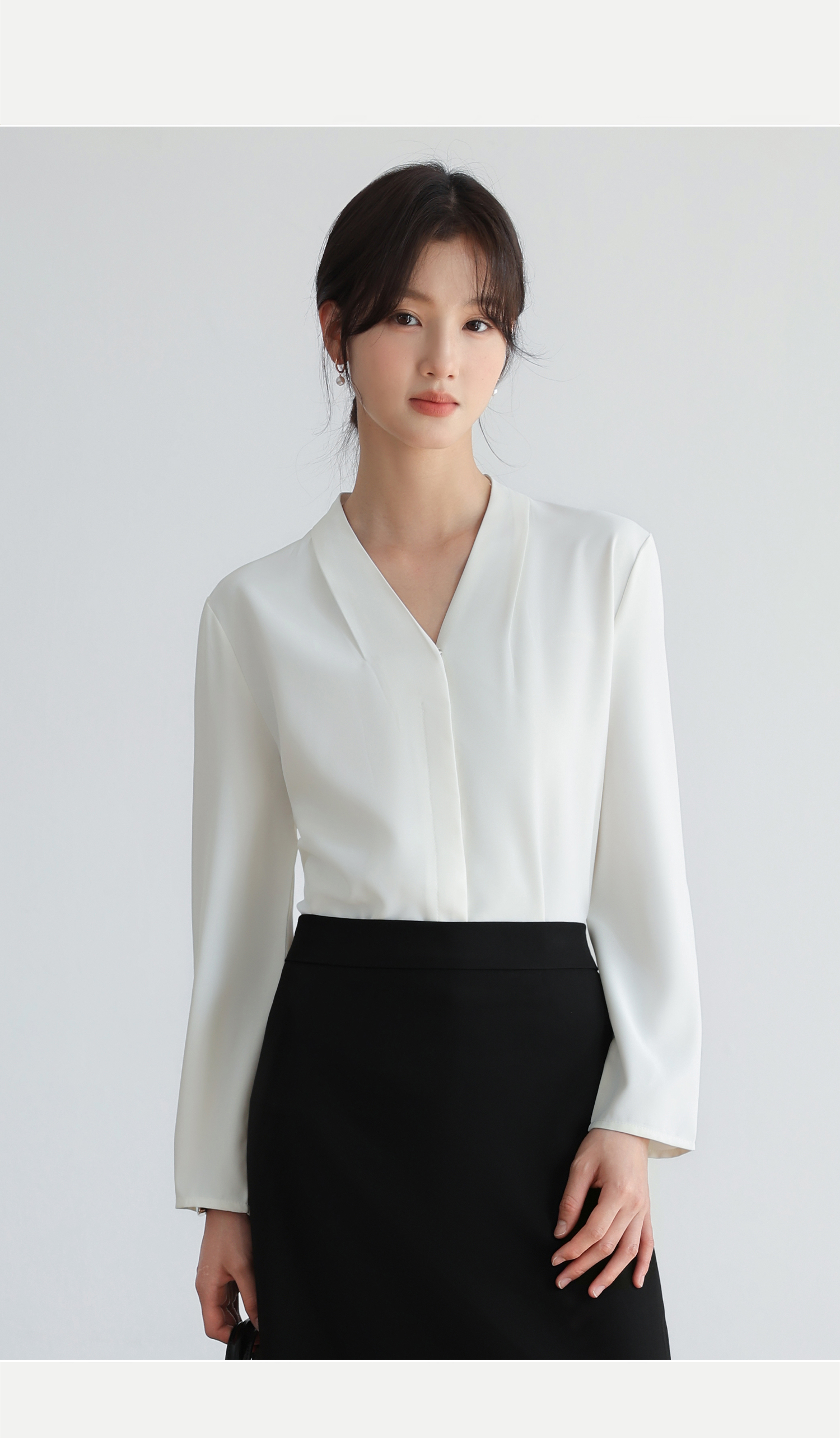 2026实拍新款轻熟V领法式长袖衬衫女春秋职业面试公务员正装女