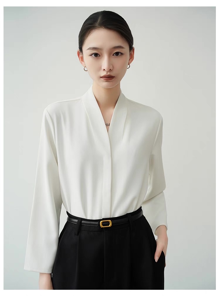 V领简约设计感衬衫百搭通勤干练个性上衣韩版衬衣