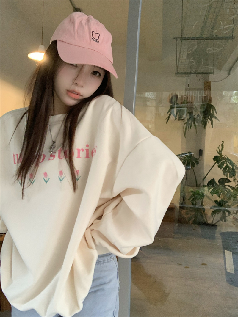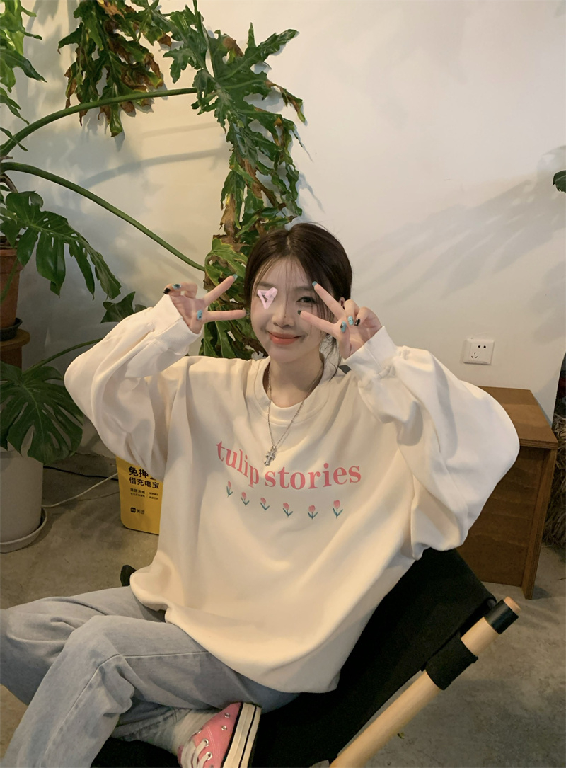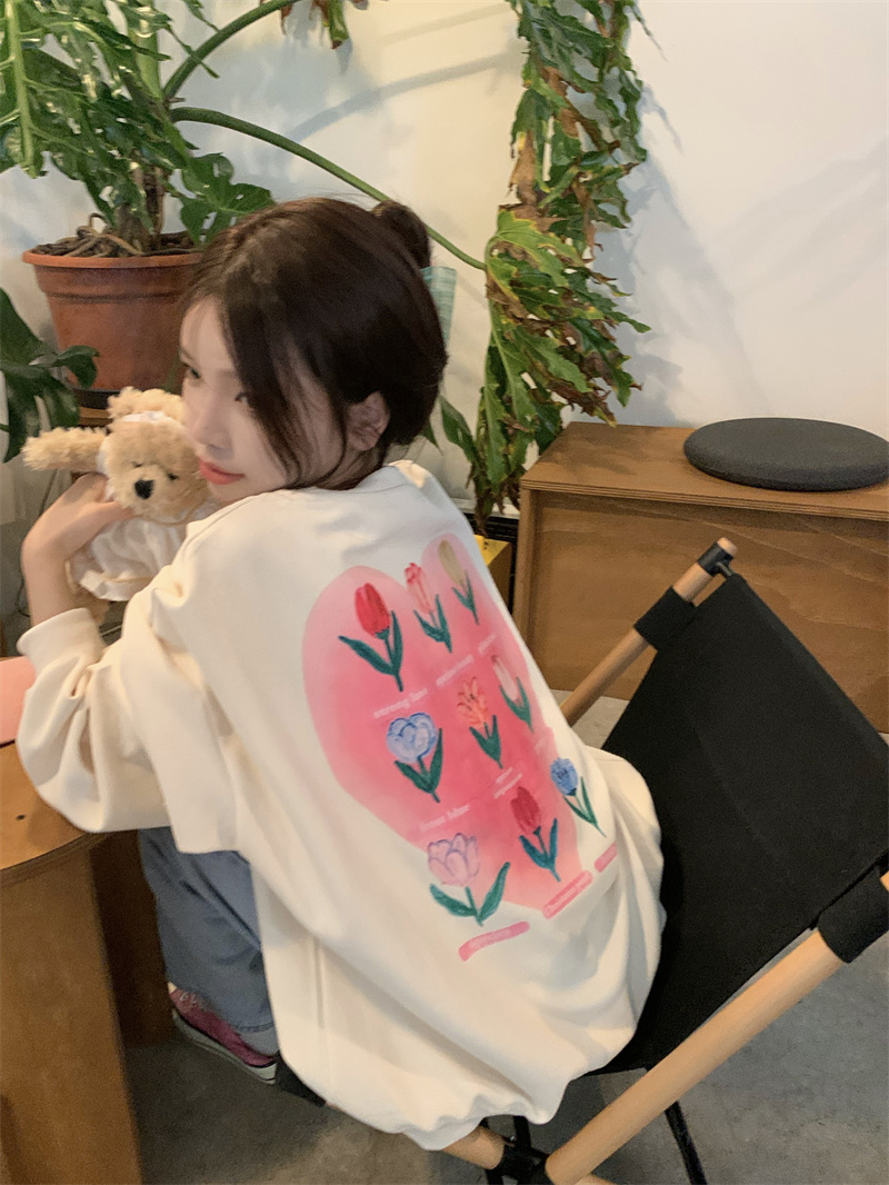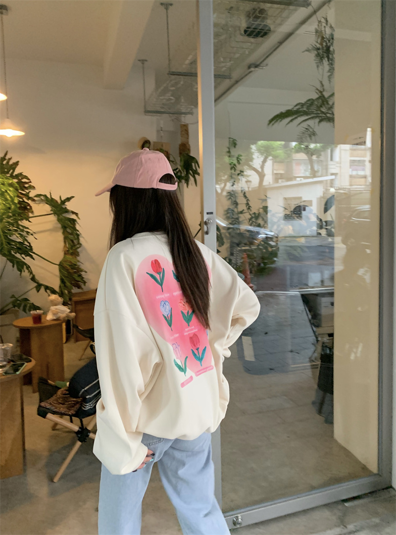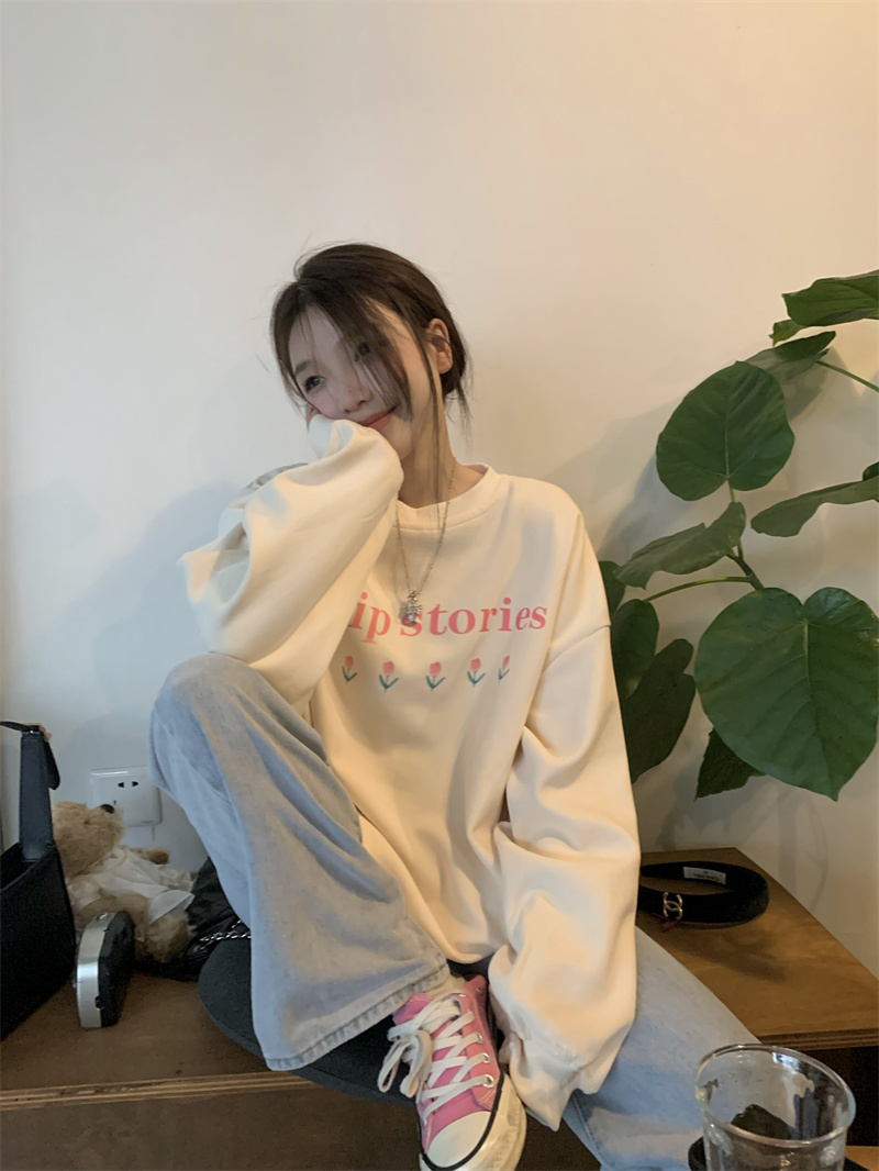 慵懒风花朵套头冬季新款宽松显瘦BF风设计感长袖上衣