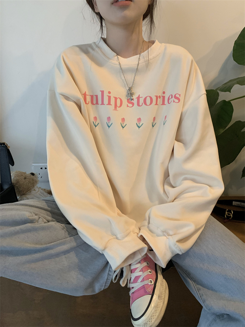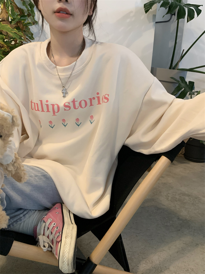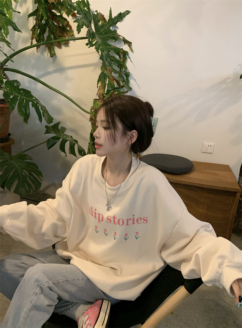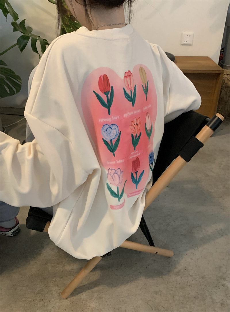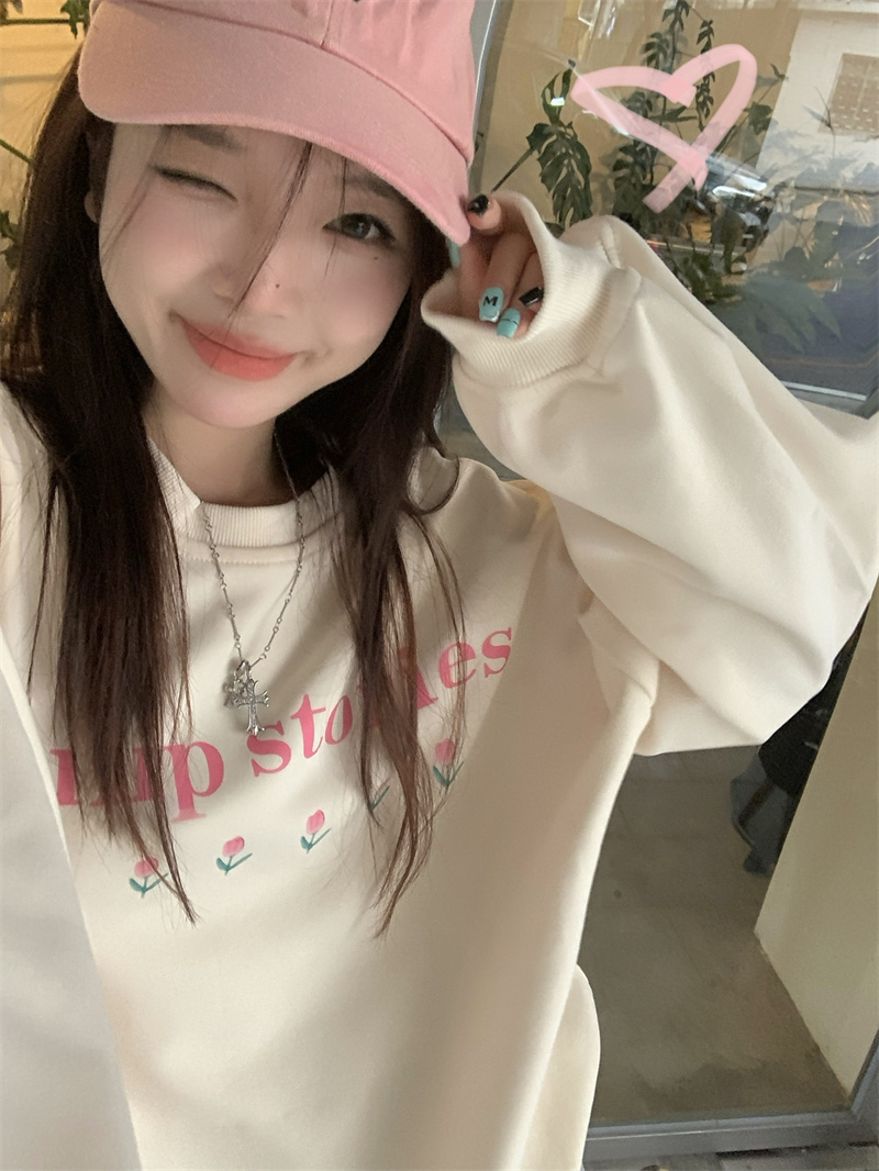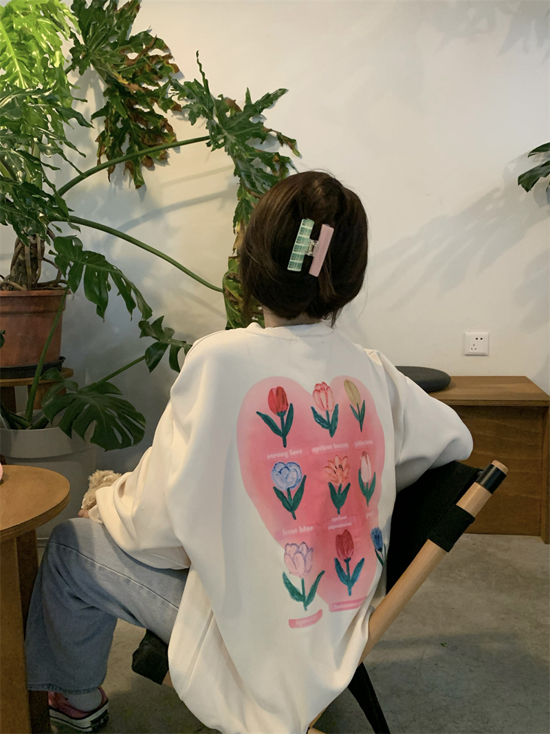 慵懒风花朵套头冬季新款宽松显瘦BF风设计感长袖上衣