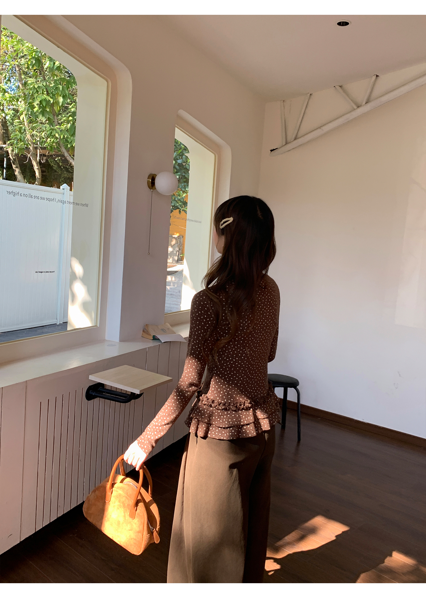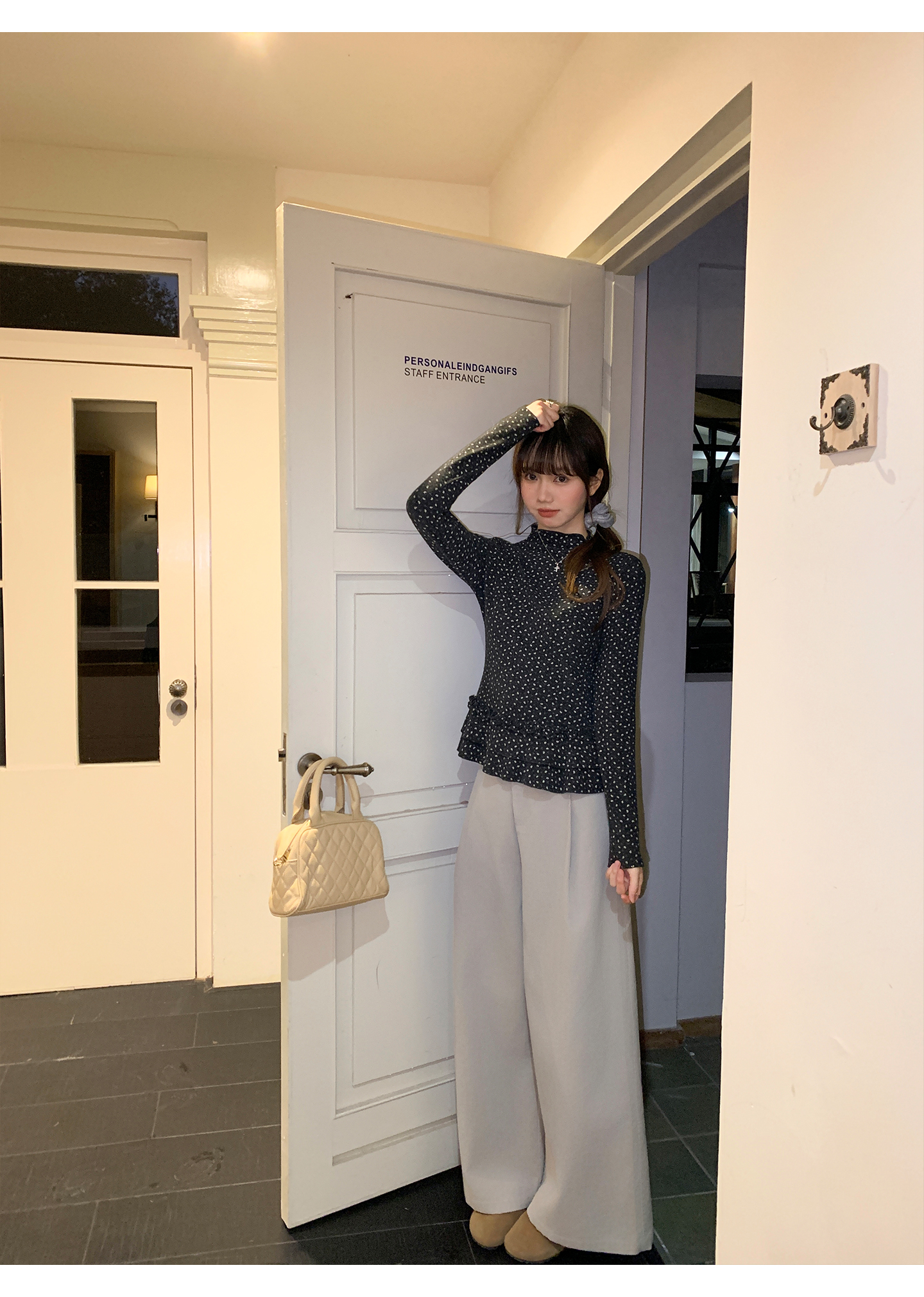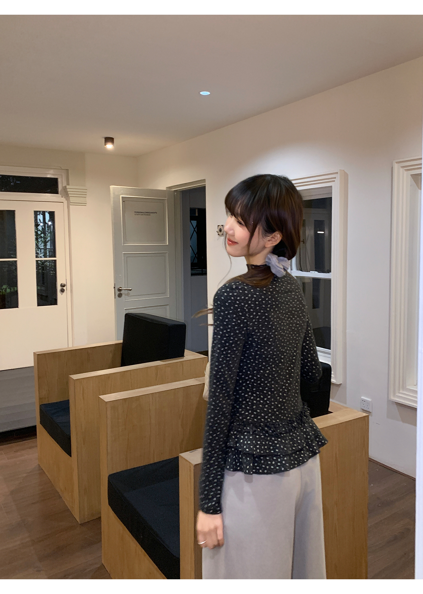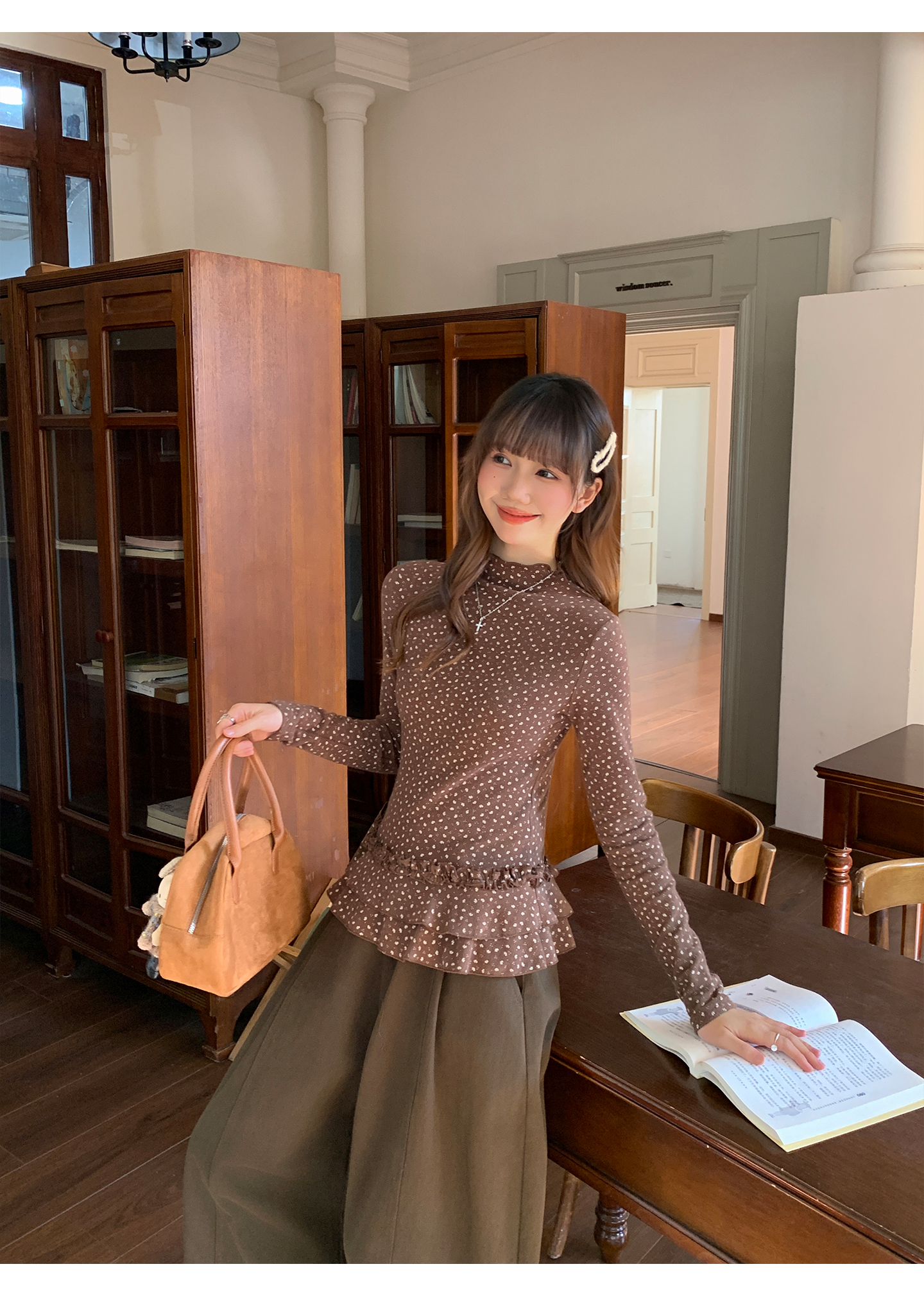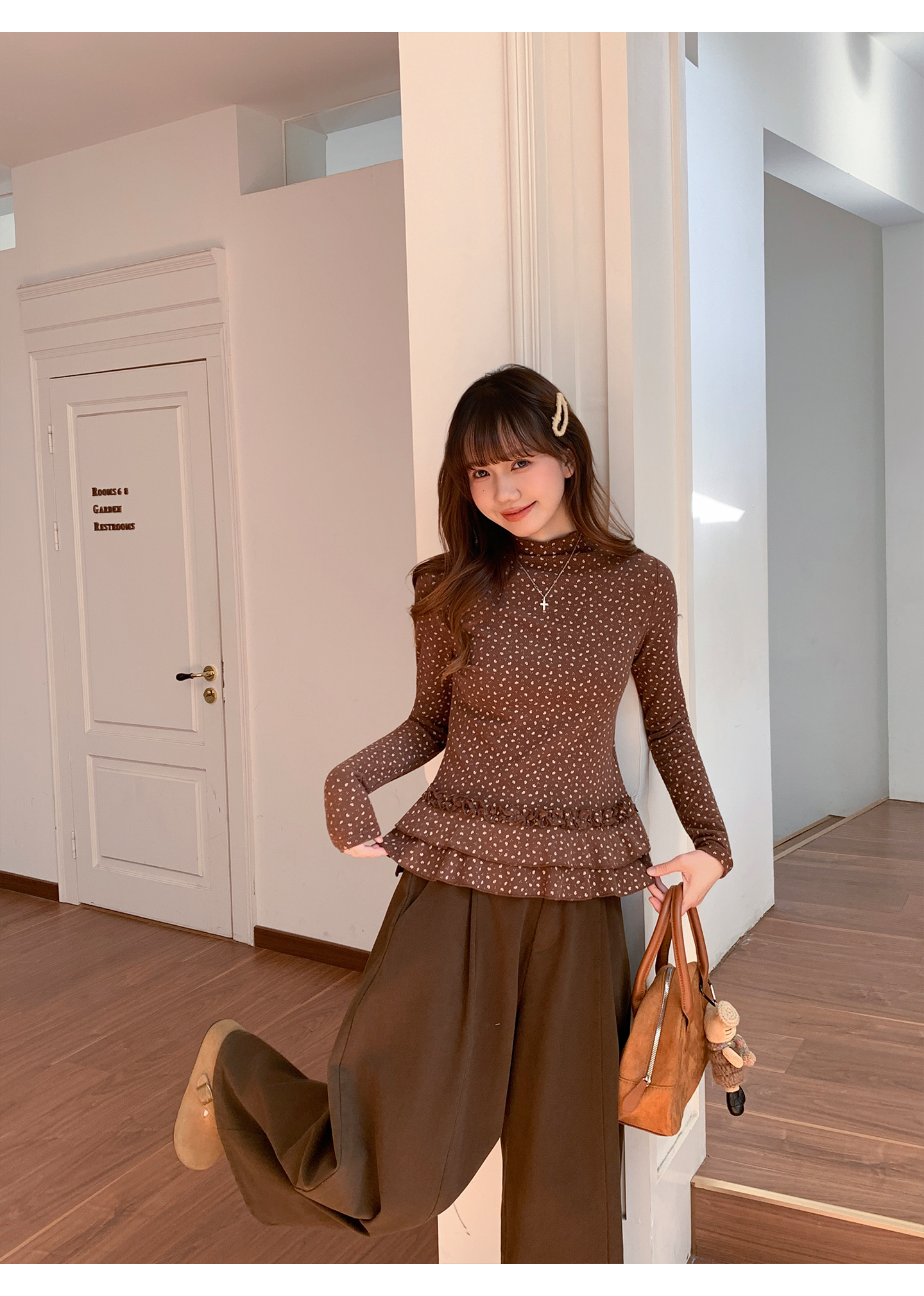实拍实价#碎花半高领打底衫女外磨毛2026春冬长袖t恤拼接下摆花边