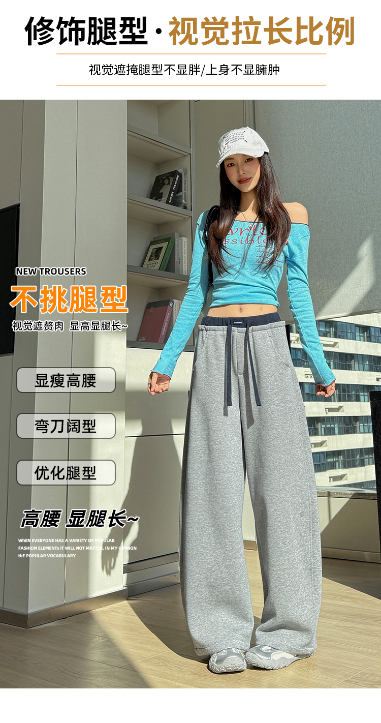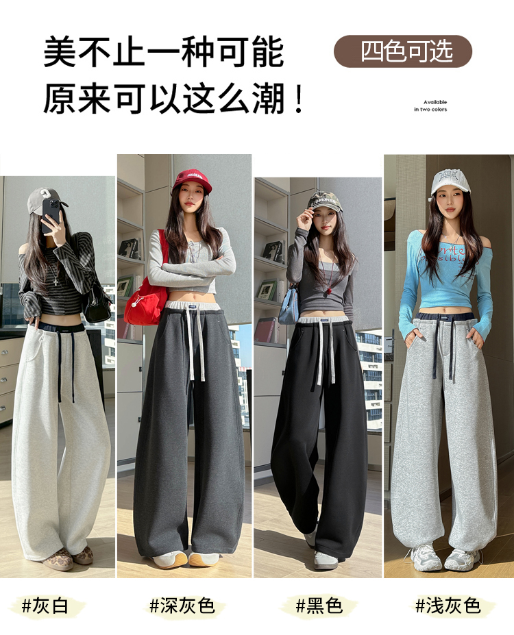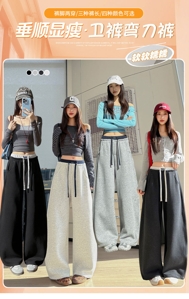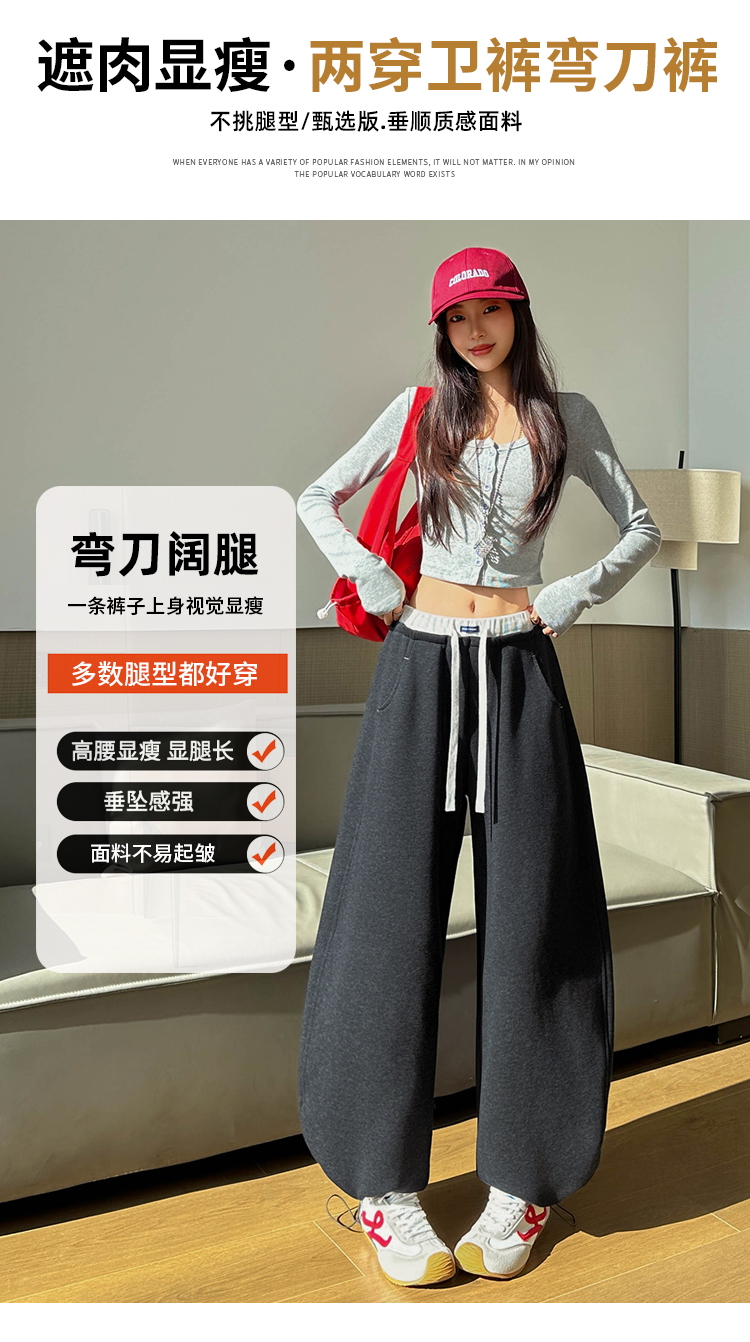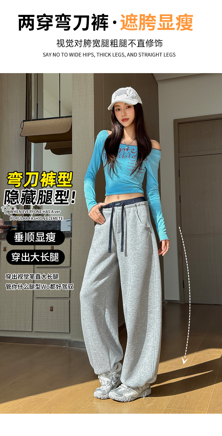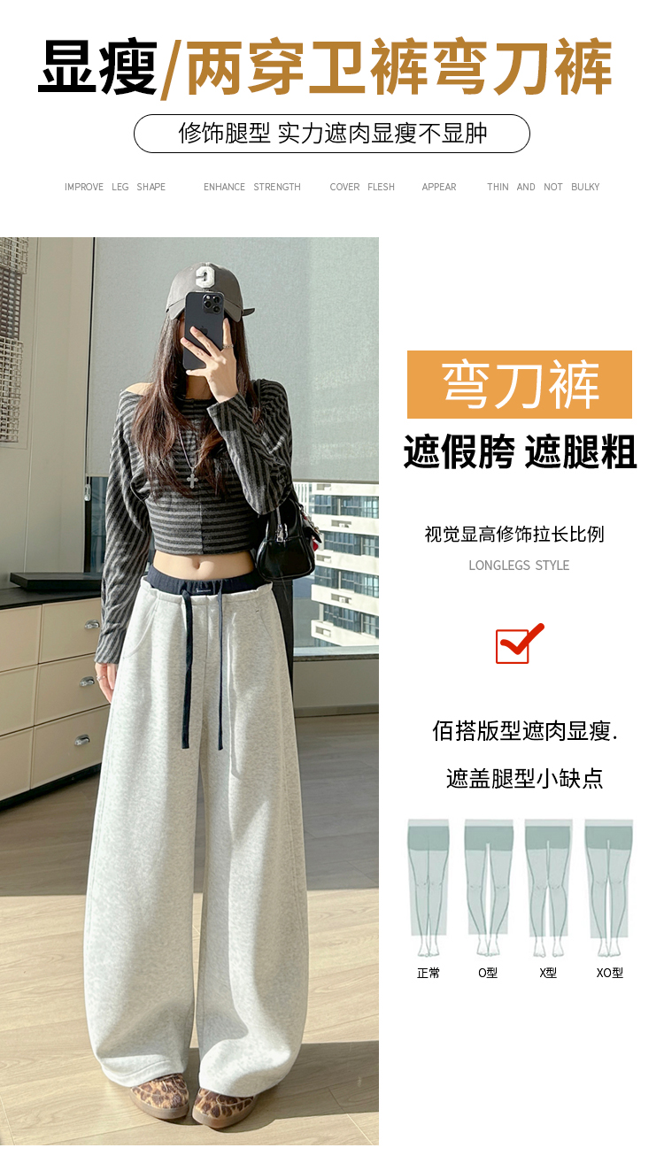 灰色慵懒风运动弯刀裤女2026新款春款宽松显瘦小个子休闲阔腿裤子