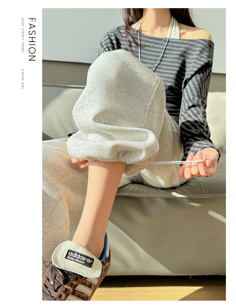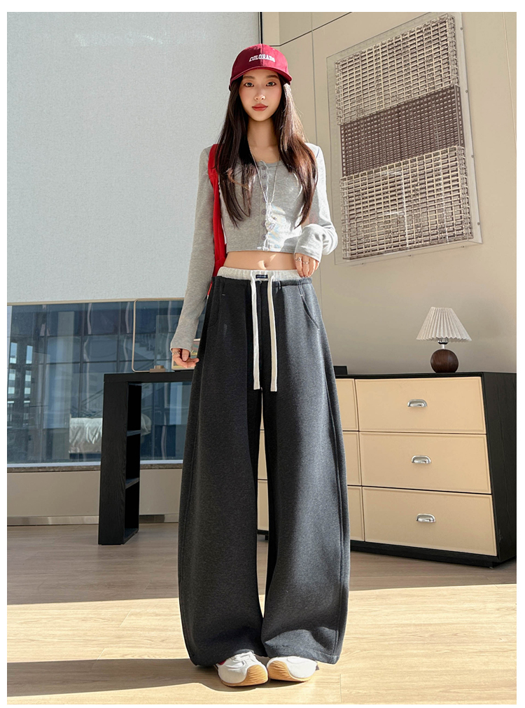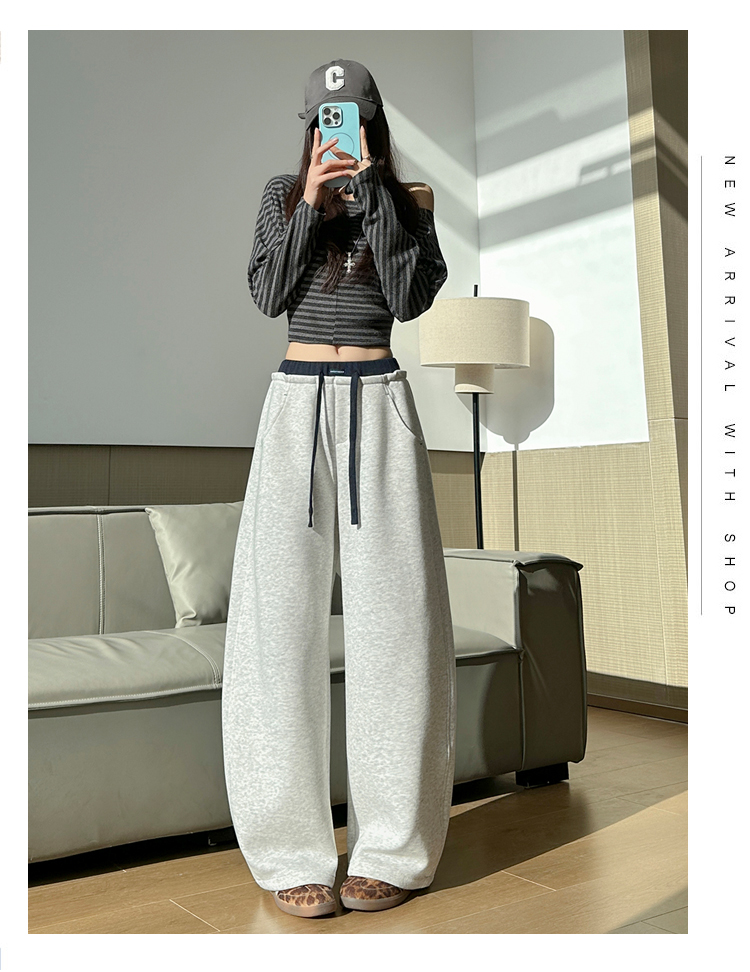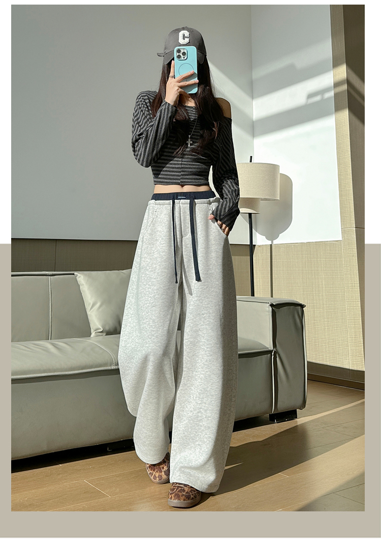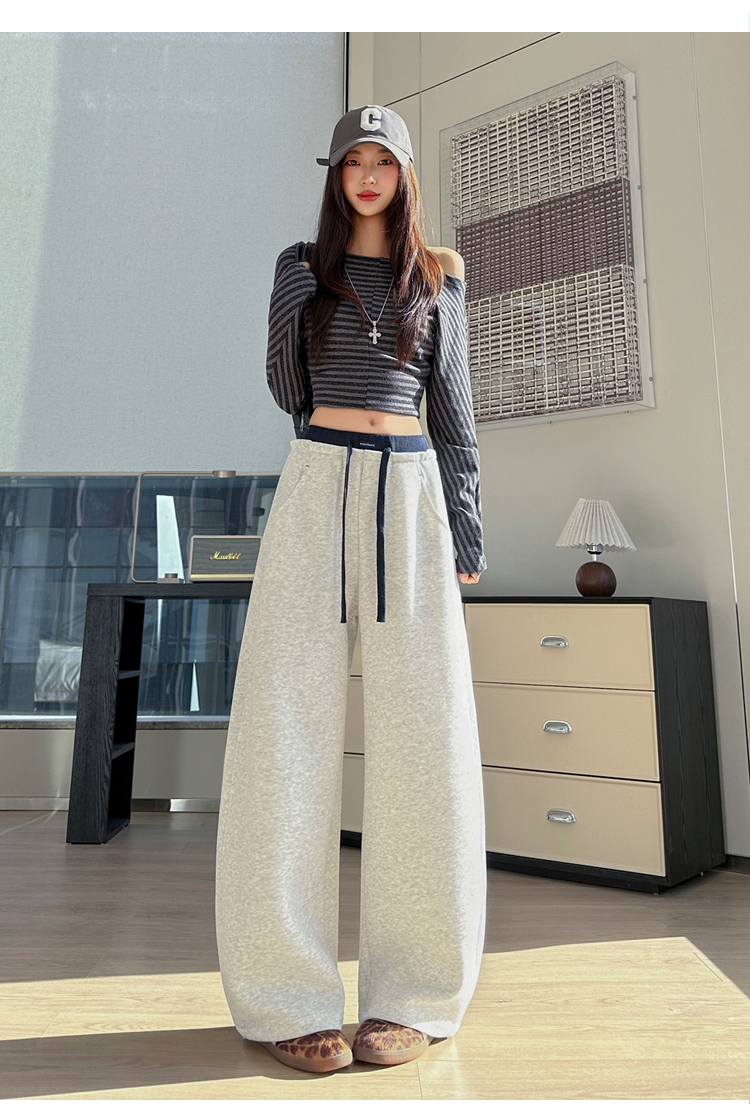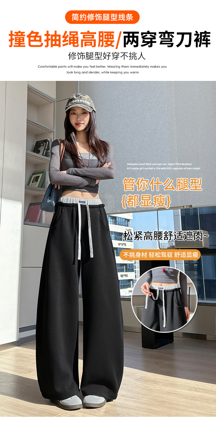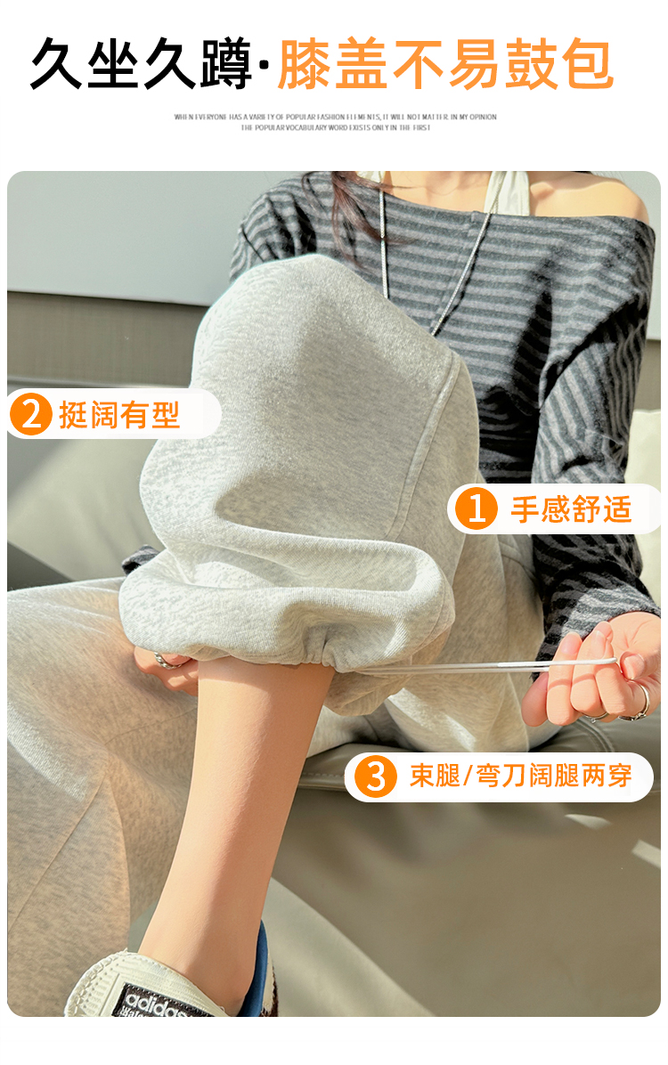 灰色慵懒风运动弯刀裤女2026新款春款宽松显瘦小个子休闲阔腿裤子