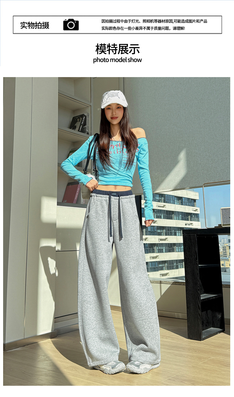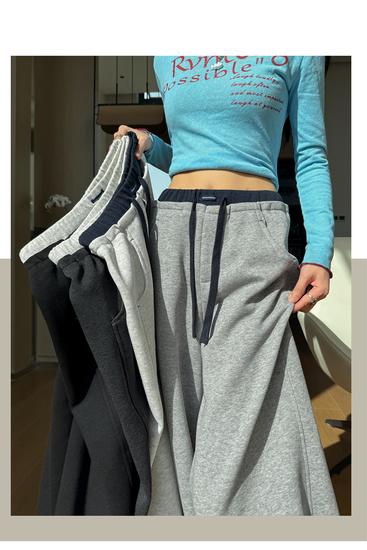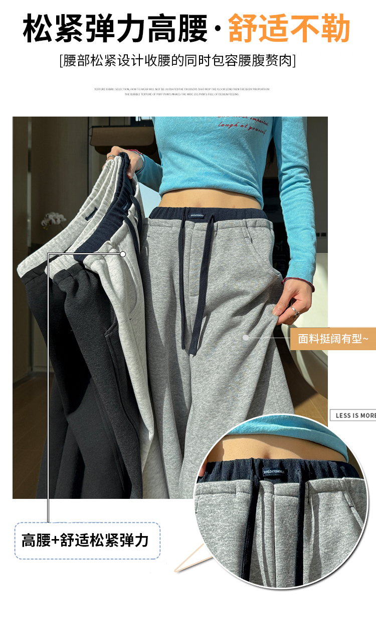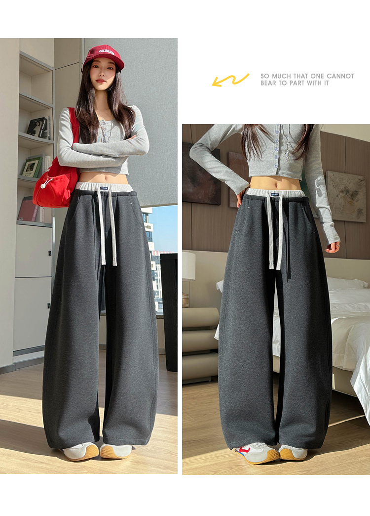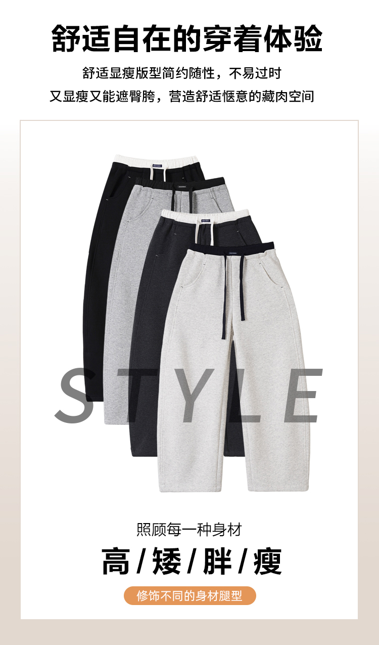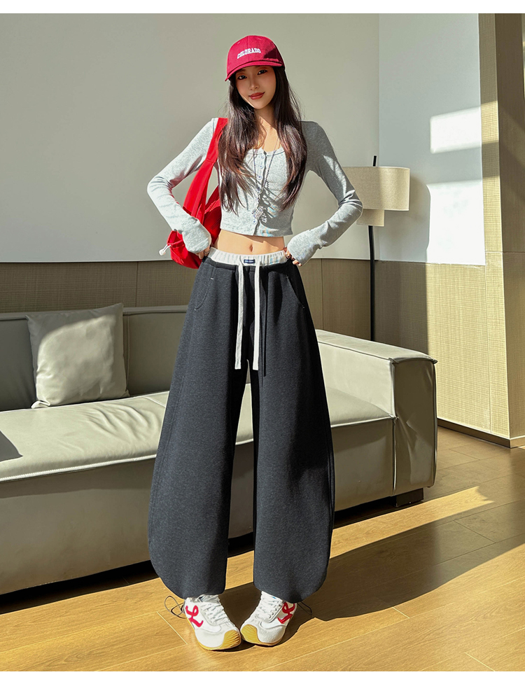 灰色慵懒风运动弯刀裤女2026新款春款宽松显瘦小个子休闲阔腿裤子