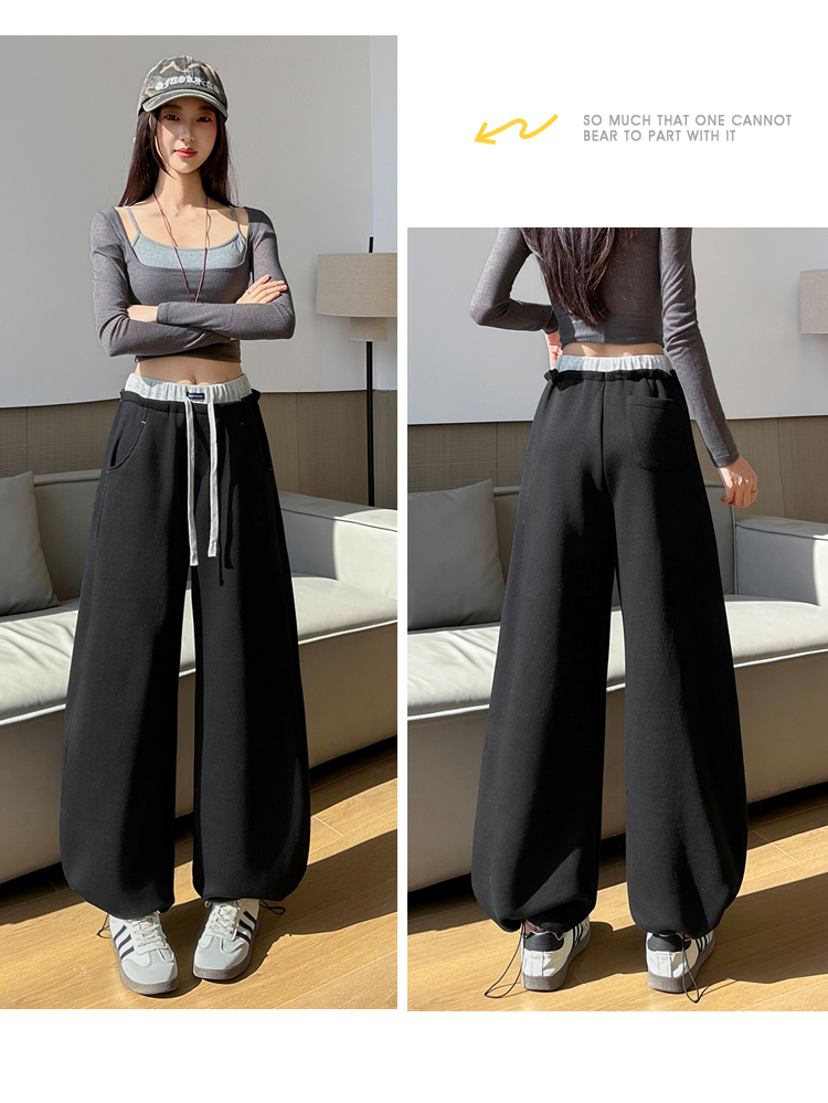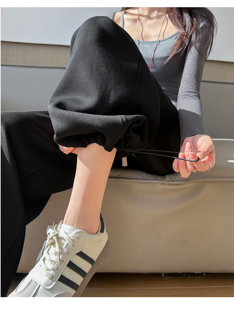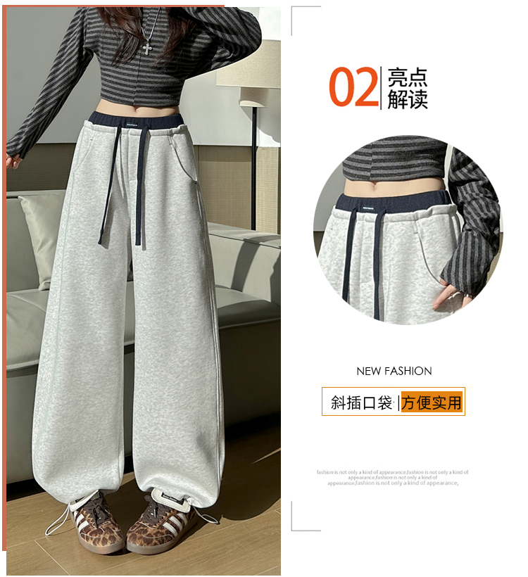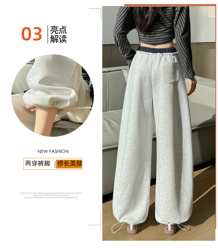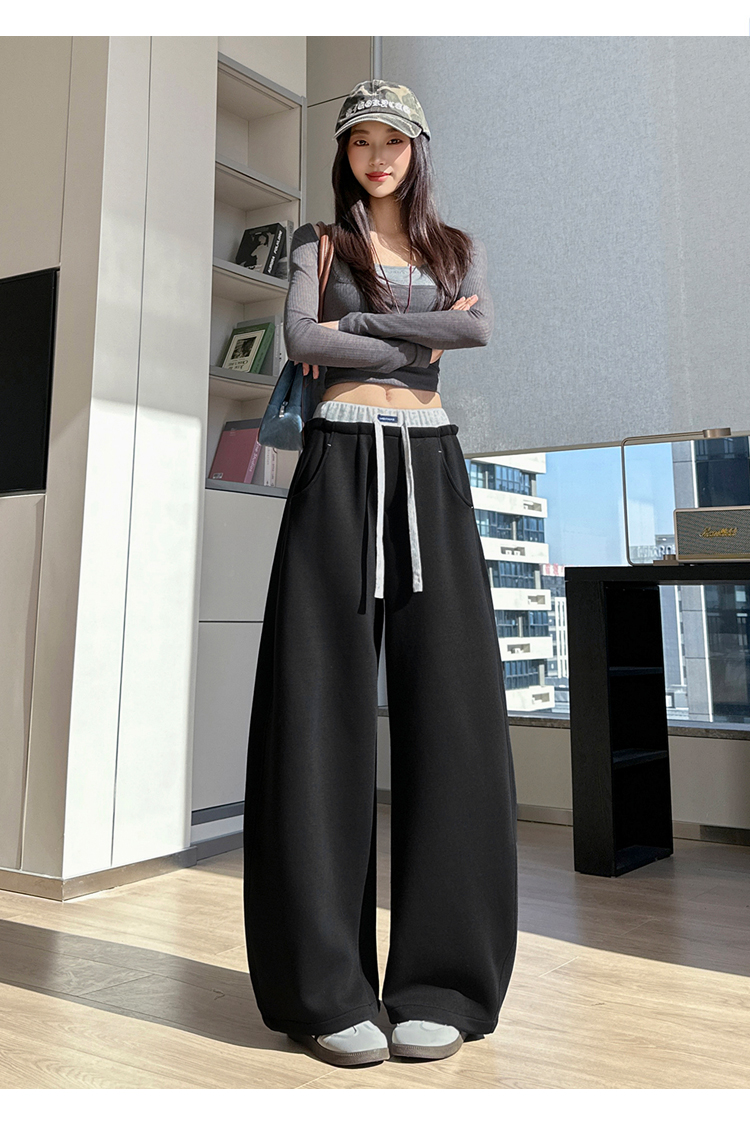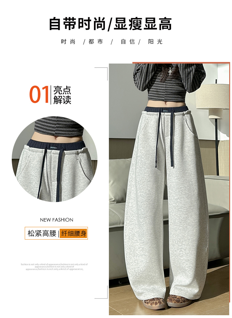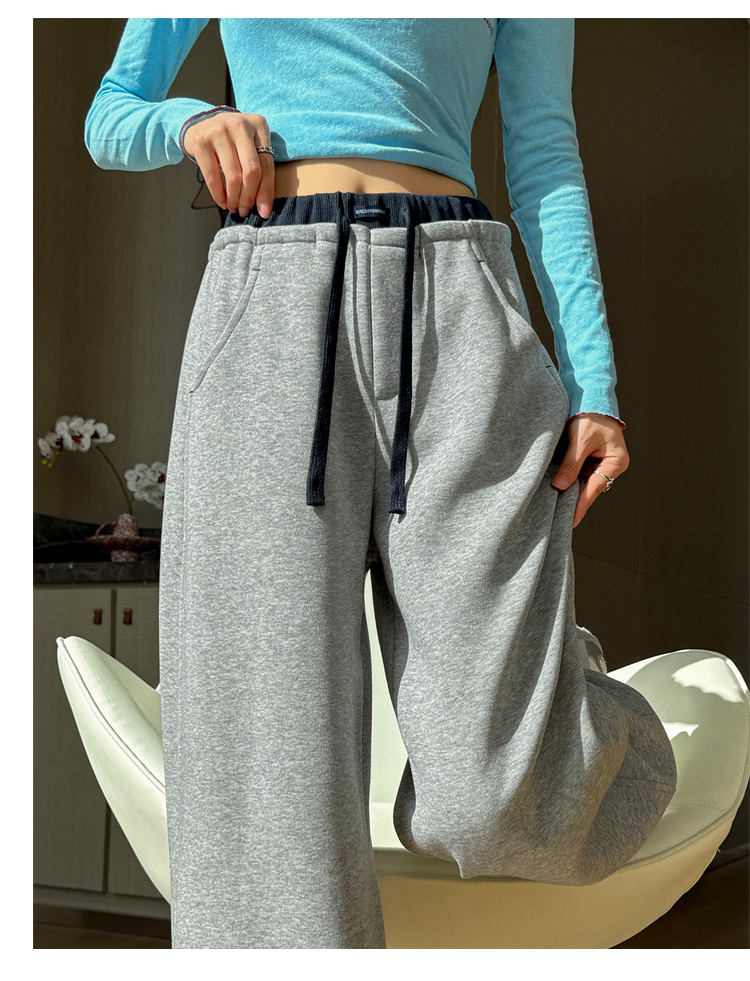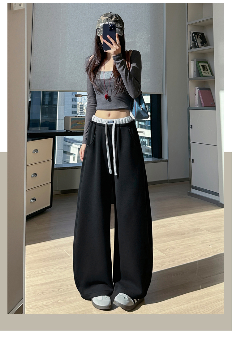 灰色慵懒风运动弯刀裤女2026新款春款宽松显瘦小个子休闲阔腿裤子