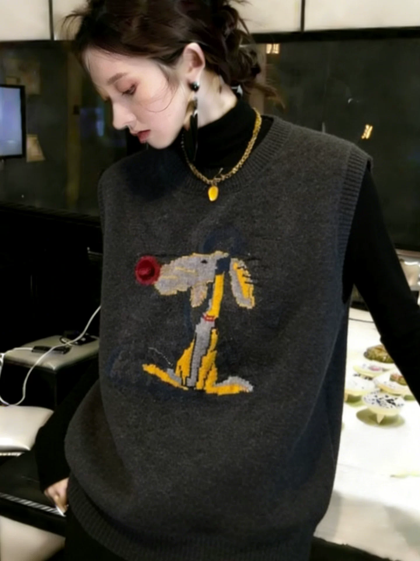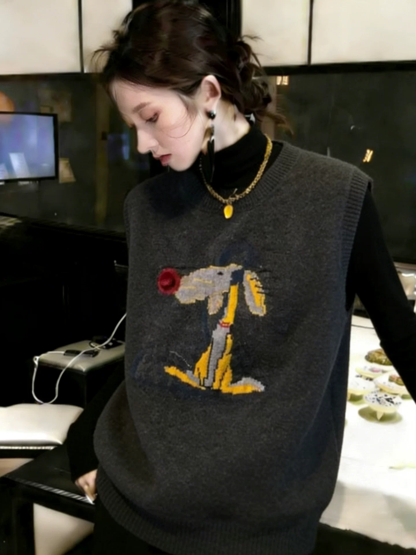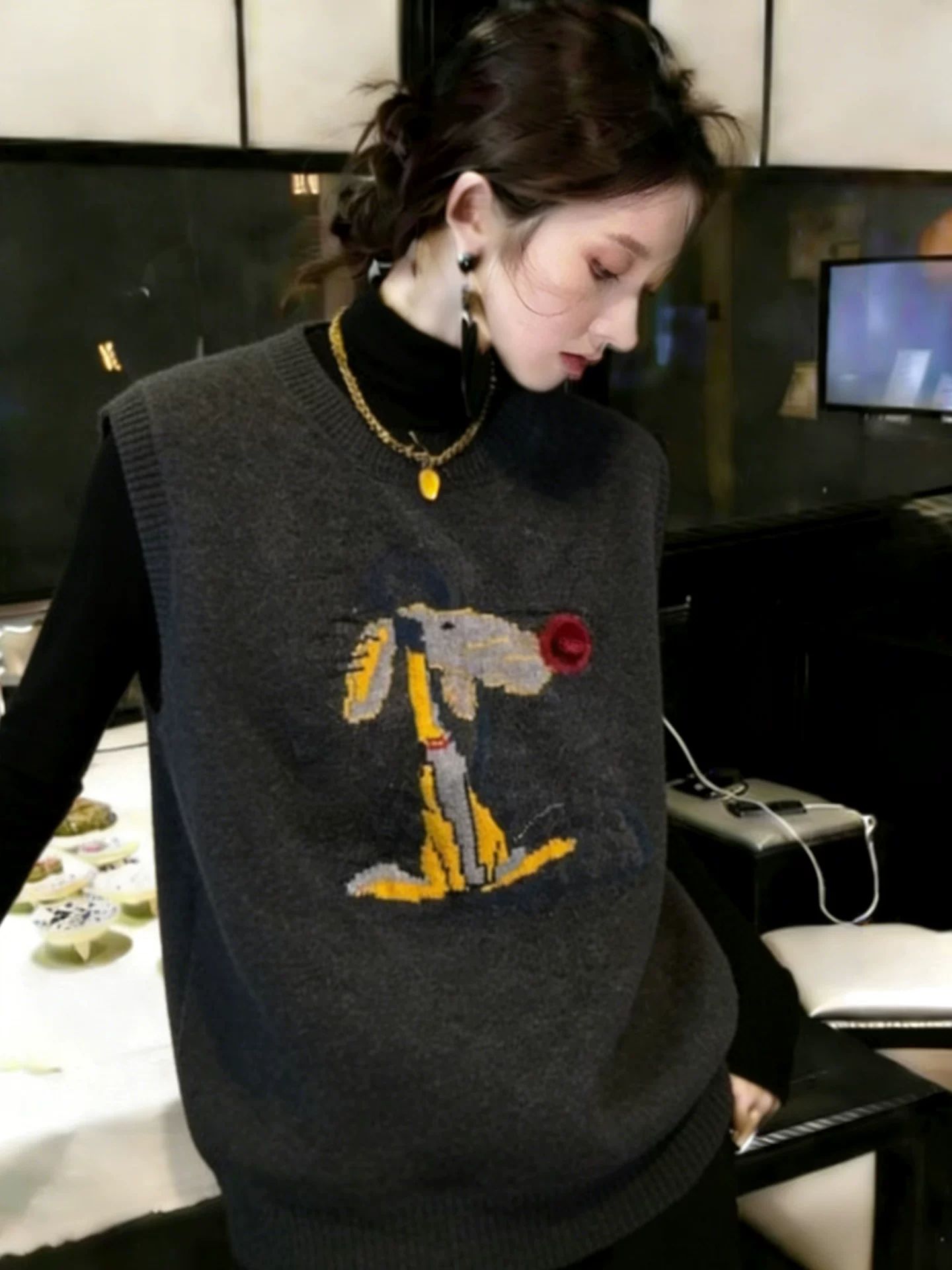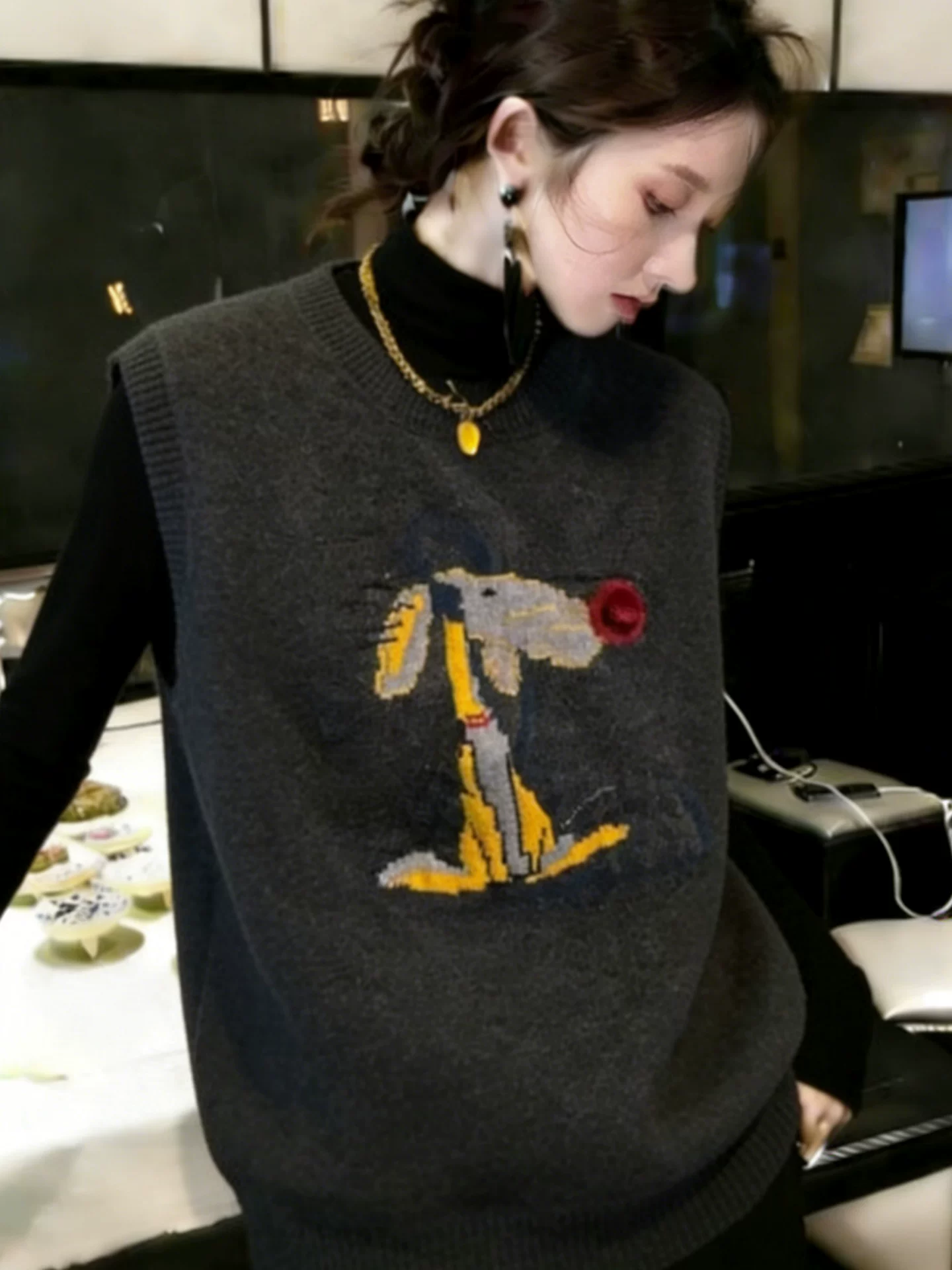 圆领时尚针织马甲2025新款今年流行爆款女款时髦洋气短款毛衣背心