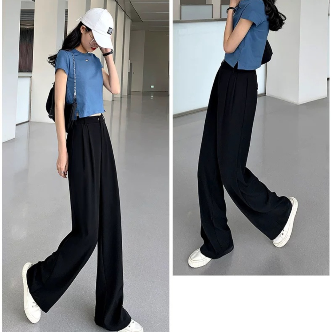高腰西装裤女2026春夏季宽松垂感冰丝裤子女休闲直筒窄版阔腿裤女