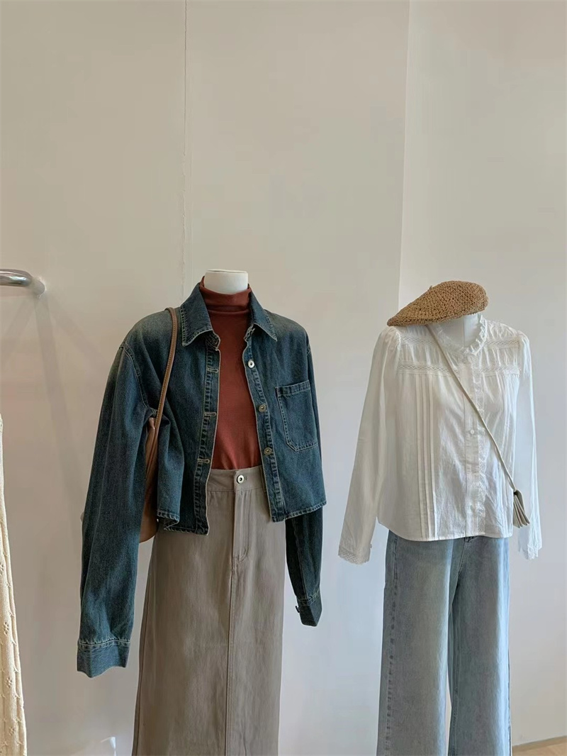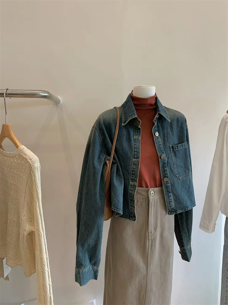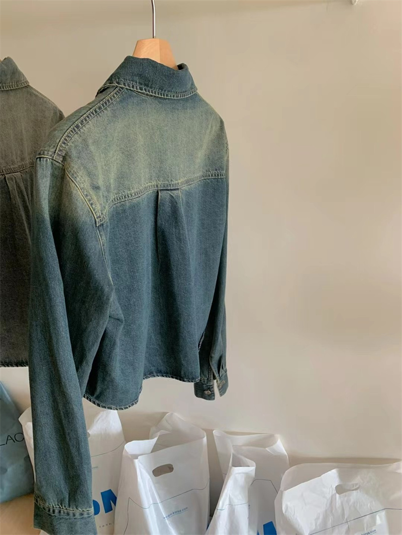 实拍春季新品做旧水洗柔软舒适短款宽松显瘦长袖牛仔衬衫薄外套