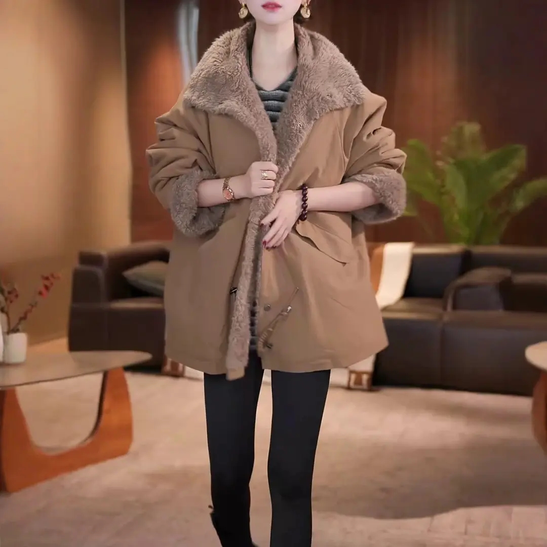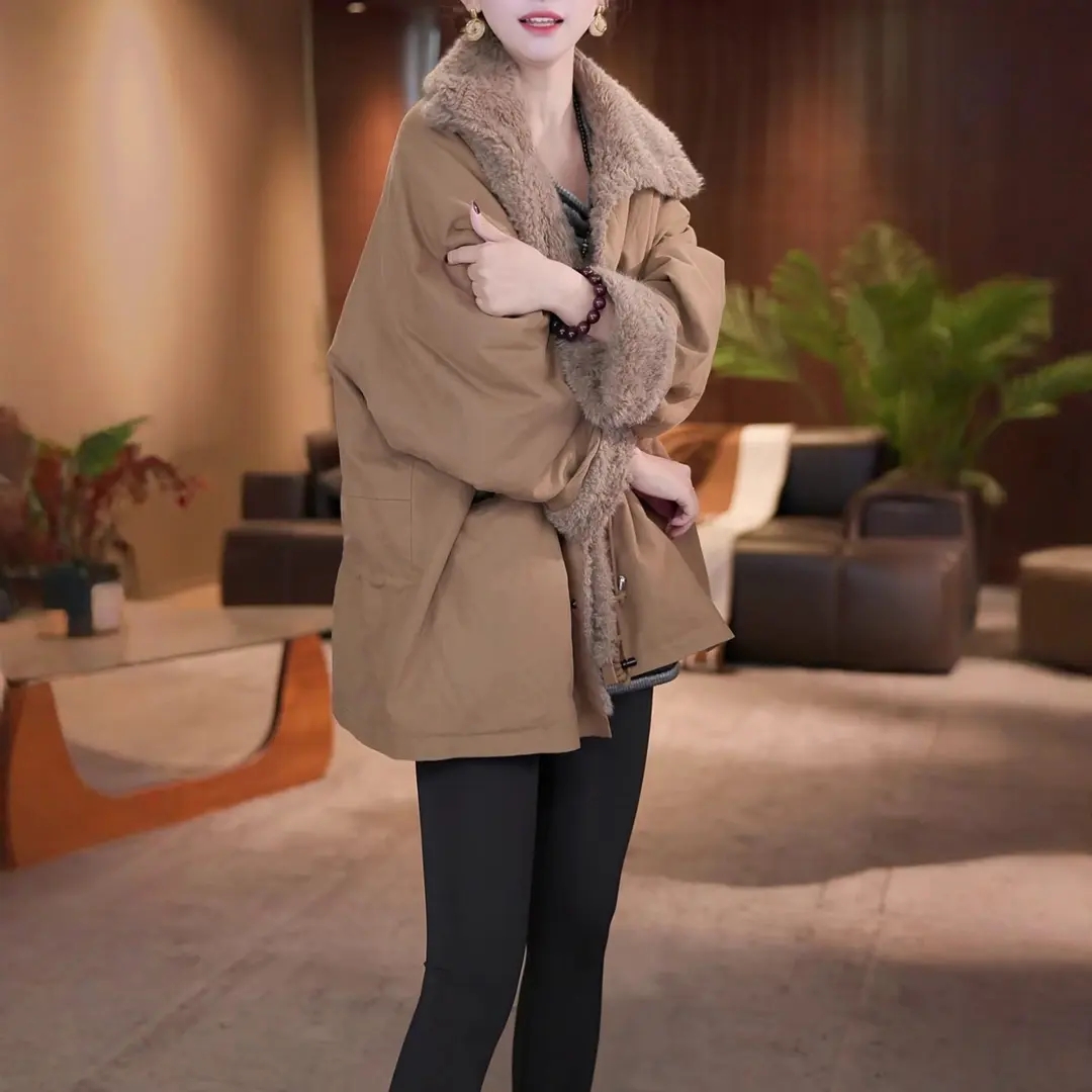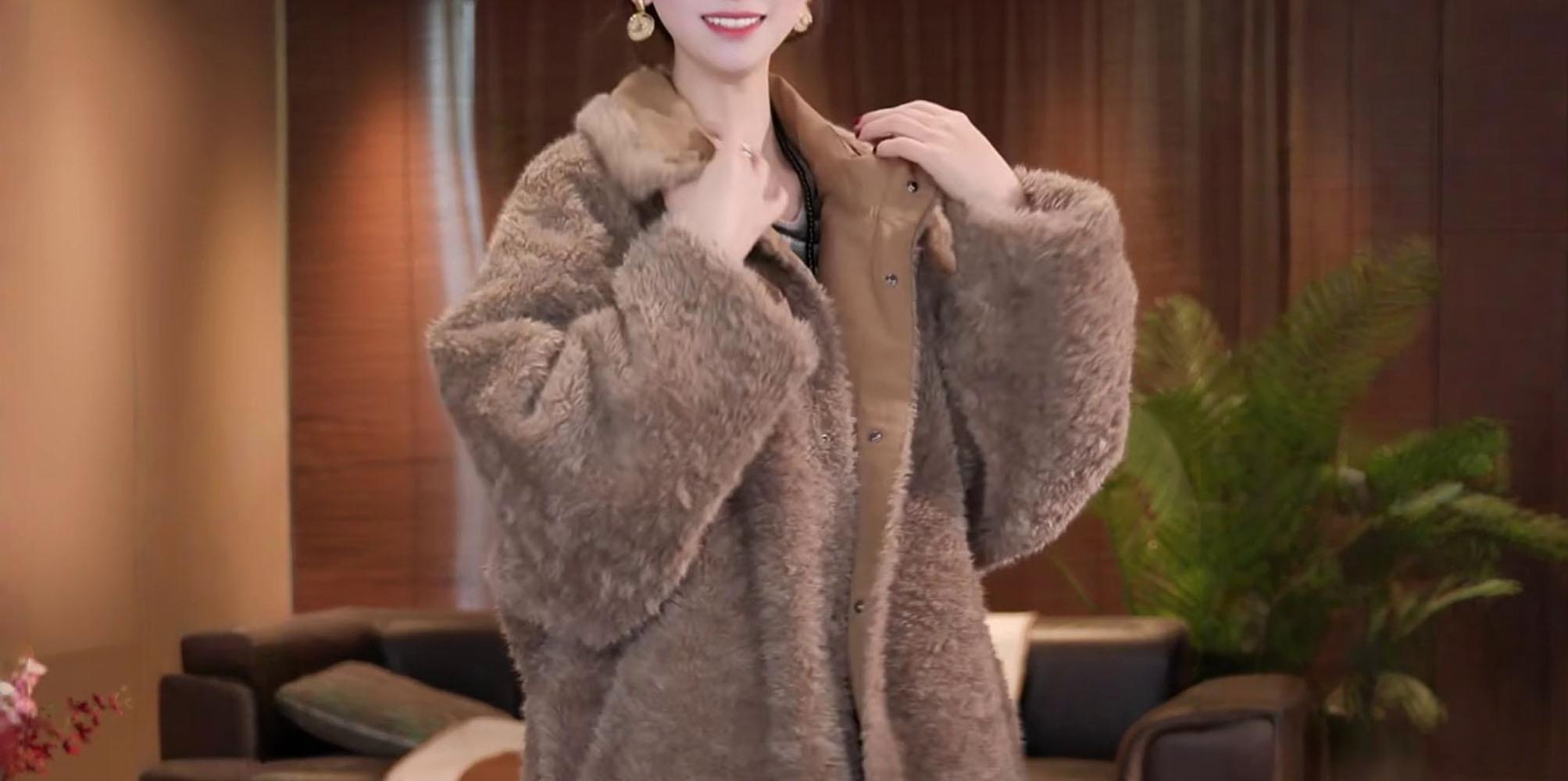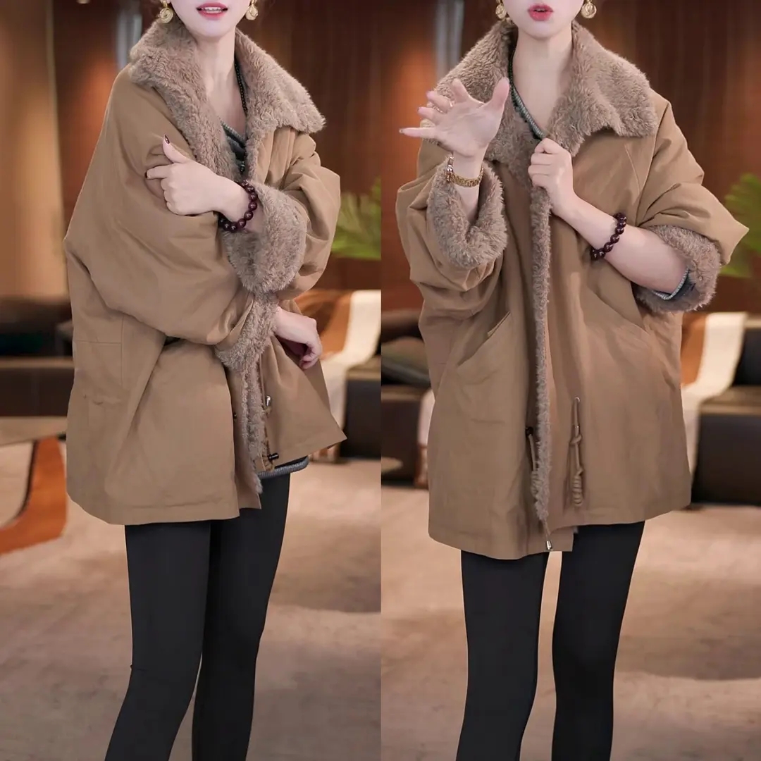 已出货~时尚复古加厚中长款上衣冬季新款气质高档立领双面穿外套