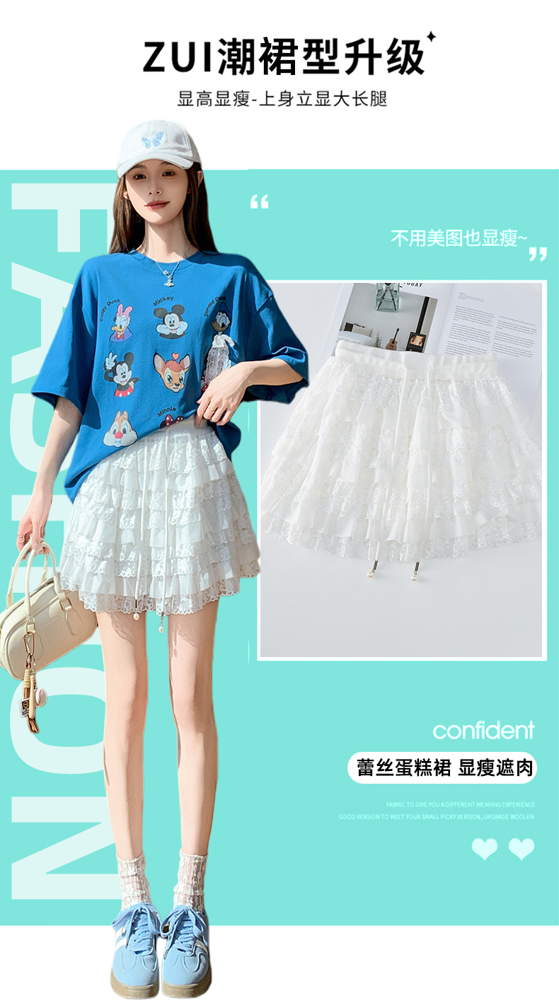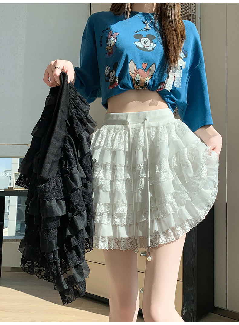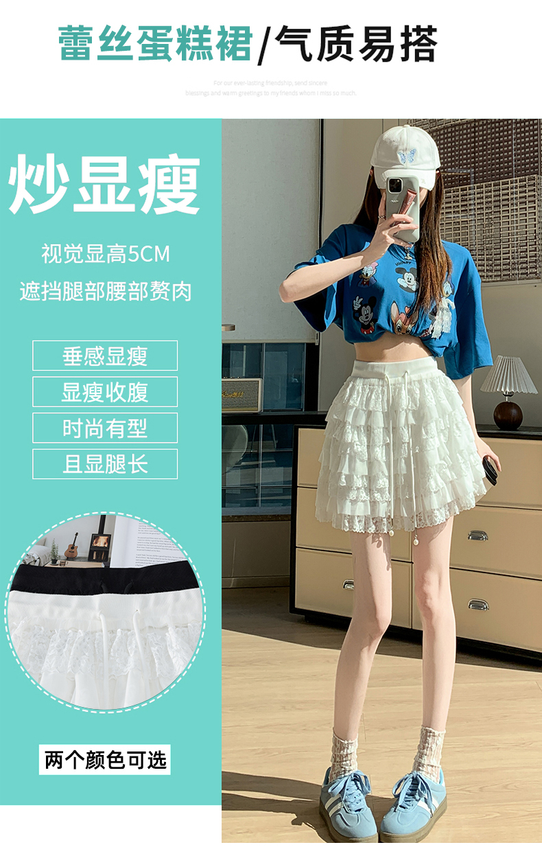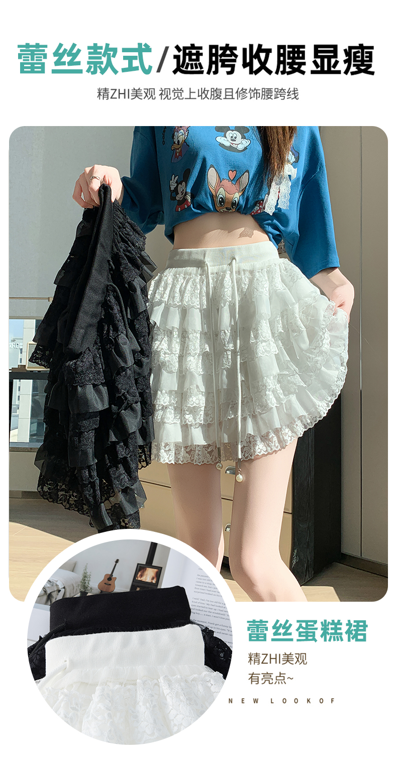 实拍2026春季新款韩版松紧腰抽绳蕾丝花边蛋糕裙百搭半身裙防走光