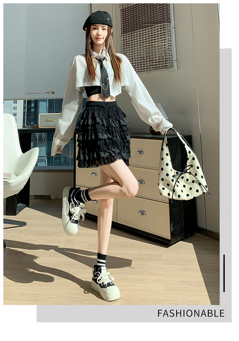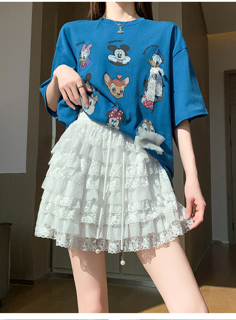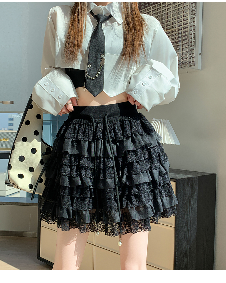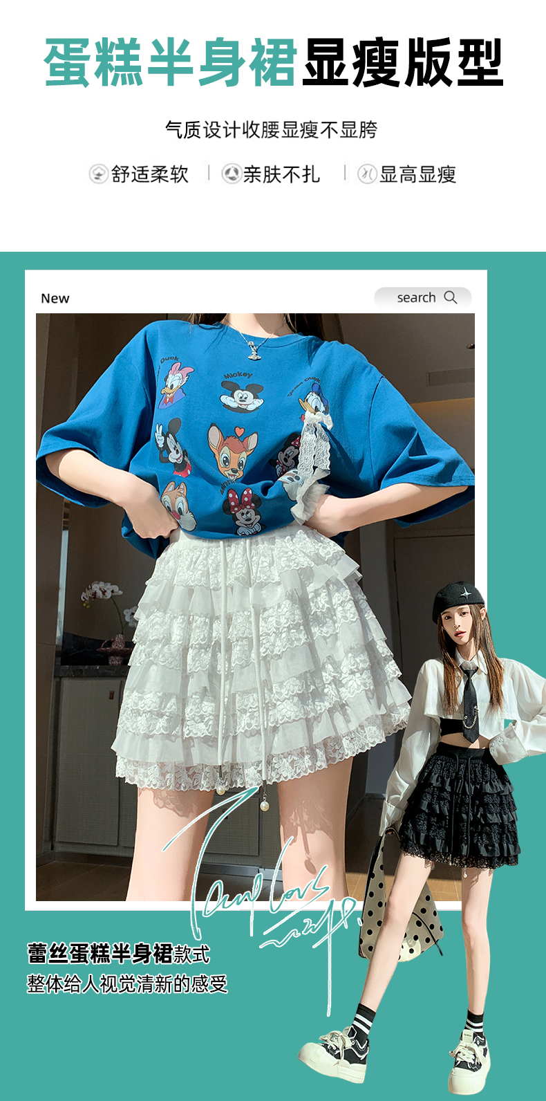 实拍2026春季新款韩版松紧腰抽绳蕾丝花边蛋糕裙百搭半身裙防走光