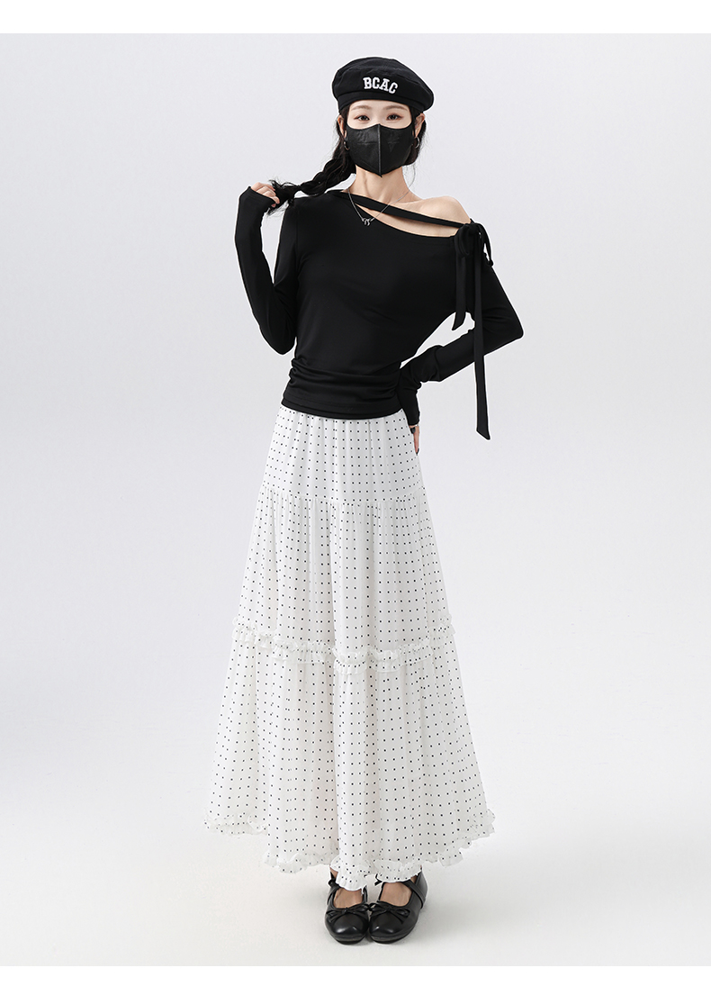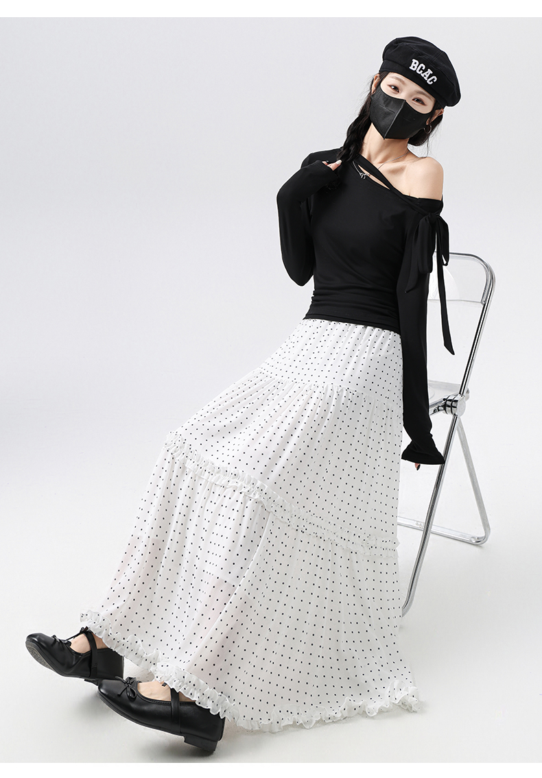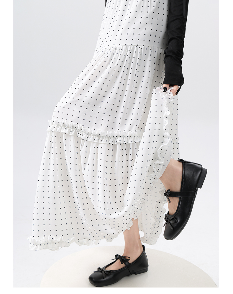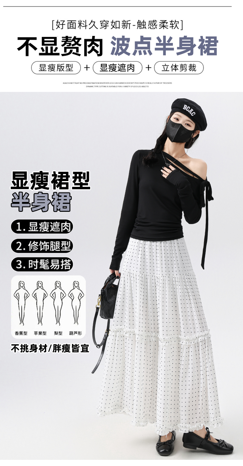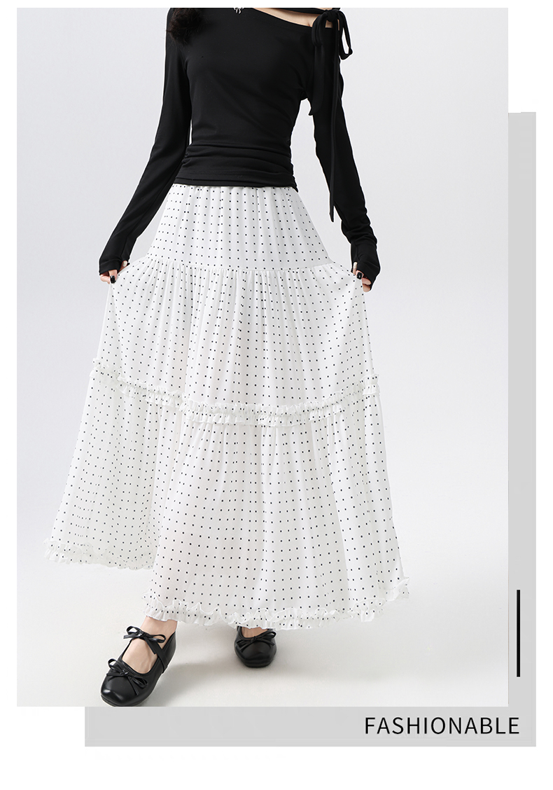 甜美少女粉色波点木耳花边半身裙女春款高腰A字蛋糕裙中长款伞裙