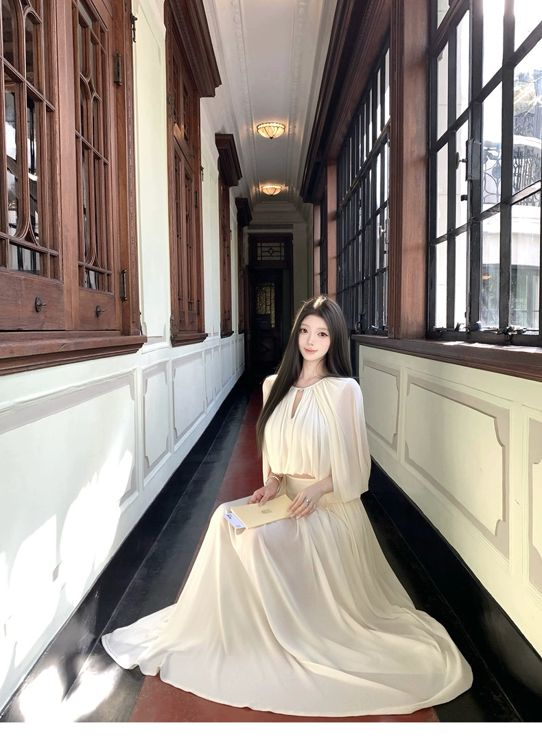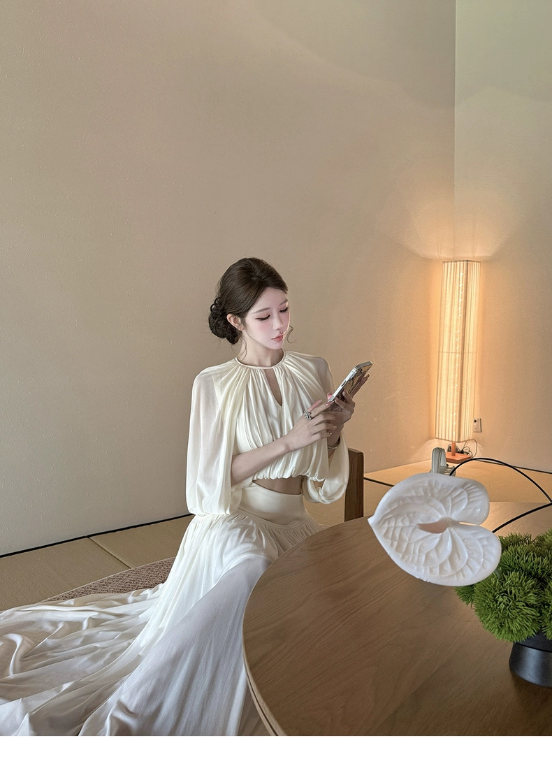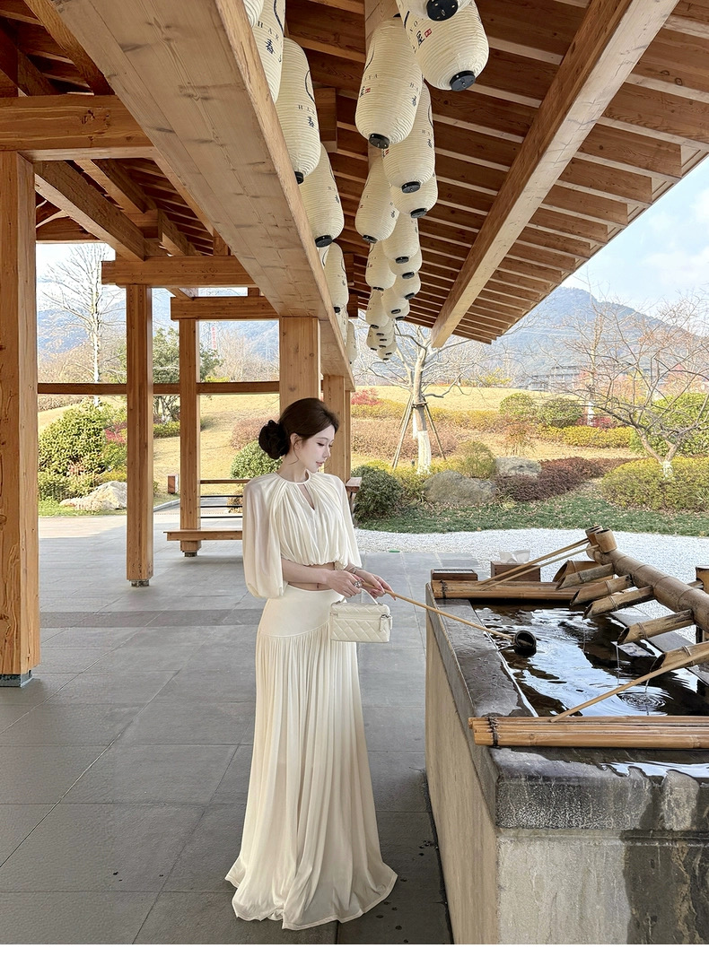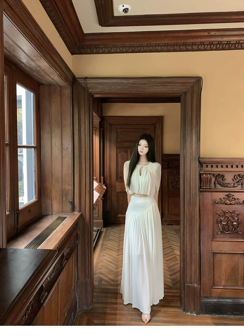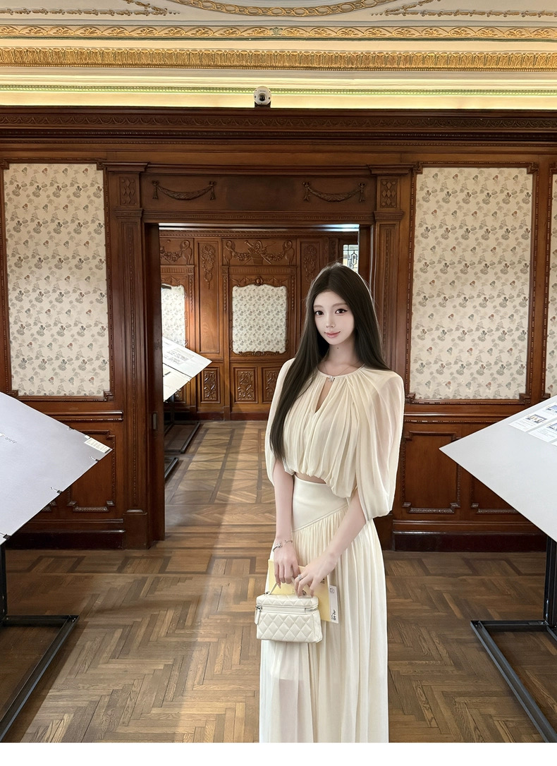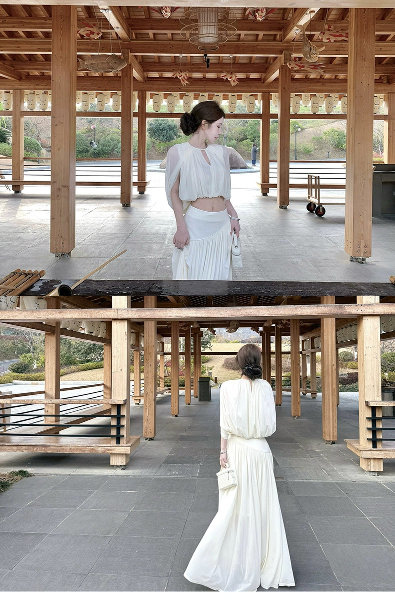 kubiliv心动缪斯设计感压褶斗篷无袖上衣高腰百褶伞裙两件套