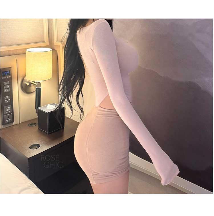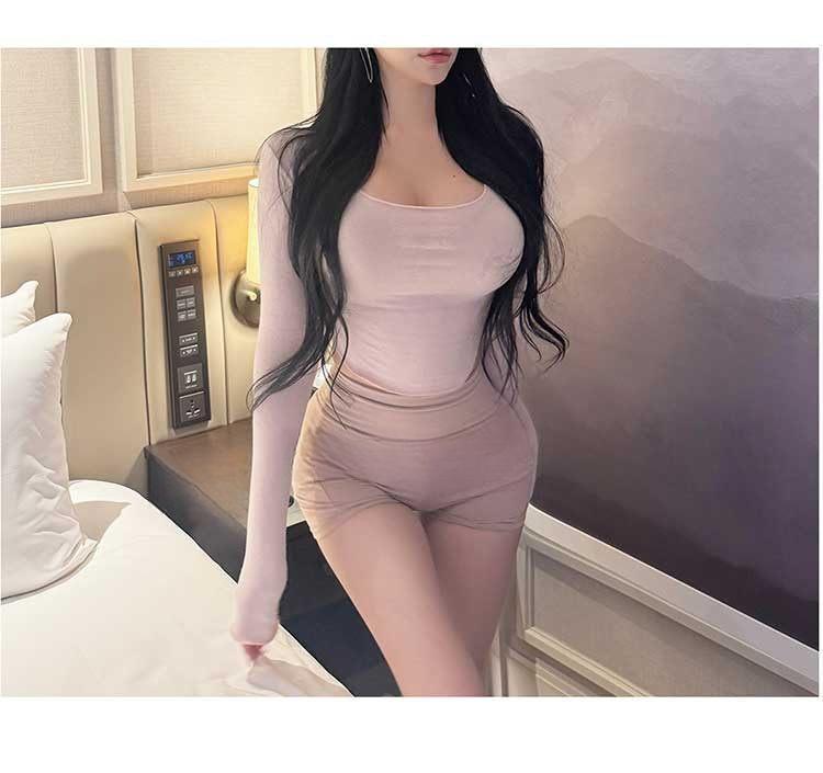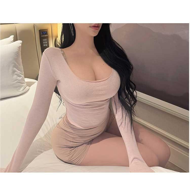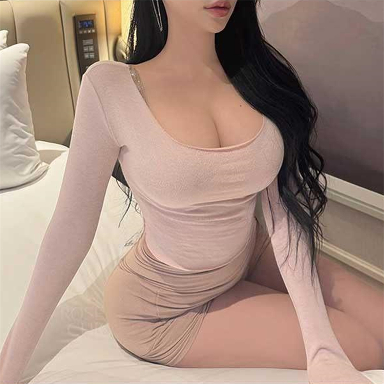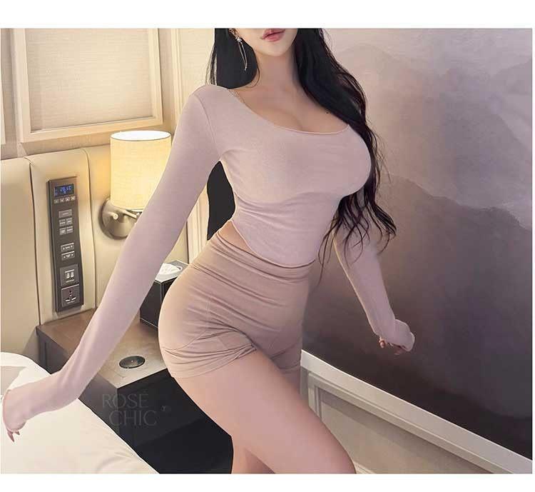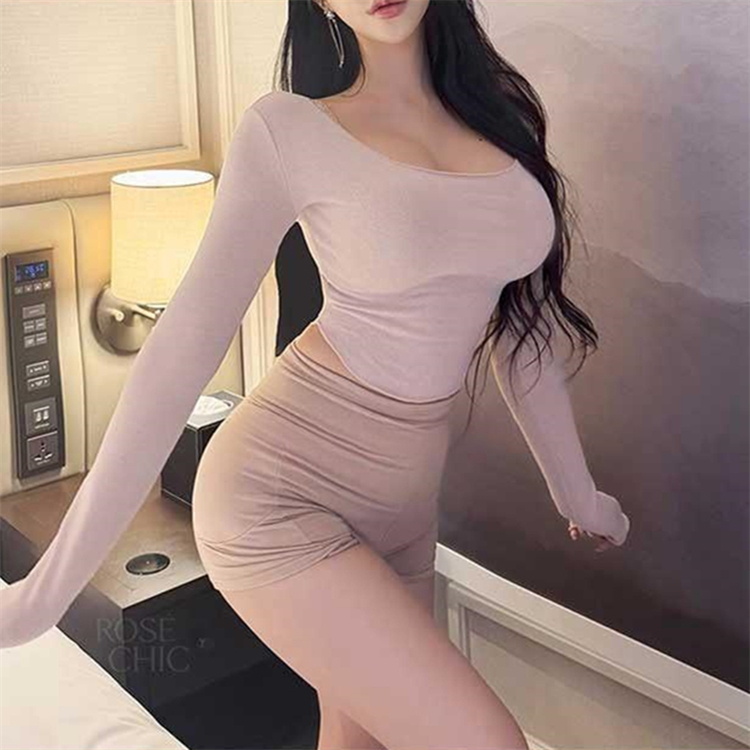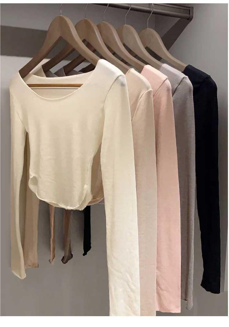 韩国东大门春夏新款气质莫代尔修身显身材大U领短款露腰长袖T恤女