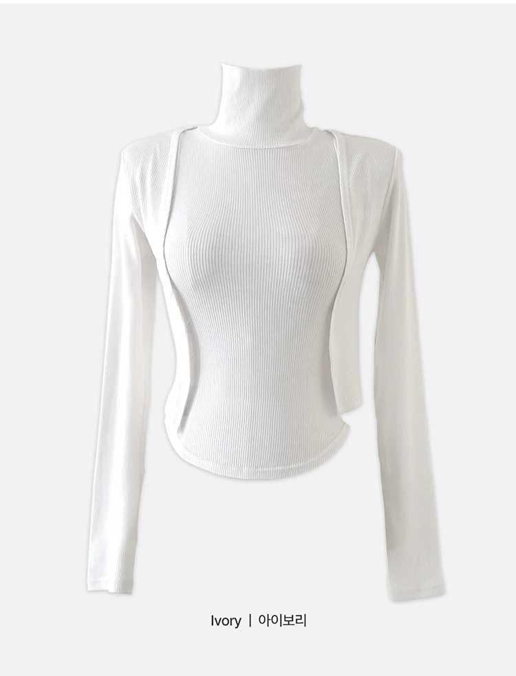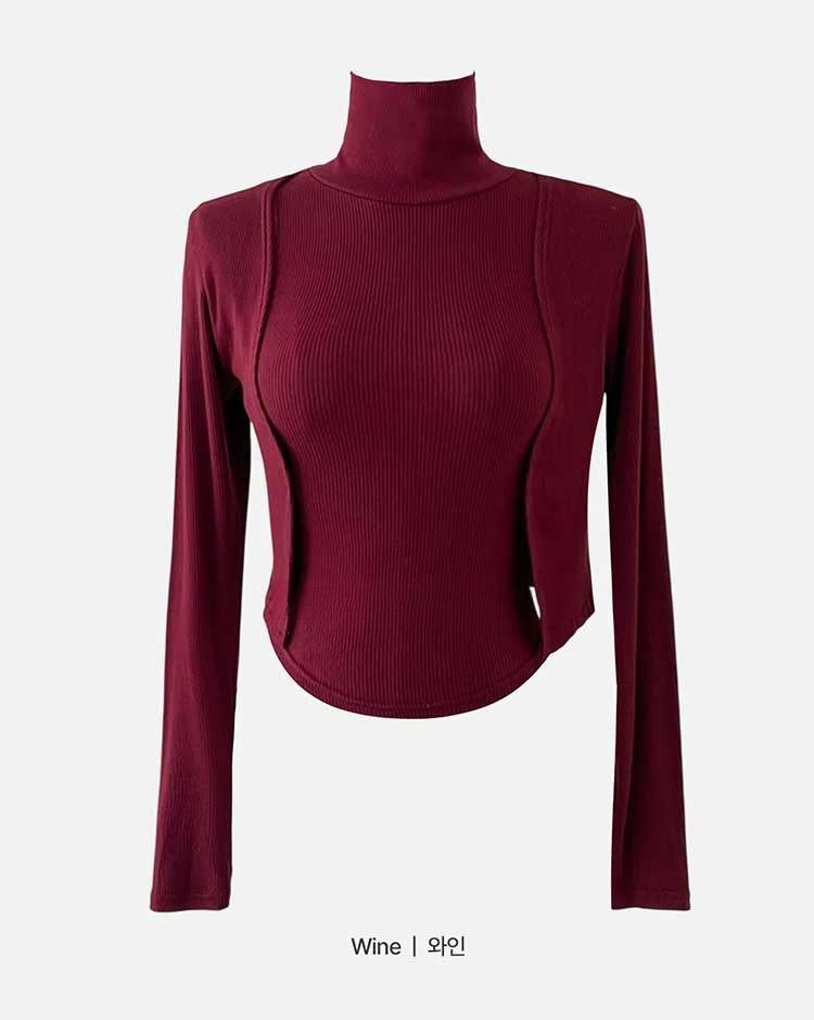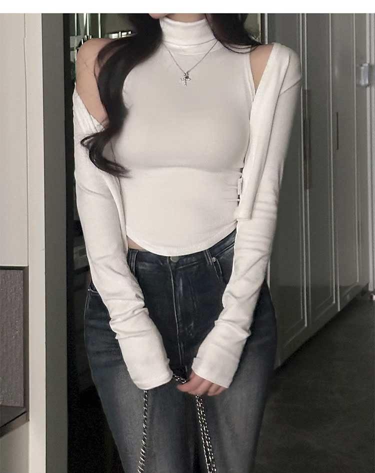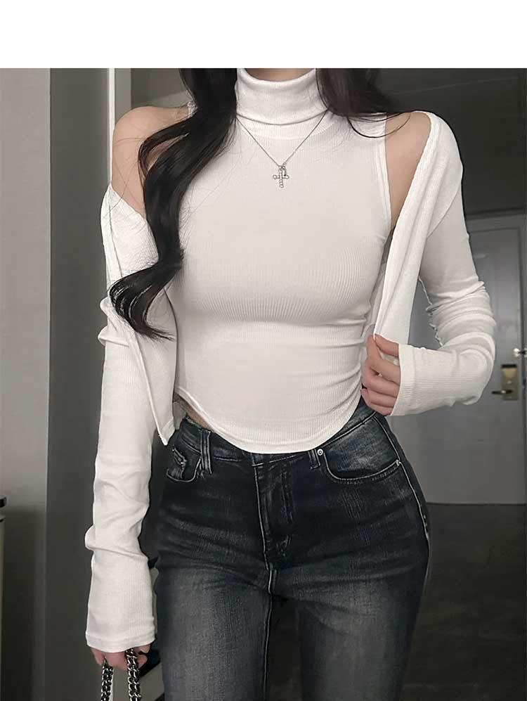 韩国东大门春夏新款气质修身显身材高领无袖T恤长袖开衫两件套女