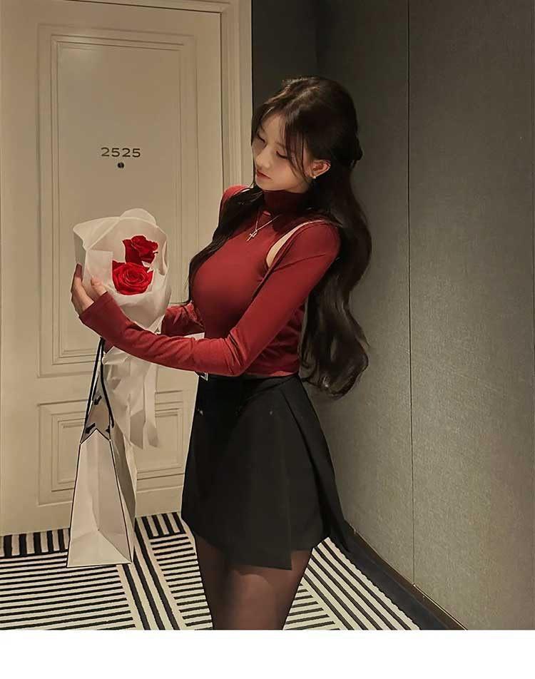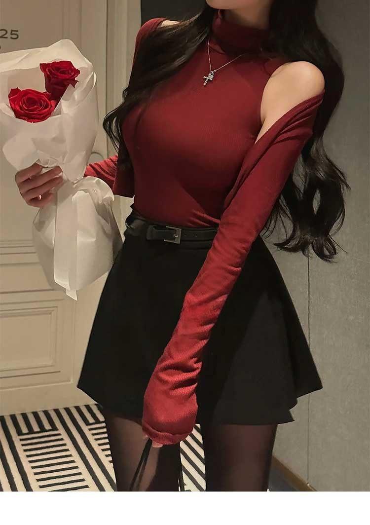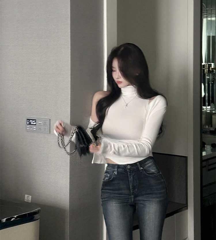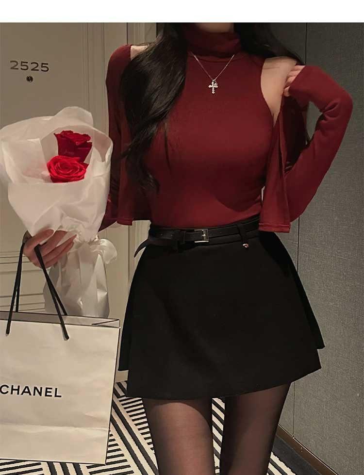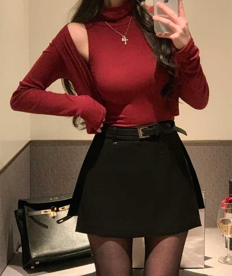 韩国东大门春夏新款气质修身显身材高领无袖T恤长袖开衫两件套女