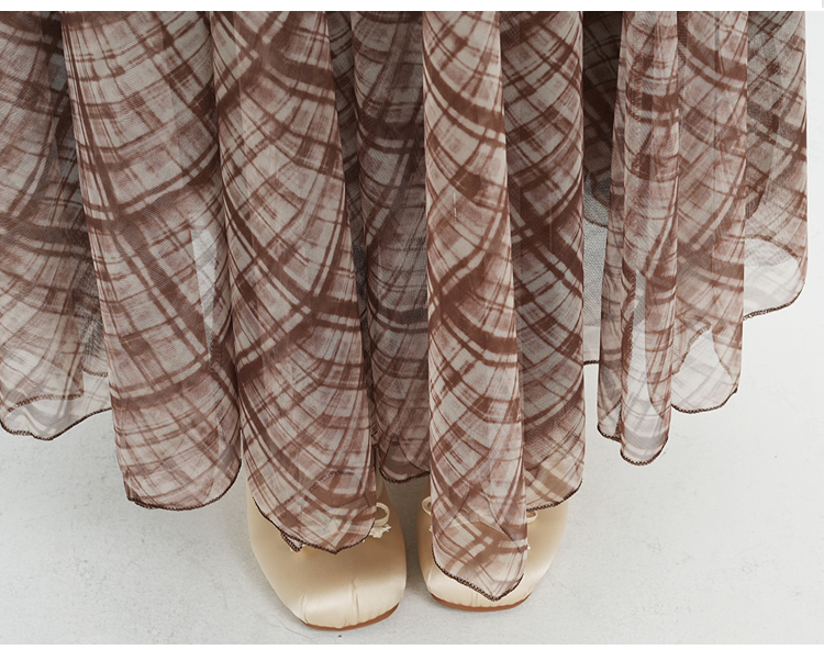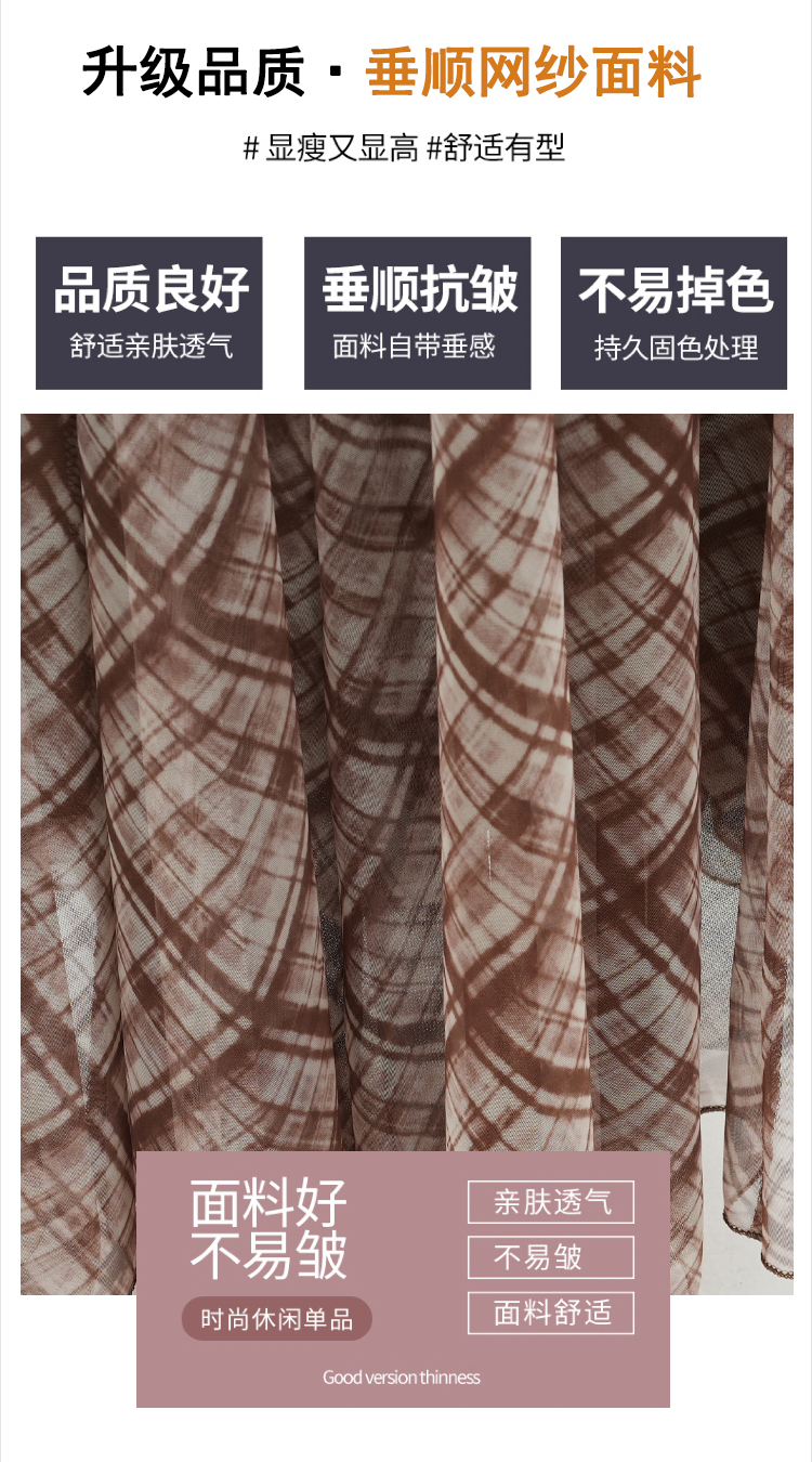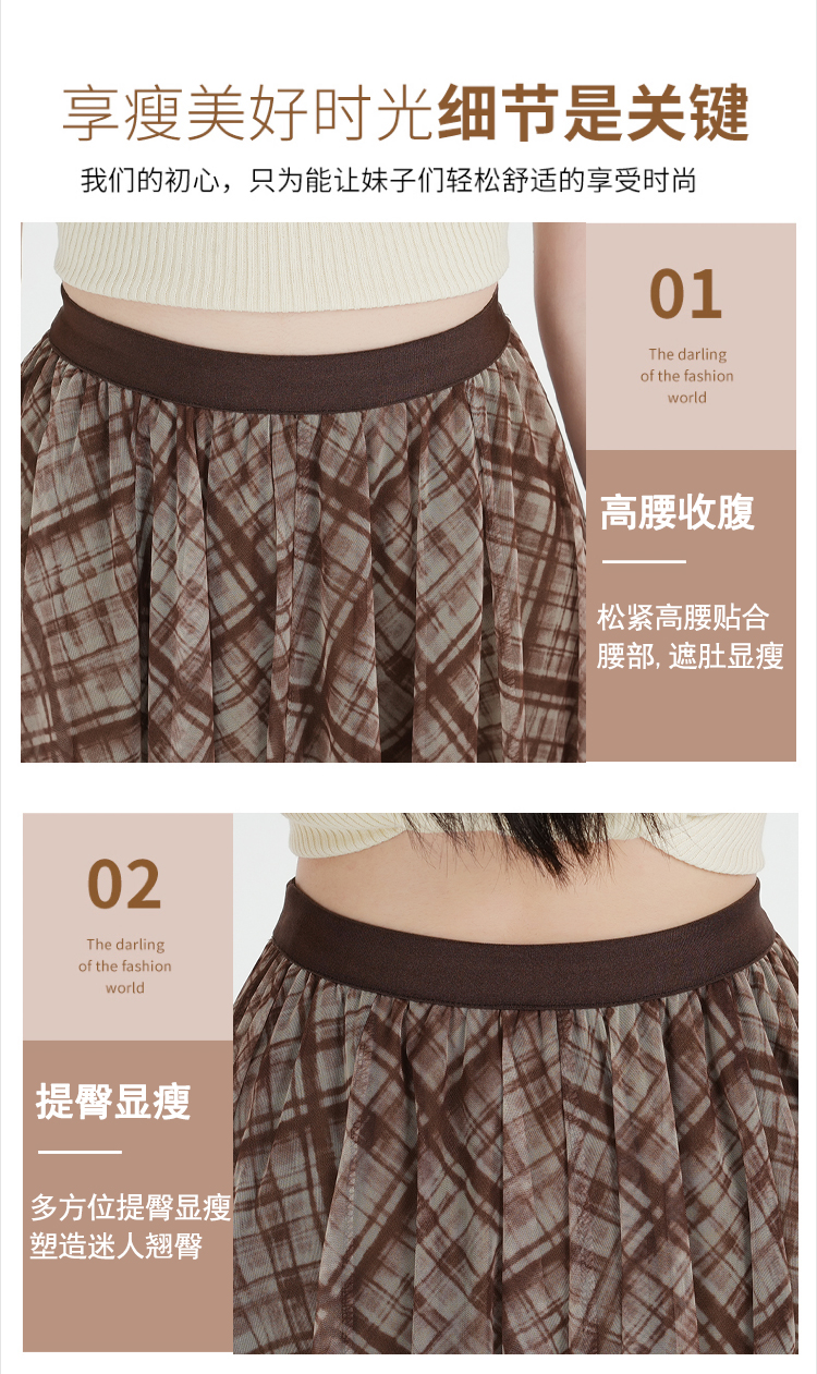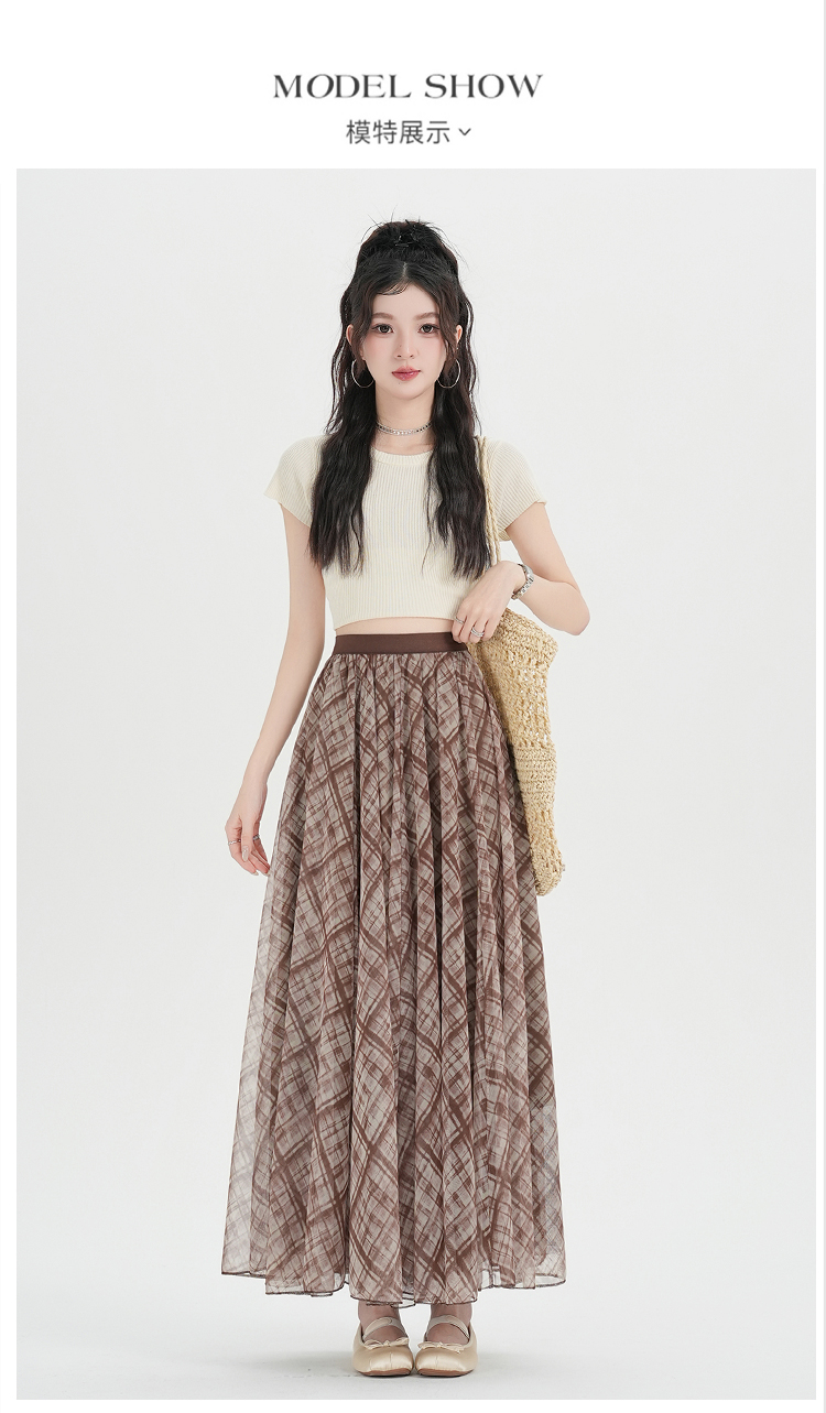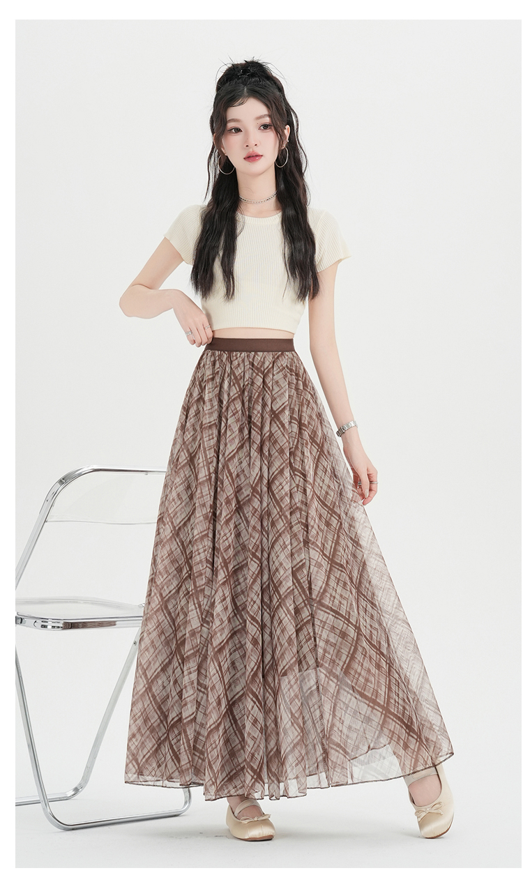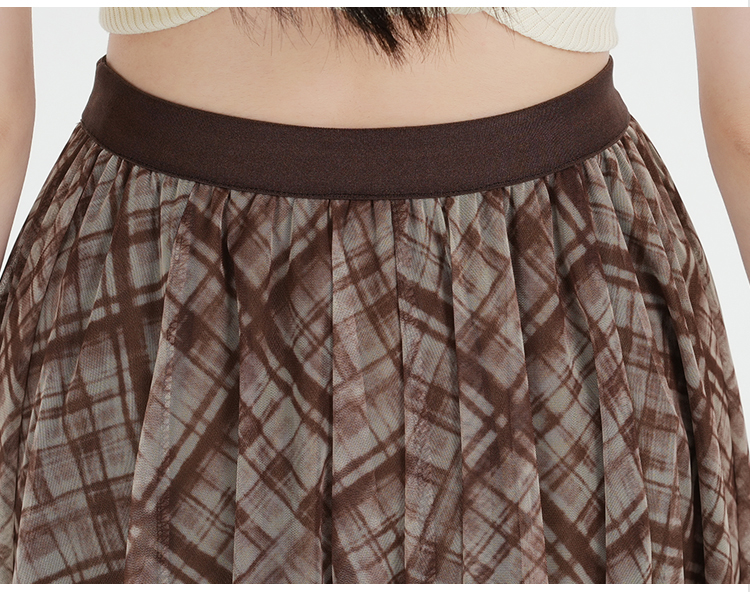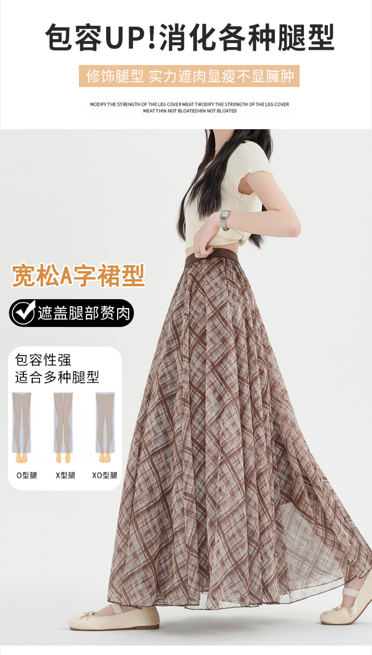 实拍 春款网纱格子半身裙女新款高腰气质显瘦a字垂感大摆伞裙长裙